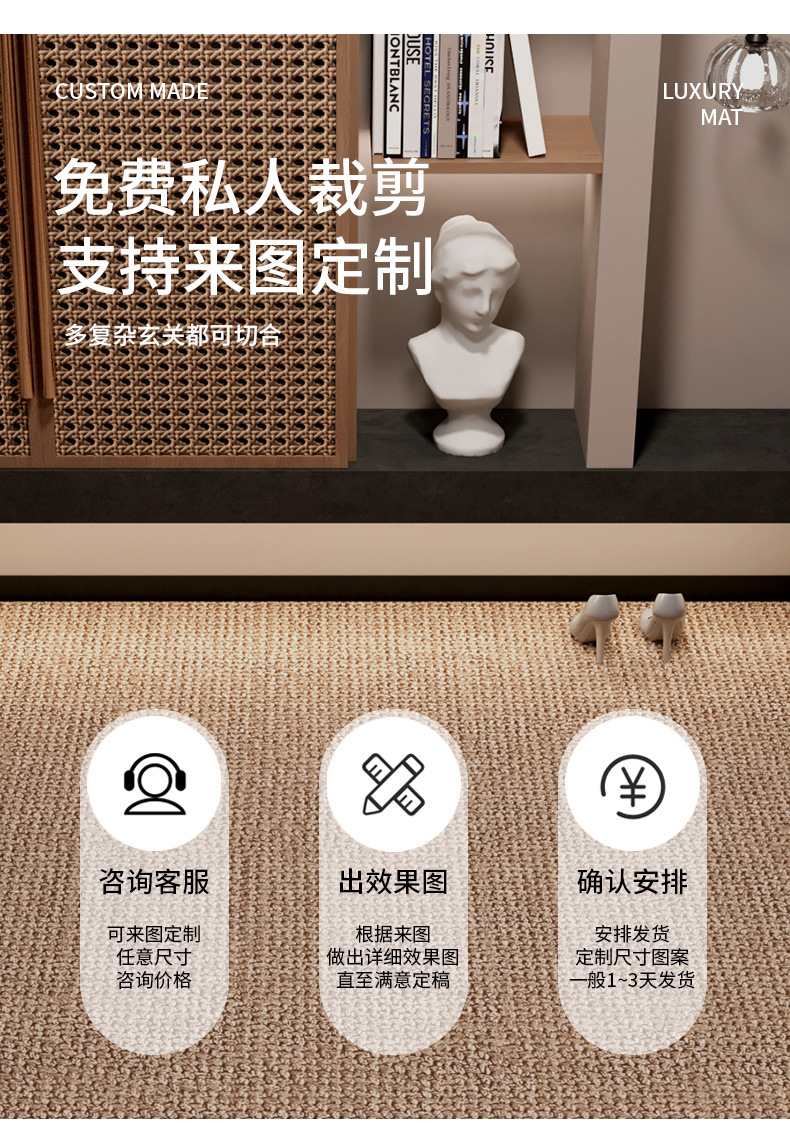 단색 모조 사자수 도어 매트, 현관 카펫, 거실 출입구 미끄럼 방지 발 매트, 고급 절단 가능한 현관 도어 매트