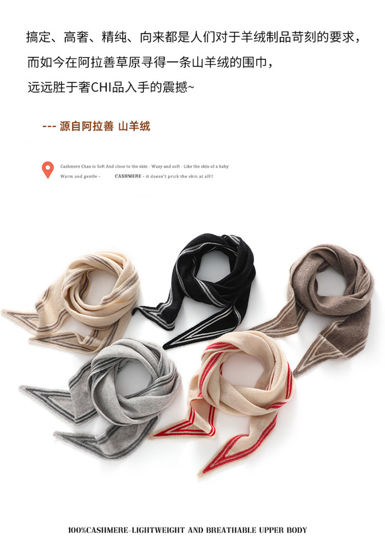 山羊绒衫2024秋冬新款女士时尚三角巾加厚加大针织围巾保暖围脖