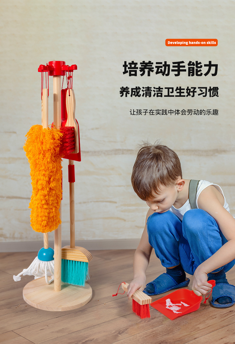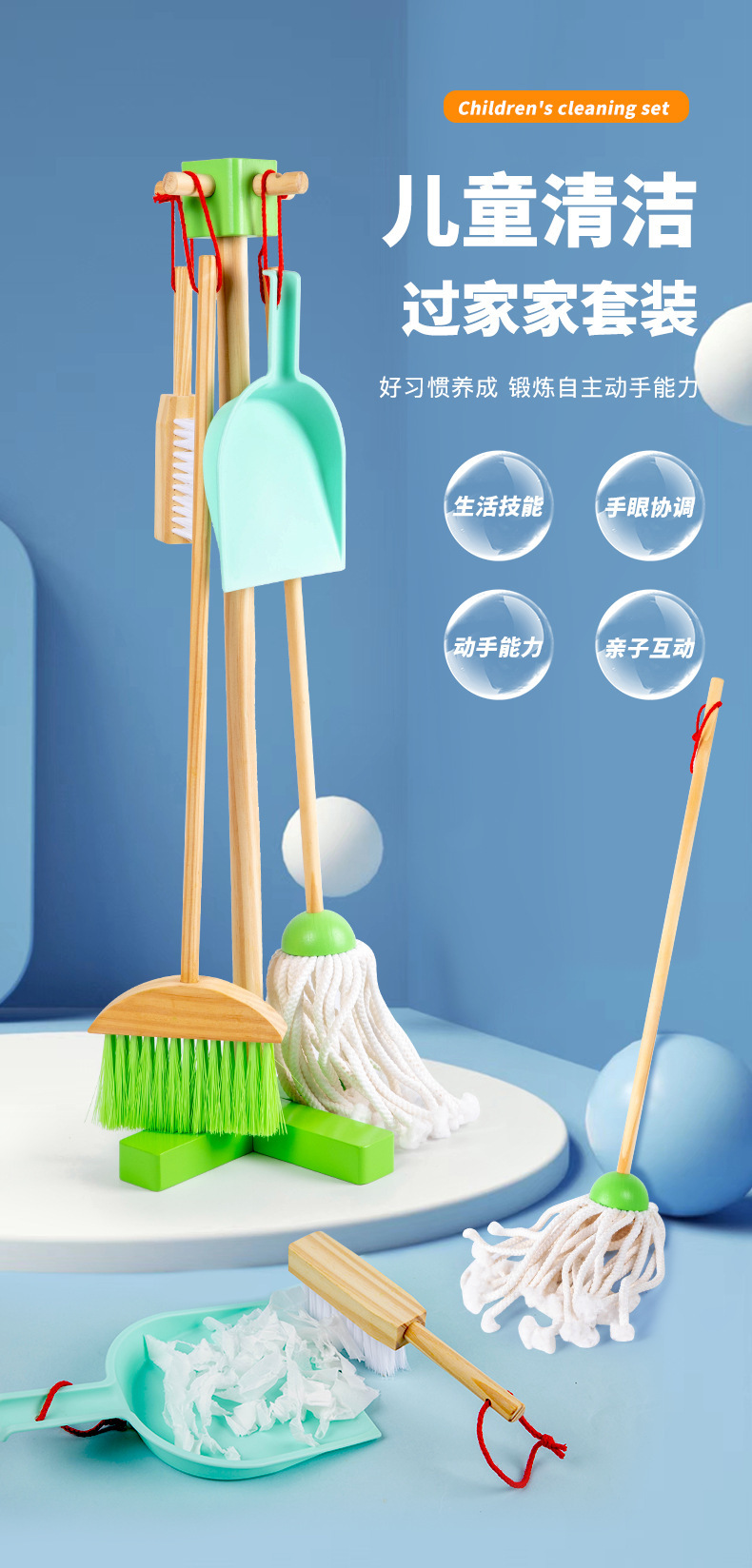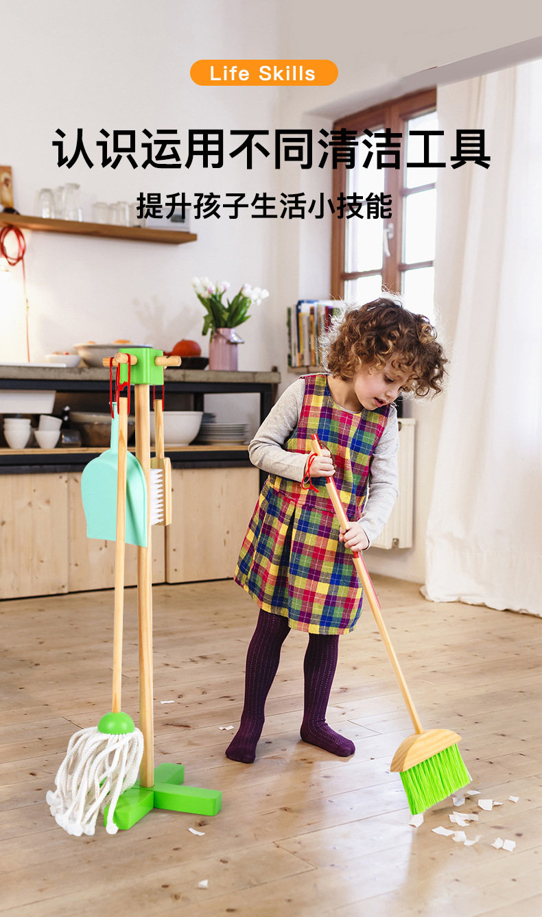 어린이 창조적 인 놀이 집 시뮬레이션 청소 세트 작은 빗자루 코너 청소 가정용 나무 조합 세트 장난감스토어 가기