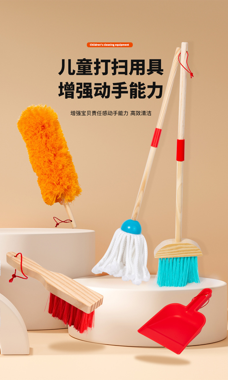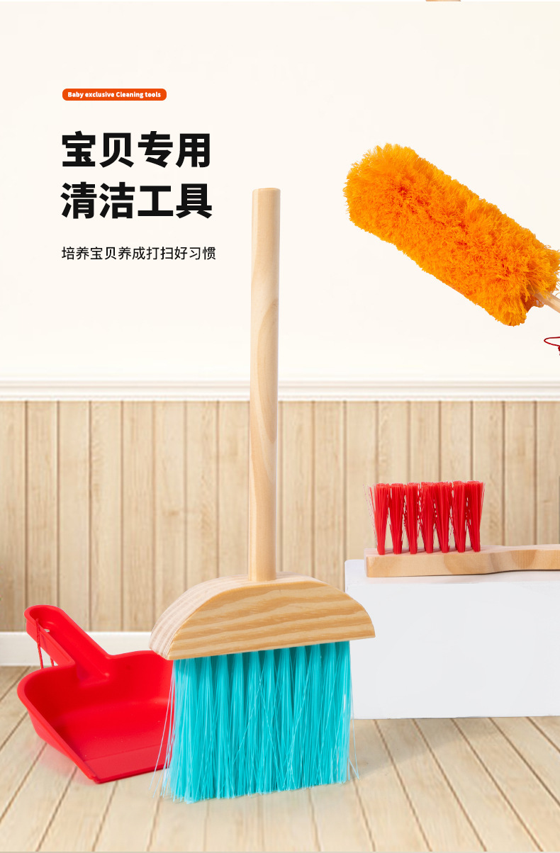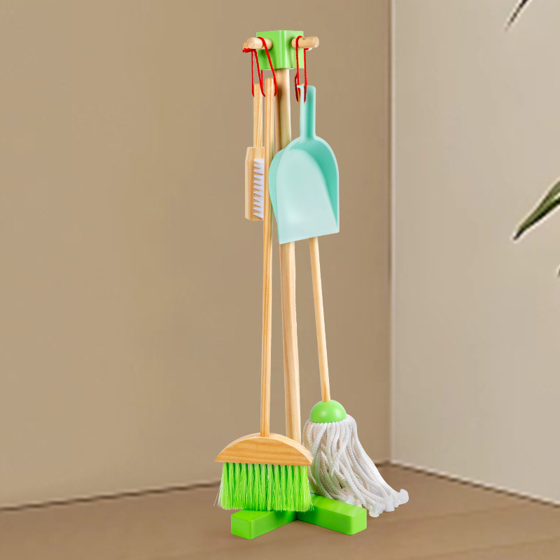 어린이 창조적 인 놀이 집 시뮬레이션 청소 세트 작은 빗자루 코너 청소 가정용 나무 조합 세트 장난감
