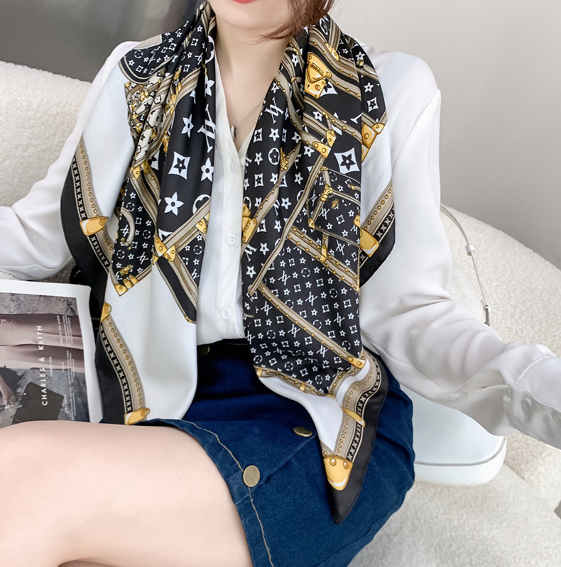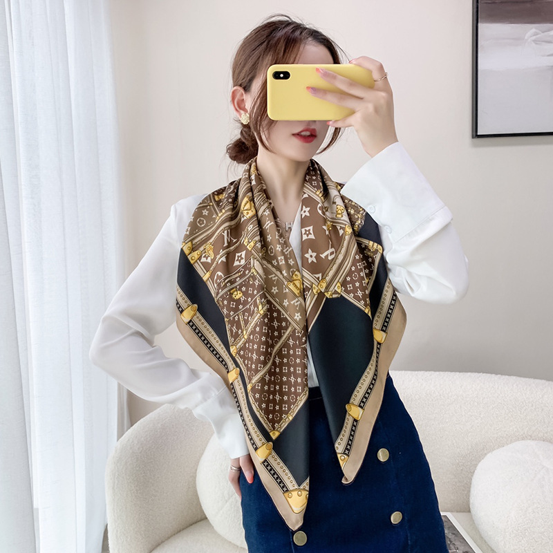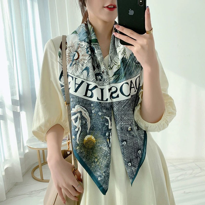 하이 엔드 90cm 인쇄 대형 스퀘어 스카프 여성용 목도리 뉴 트윌 스퀘어 스카프 우아한 올 매치 어머니의 스카프 선물스토어 가기