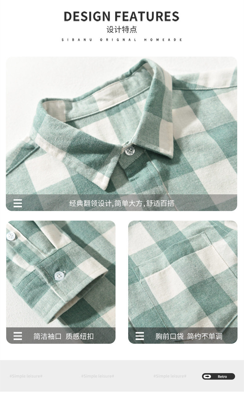 가을 긴팔 느슨한 격자 무늬 옷깃 캐주얼 남자 셔츠 올 매치 간단한 카디건 코튼 재킷 남자 24702