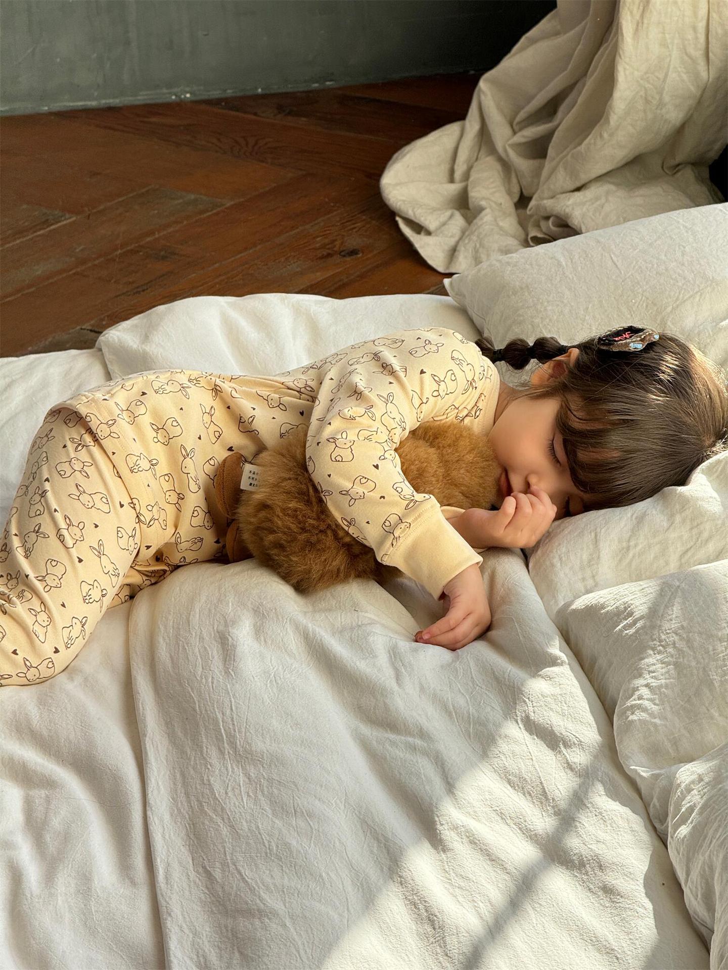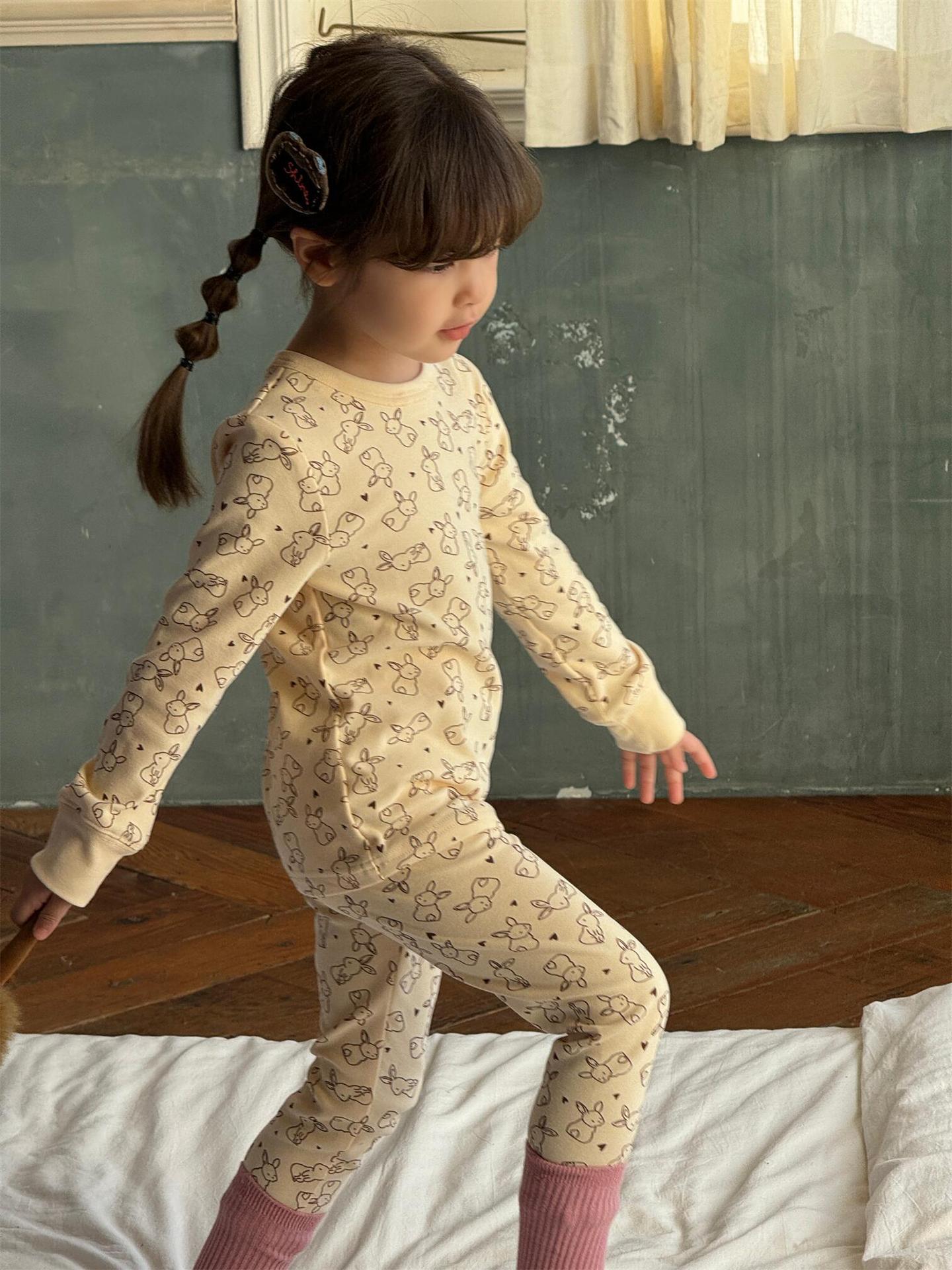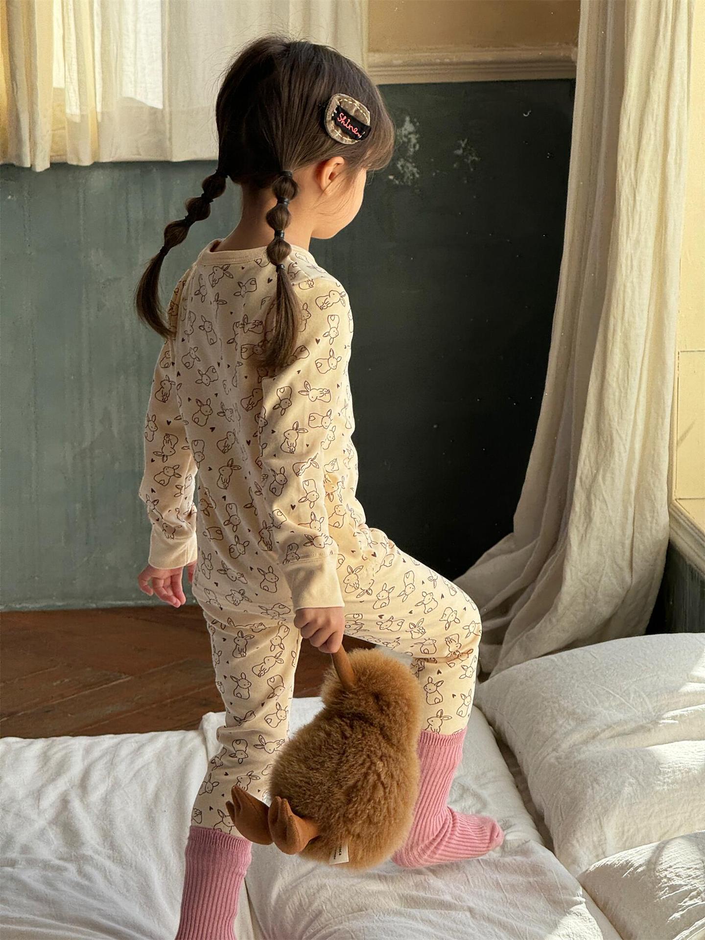 탑 에그 한국 아동복 2024 겨울 새 여아 세트 만화 귀여운 니트 홈웨어 투피스 세트스토어 가기