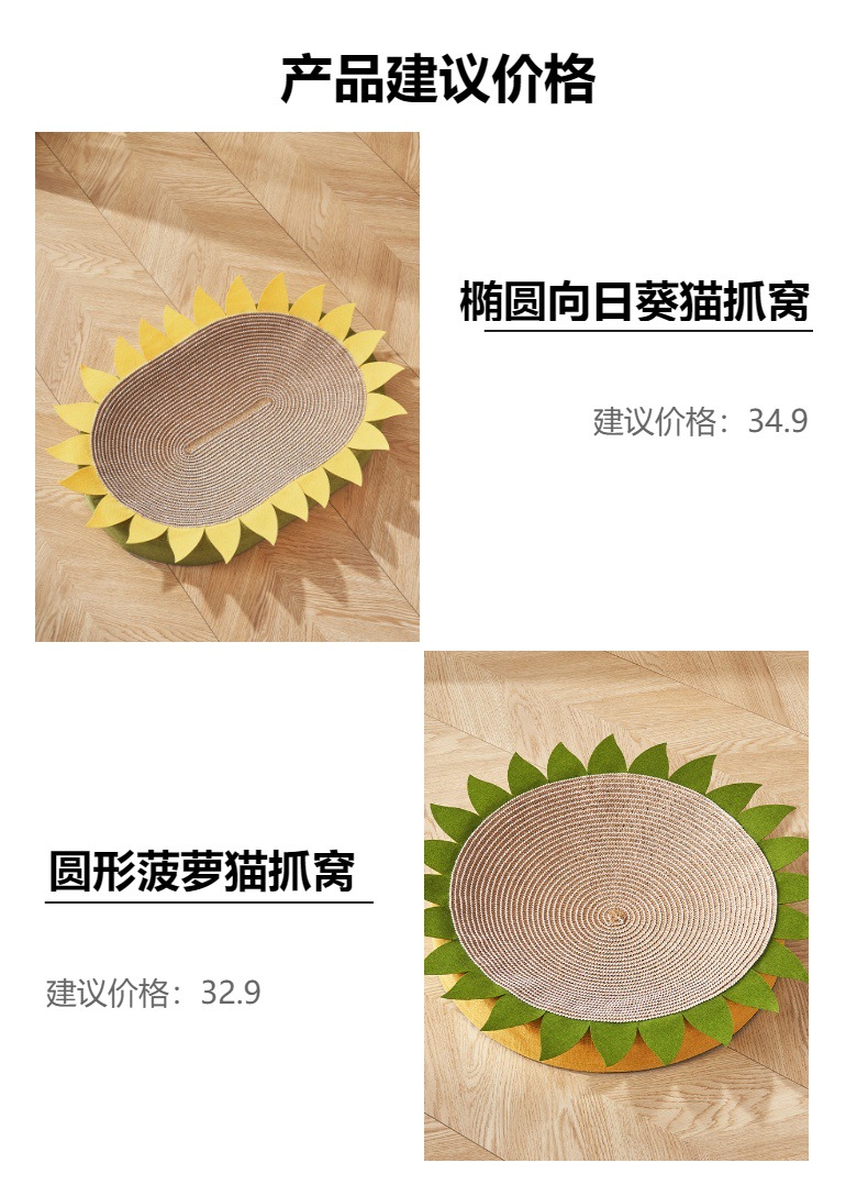 • 타원형 파인애플 고양이 긁는 둥지