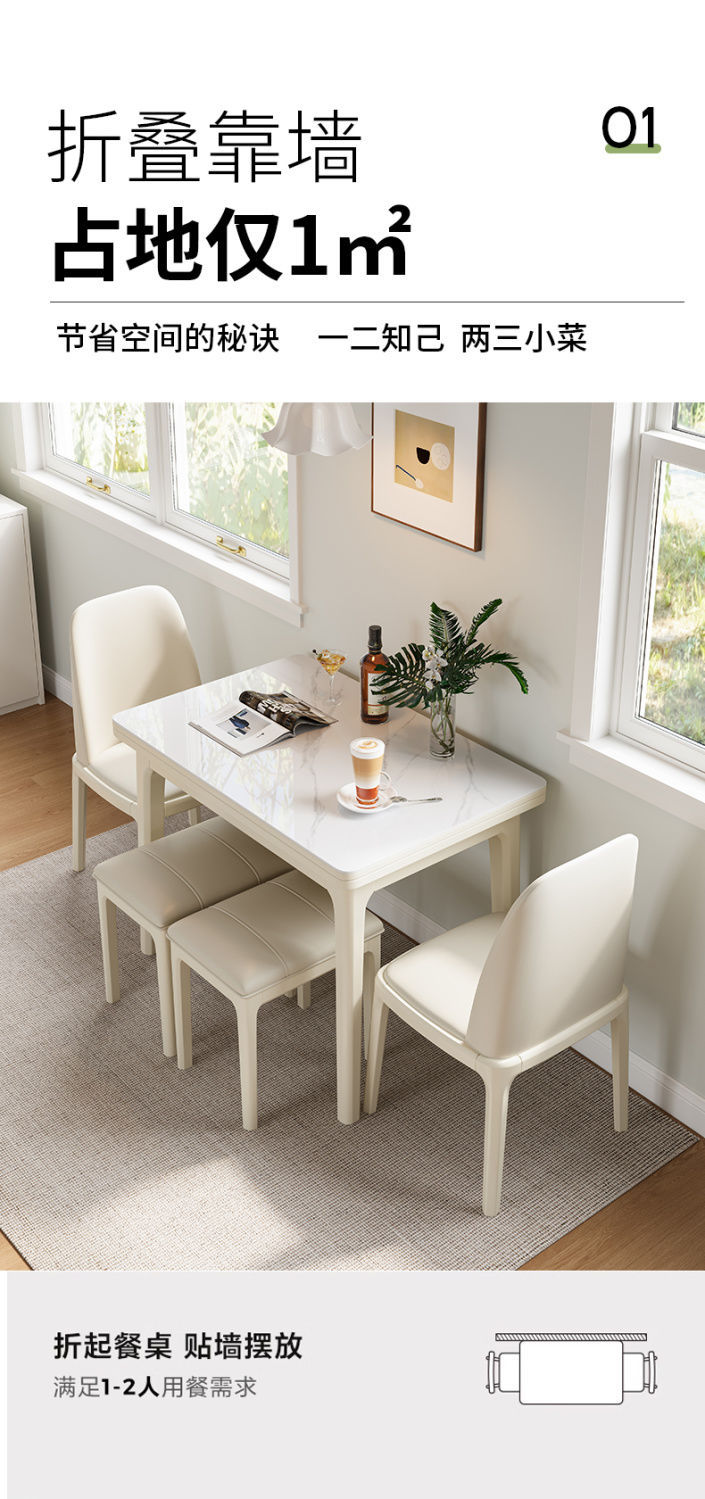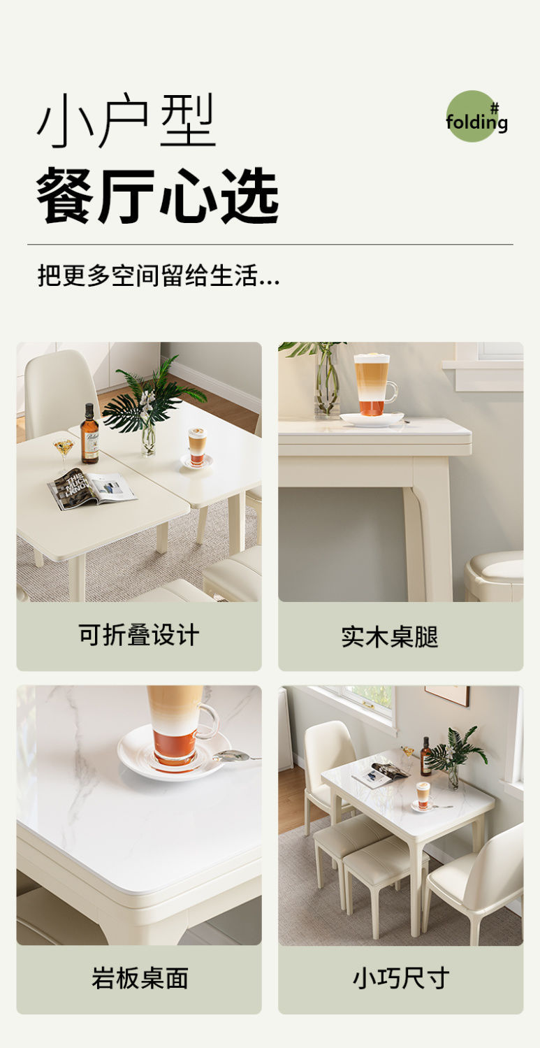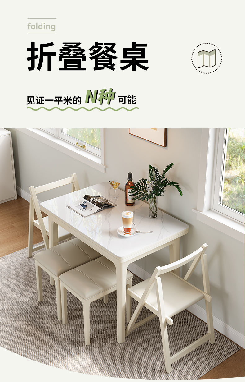 현대 간단한 접이식 바위 보드 식탁 및 의자 가정용 작은 아파트 접이식 흰색 단단한 나무 다기능 쌀 ..