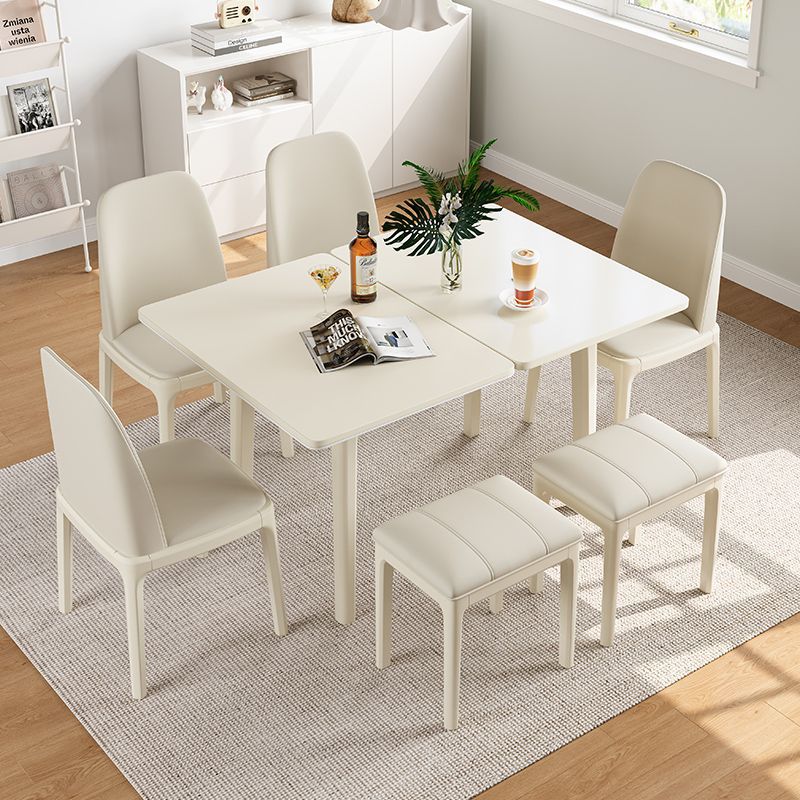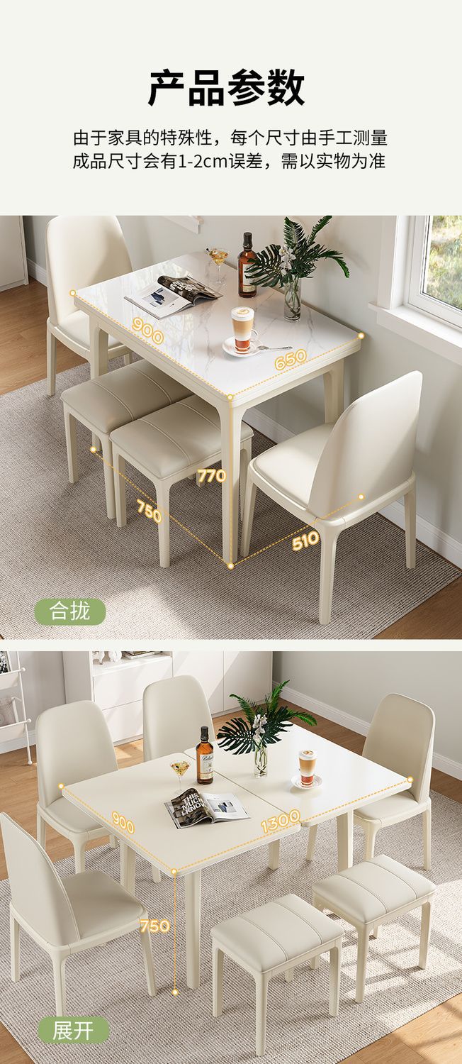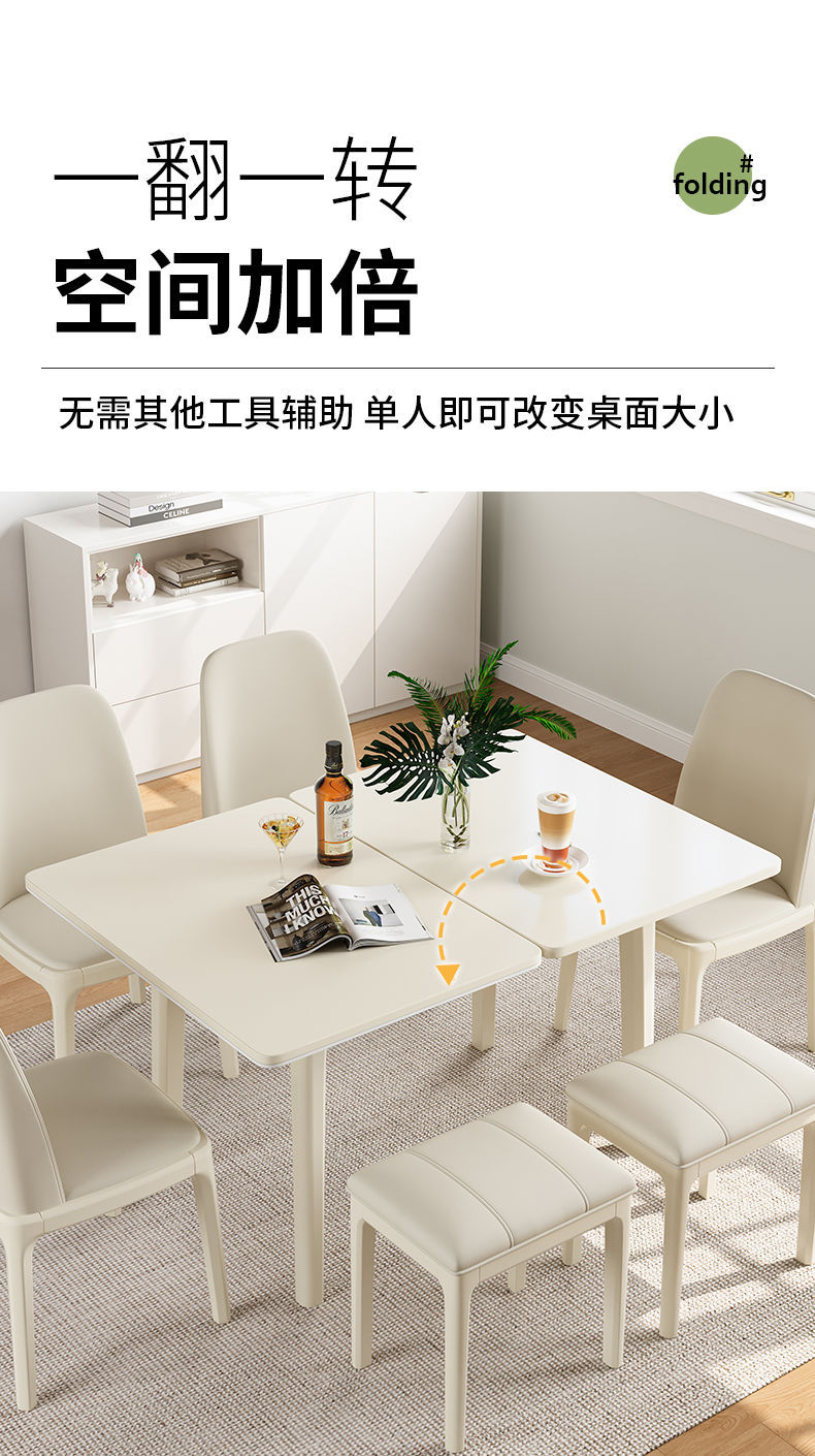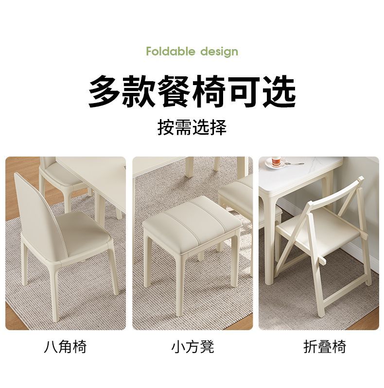 현대 간단한 접이식 바위 보드 식탁 및 의자 가정용 작은 아파트 접이식 흰색 단단한 나무 다기능 쌀 ..