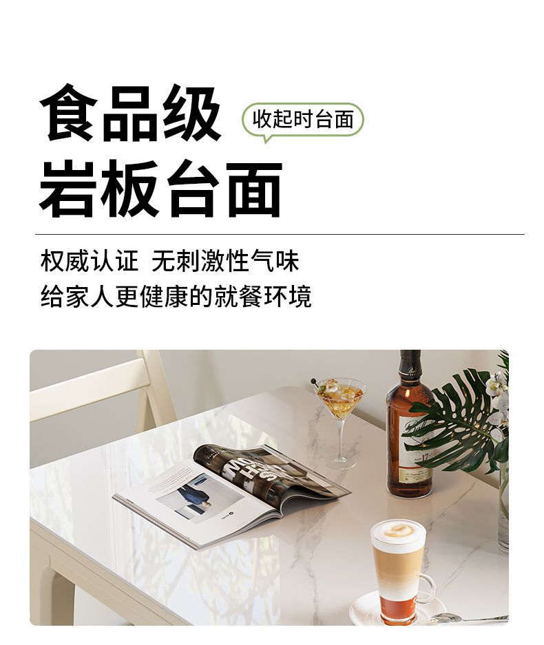 현대 간단한 접이식 바위 보드 식탁 및 의자 가정용 작은 아파트 접이식 흰색 단단한 나무 다기능 쌀 ..스토어 가기