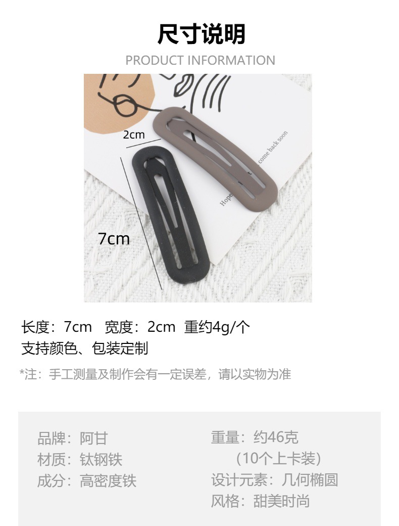 한국식 고급 분위기 감각 젖빛 헤어 액세서리 쌀 커피 컬러 7cm 관대 한 클립 타원형 bb 클립 여성 앞머리 머리핀스토어 가기