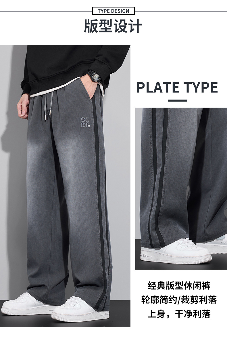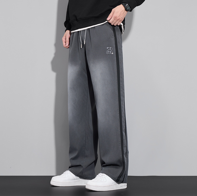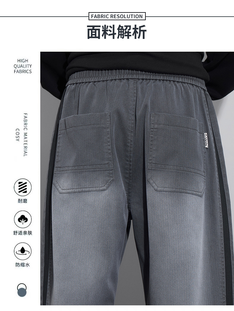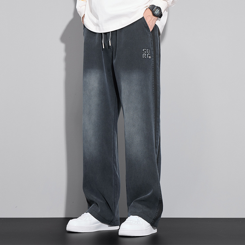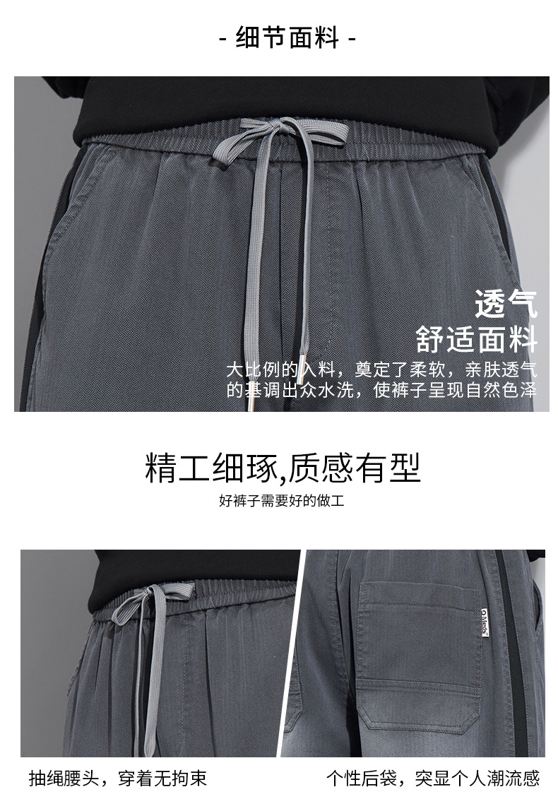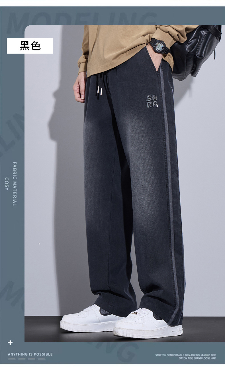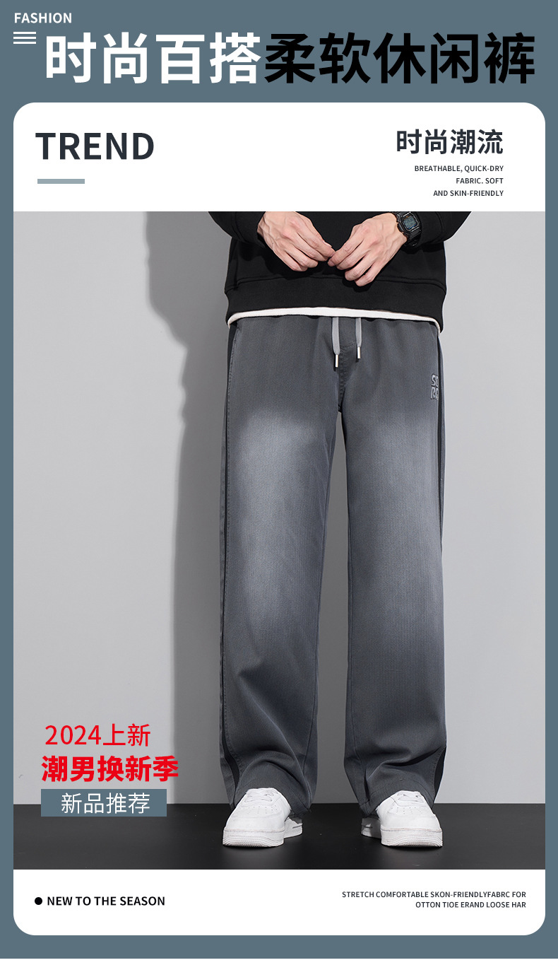 2024 새로운 Lyocell 남성용 캐주얼 바지 남성용 하이 엔드 루즈 스트리트 트렌디 모방 암소 드로스트링 남성용 와이드 레그 스트레이트 레그 팬츠
