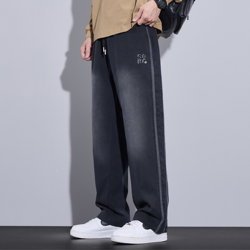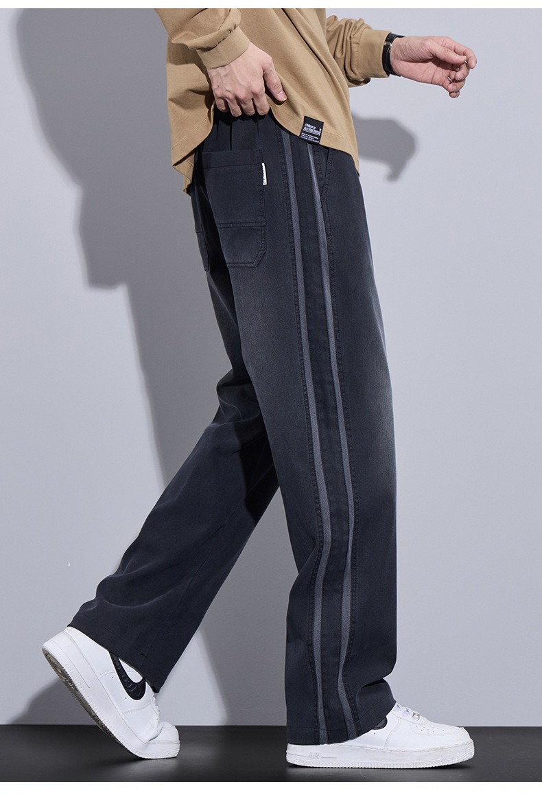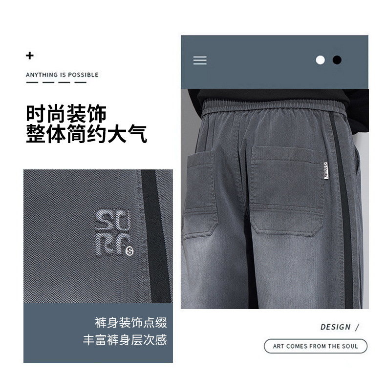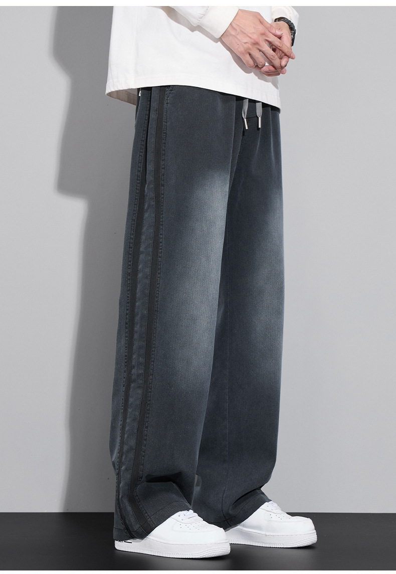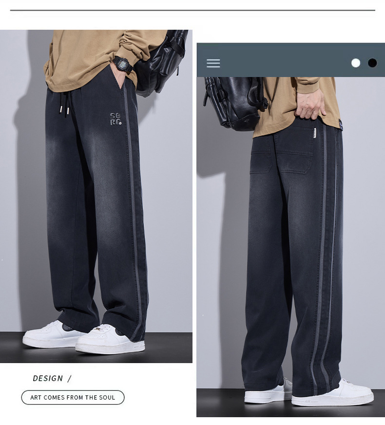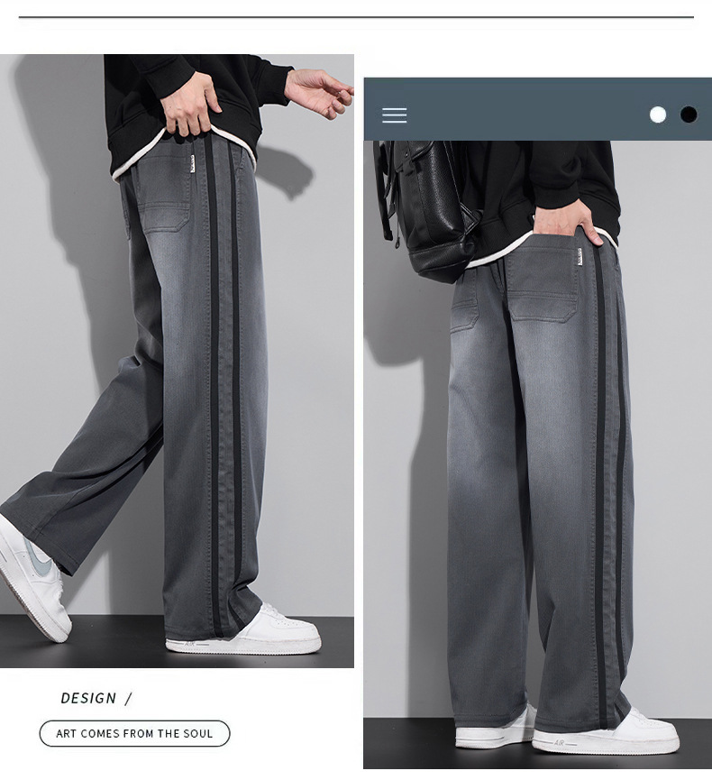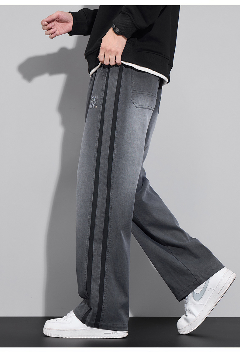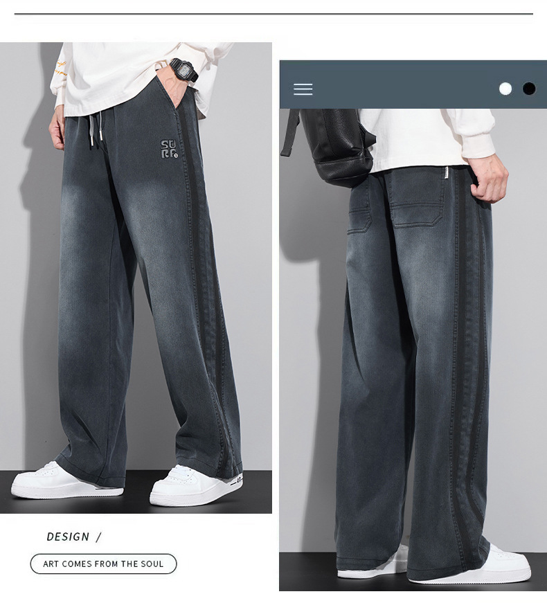 2024 새로운 Lyocell 남성용 캐주얼 바지 남성용 하이 엔드 루즈 스트리트 트렌디 모방 암소 드로스트링 남성용 와이드 레그 스트레이트 레그 팬츠