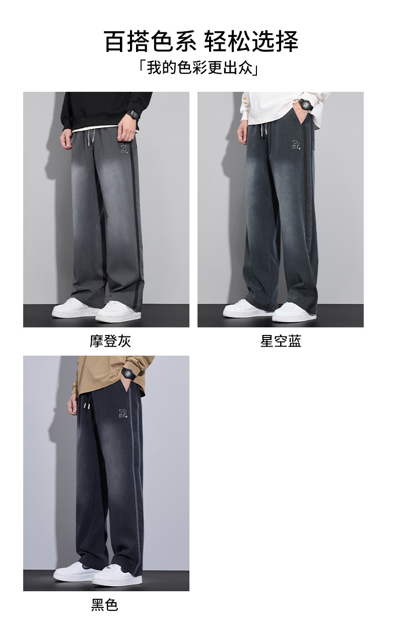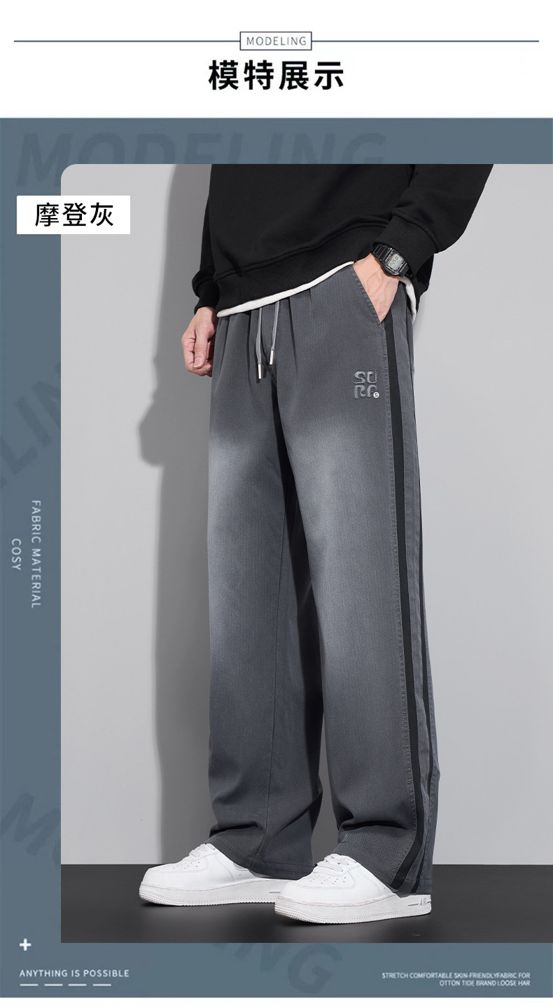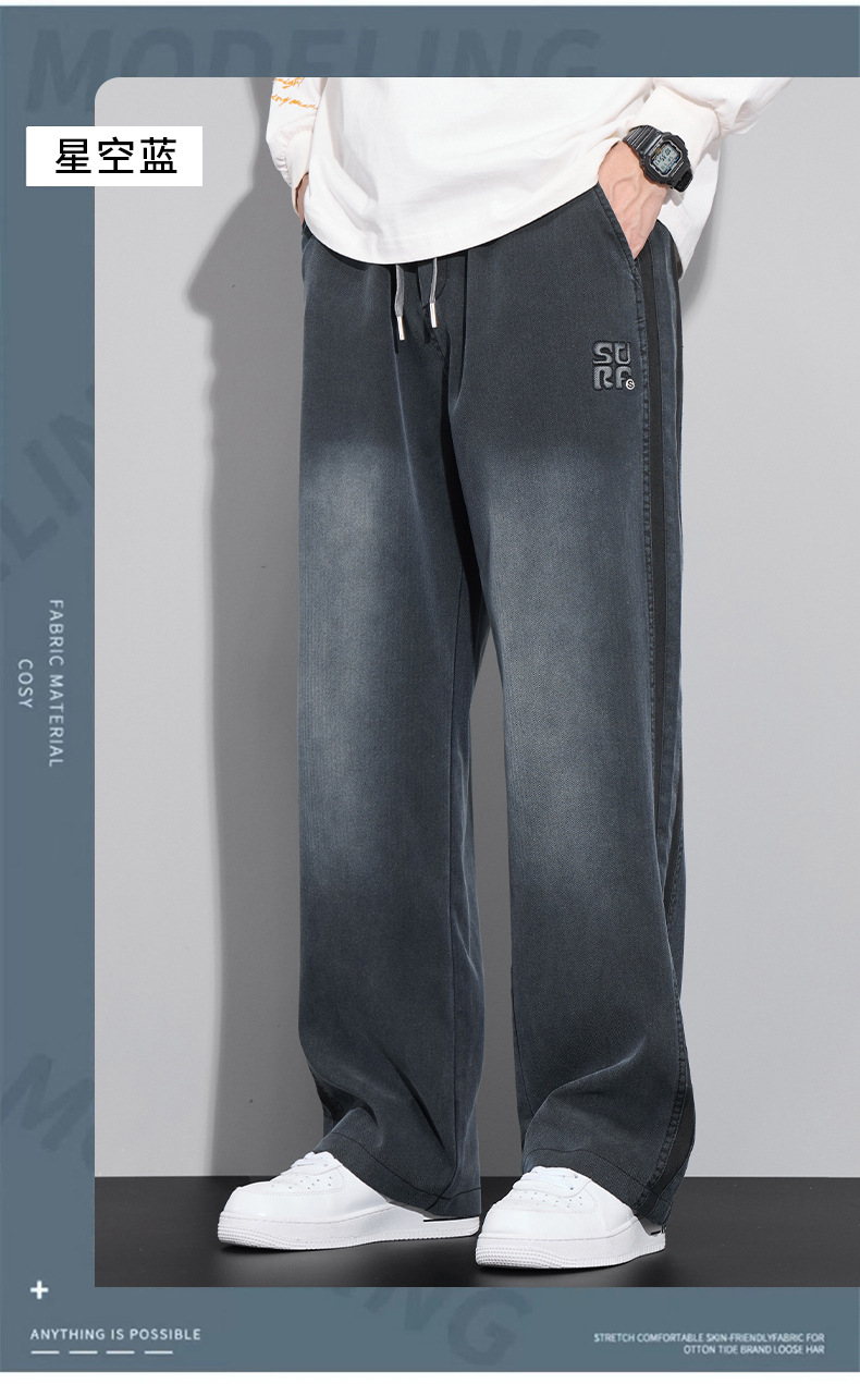 2024 새로운 Lyocell 남성용 캐주얼 바지 남성용 하이 엔드 루즈 스트리트 트렌디 모방 암소 드로스트링 남성용 와이드 레그 스트레이트 레그 팬츠스토어 가기
