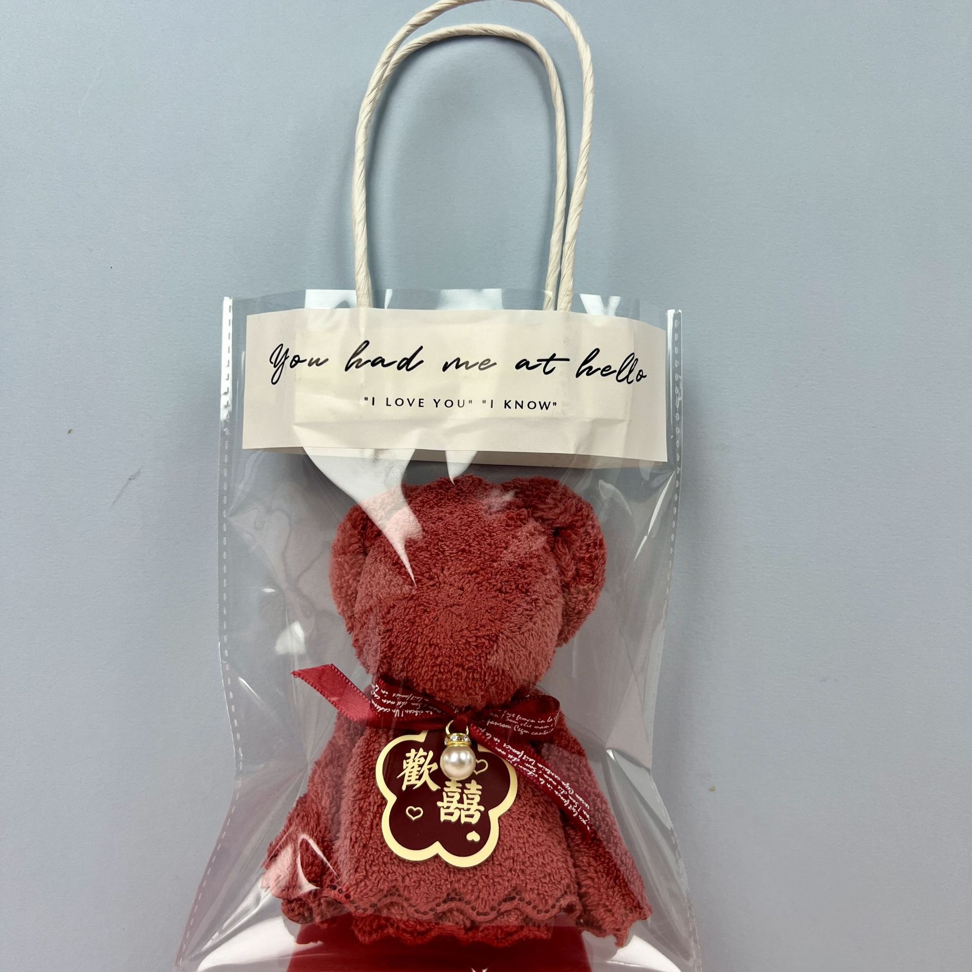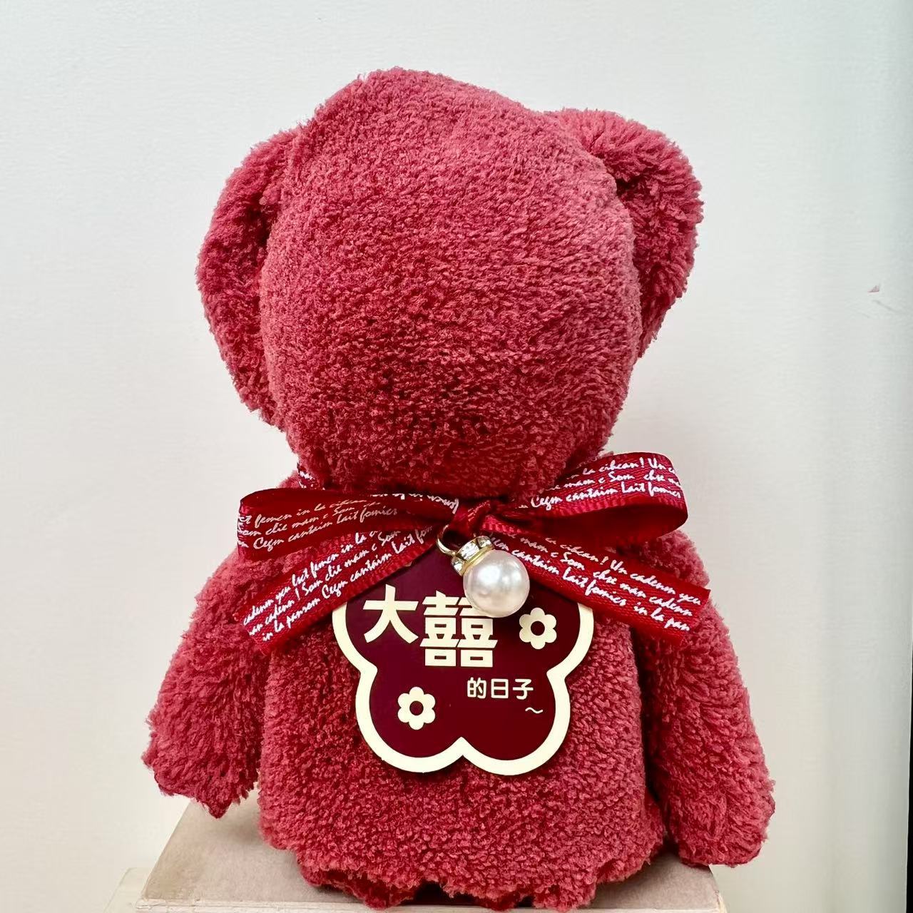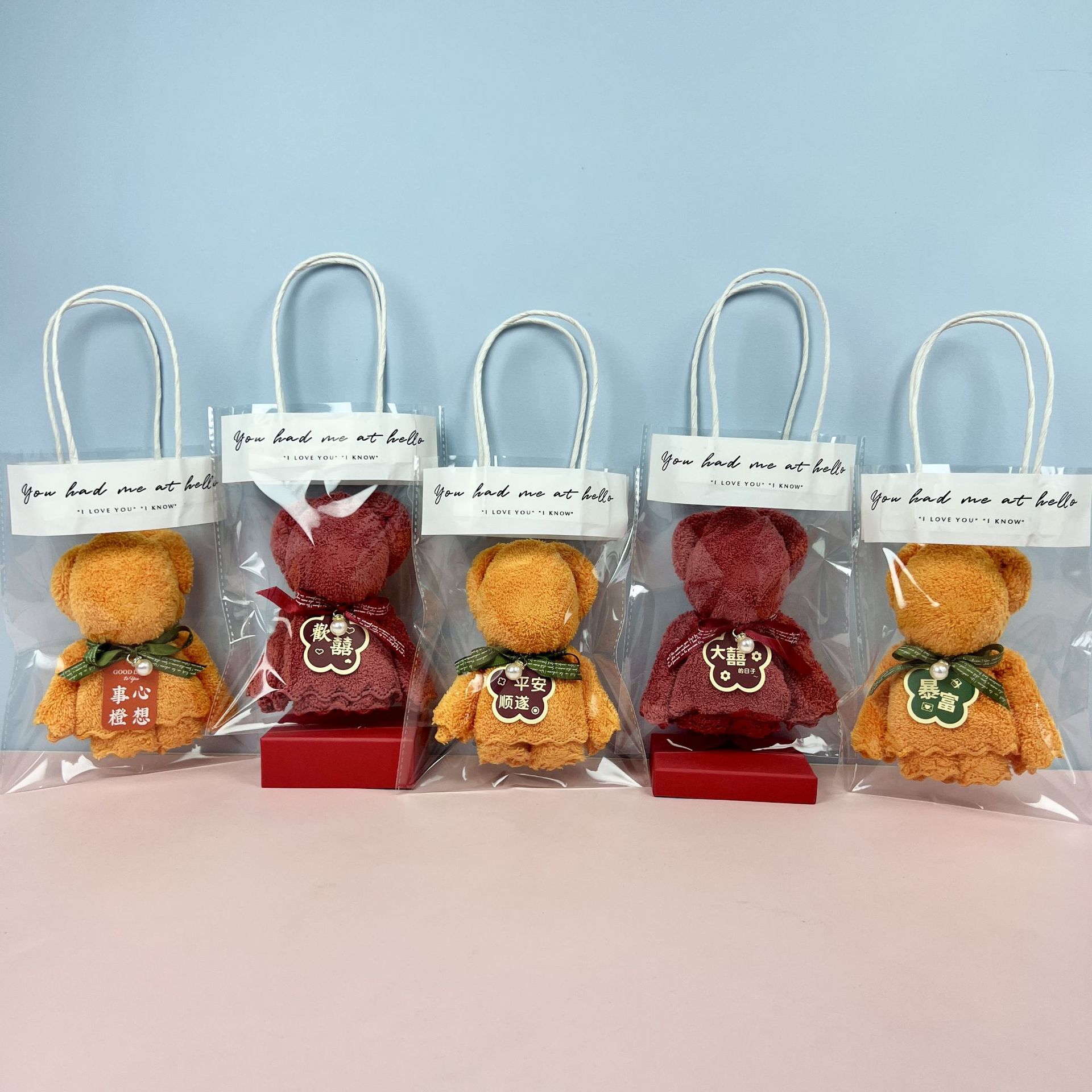 작은 선물 스퀘어 타월을 여는 선물 빨간 수건 곰 모양 결혼식 행복 단어 결혼식 반환 선물 가게 활동스토어 가기