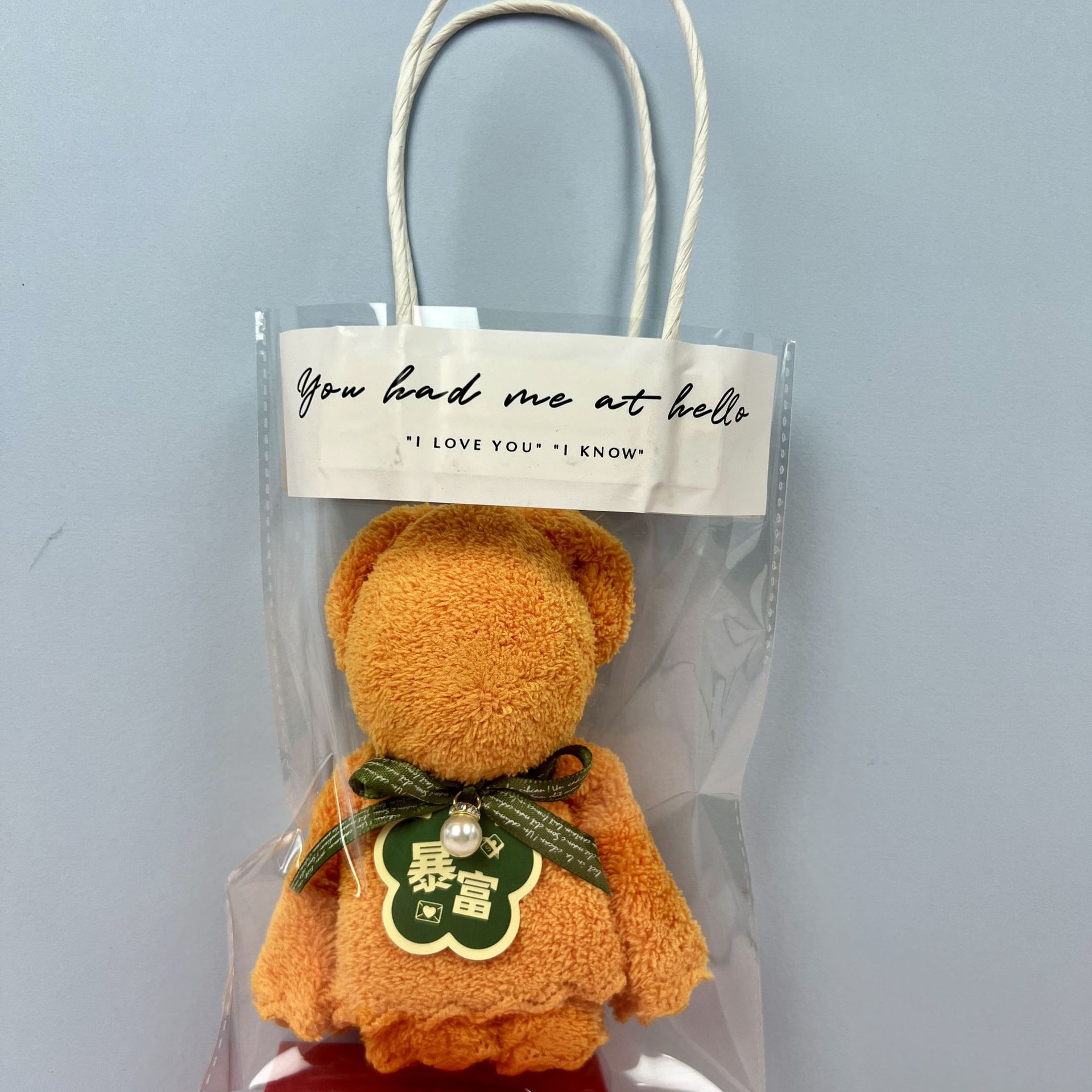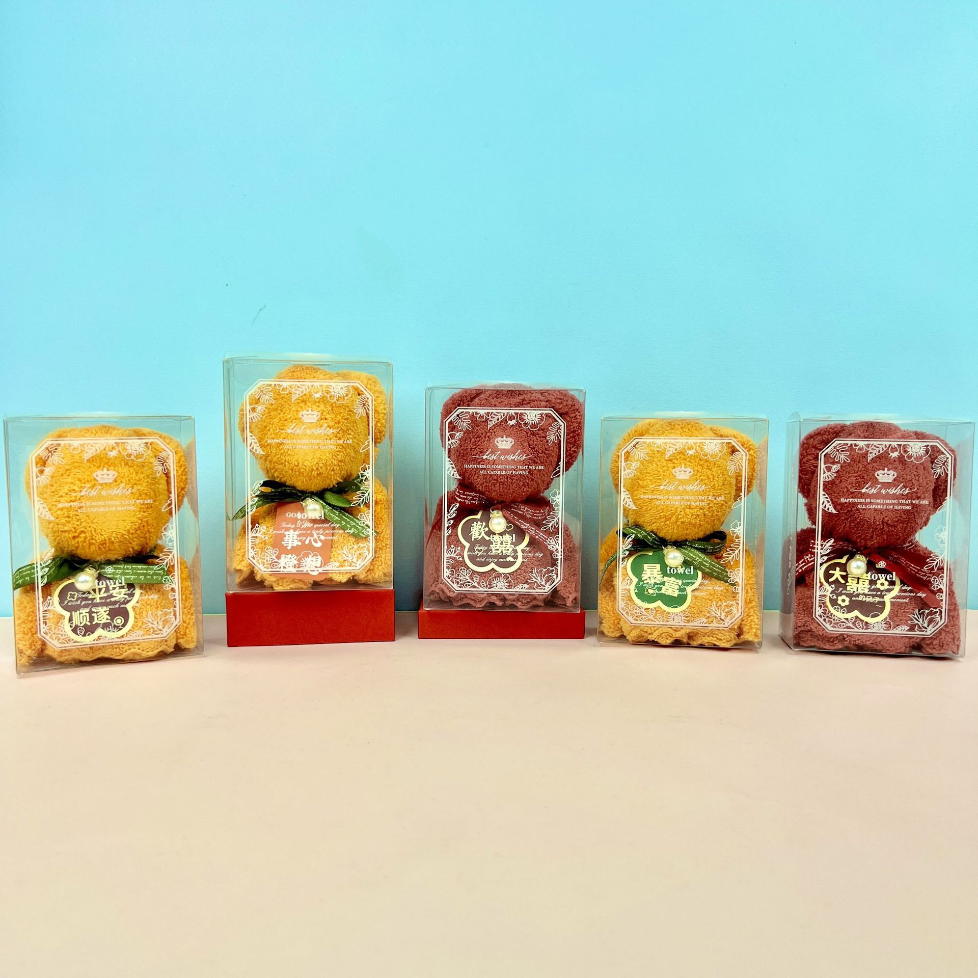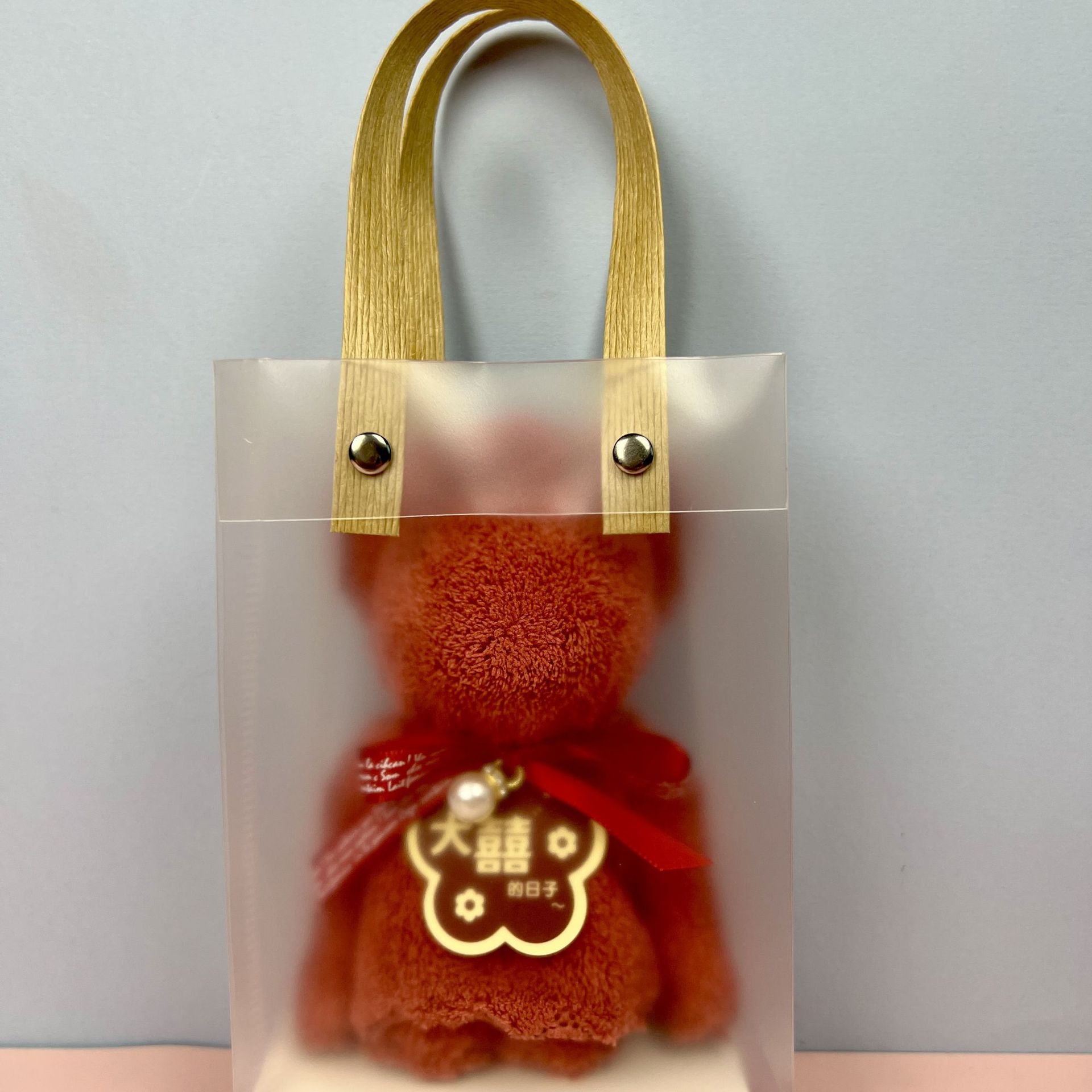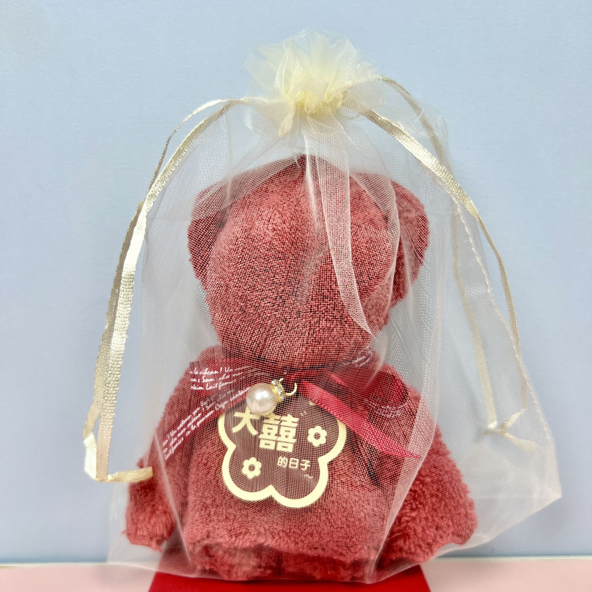 작은 선물 스퀘어 타월을 여는 선물 빨간 수건 곰 모양 결혼식 행복 단어 결혼식 반환 선물 가게 활동스토어 가기