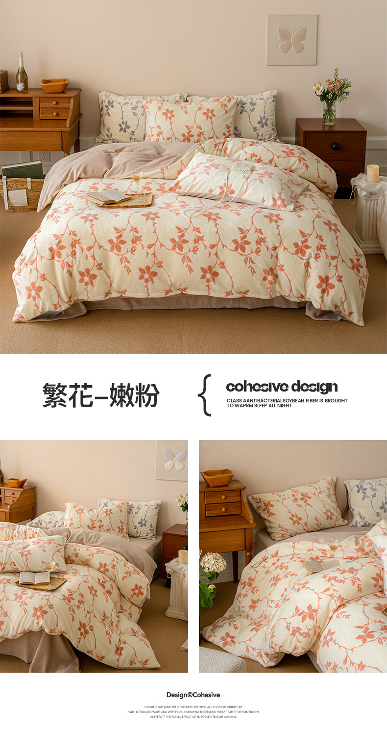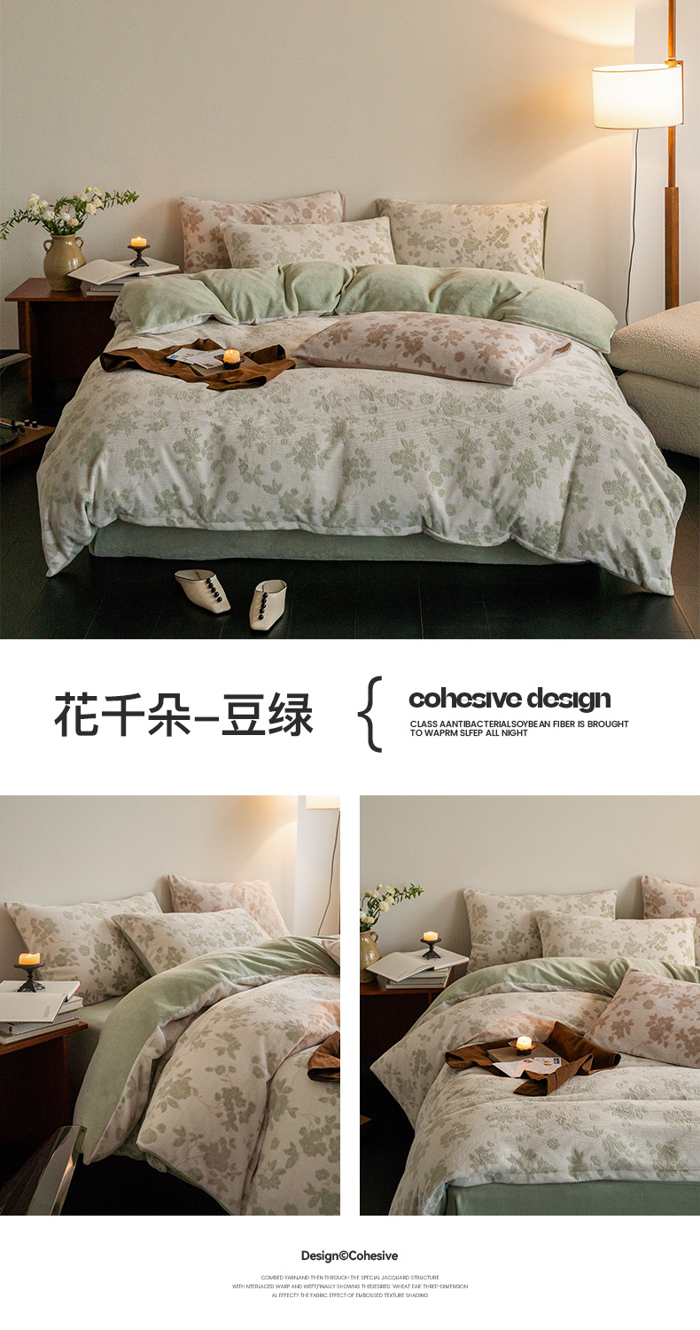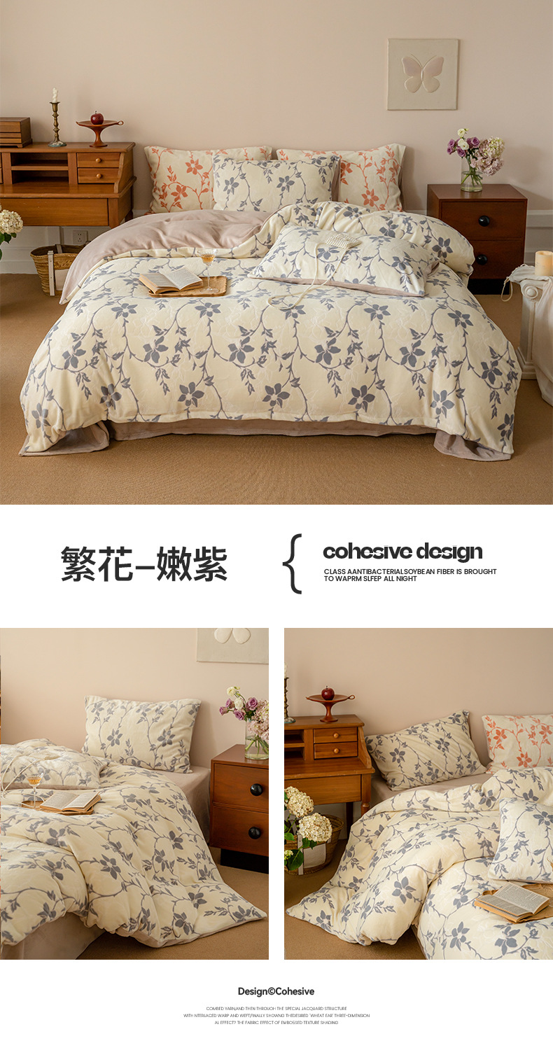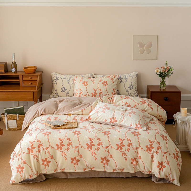 2024 가을과 겨울 새로운 미국 복고풍 꽃 조각 우유 벨벳 따뜻한 침대 시트 퀼트 커버 4 피스 학생 기숙사스토어 가기
