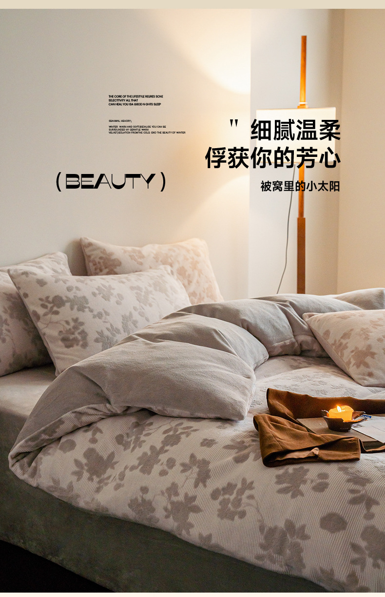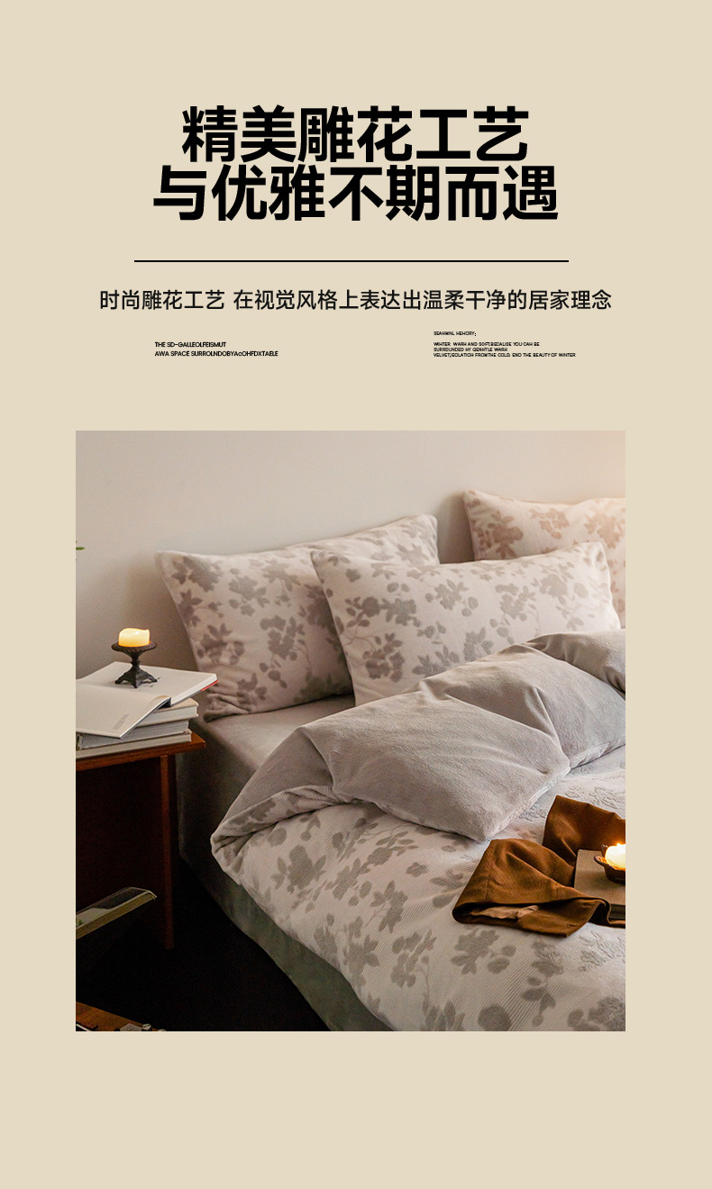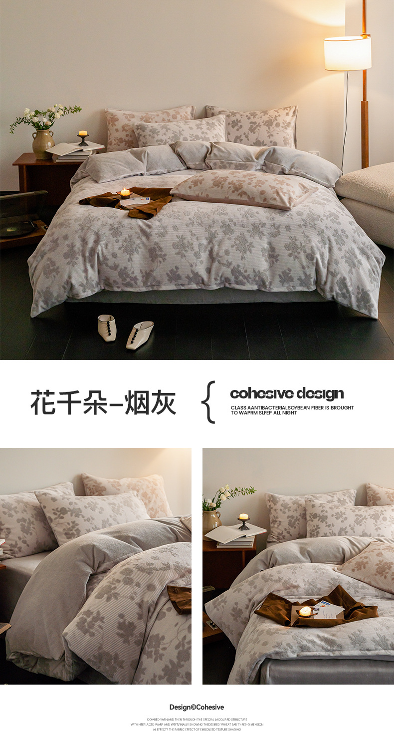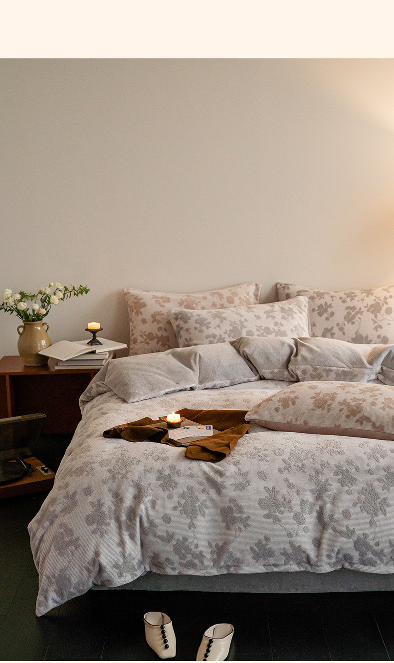 2024 가을과 겨울 새로운 미국 복고풍 꽃 조각 우유 벨벳 따뜻한 침대 시트 퀼트 커버 4 피스 학생 기숙사스토어 가기