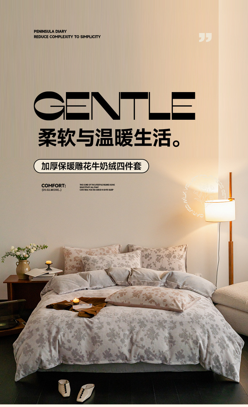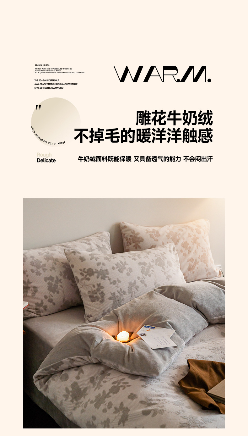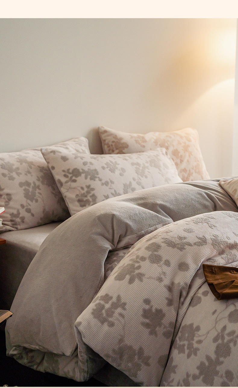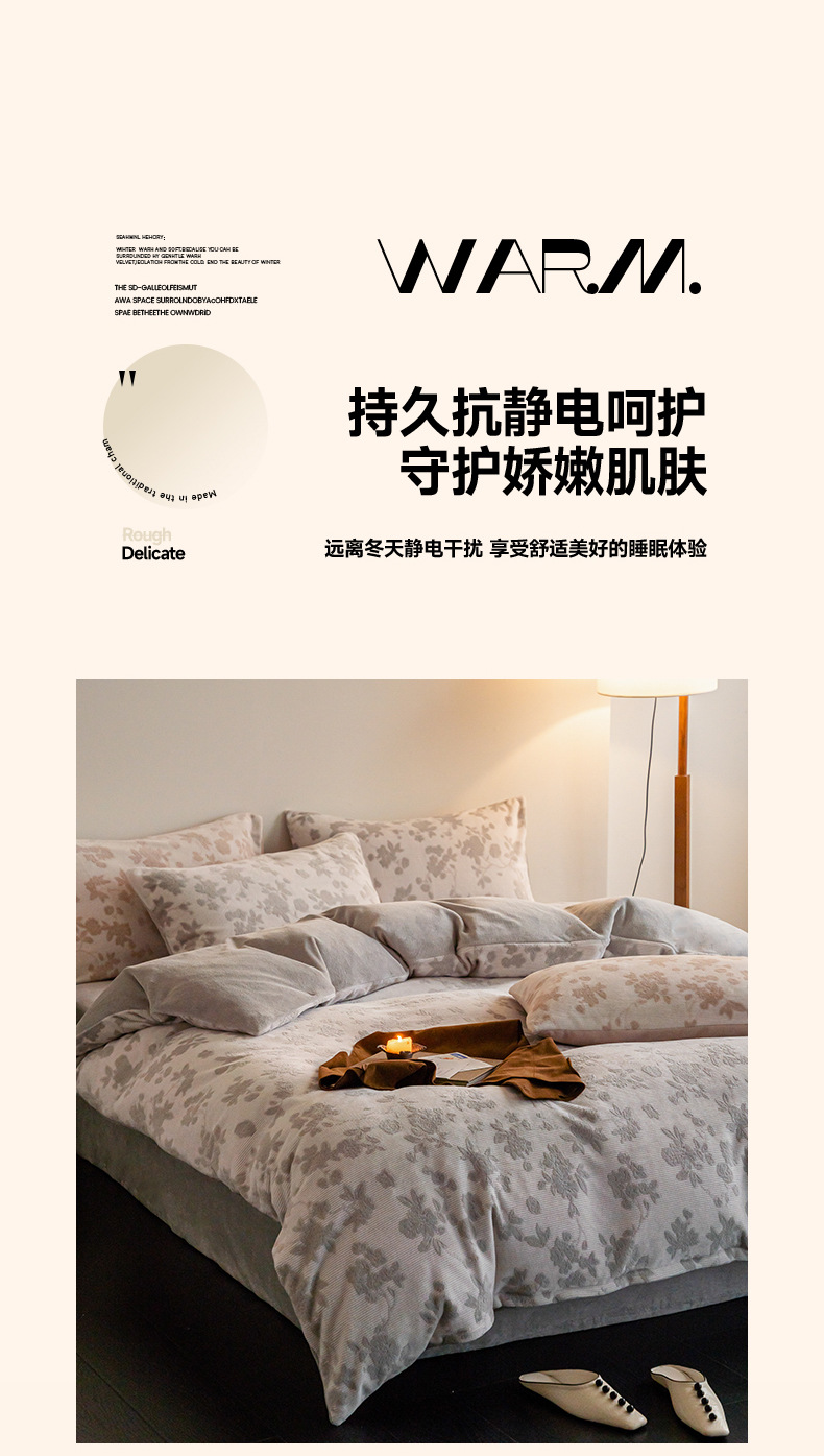 2024 가을과 겨울 새로운 미국 복고풍 꽃 조각 우유 벨벳 따뜻한 침대 시트 퀼트 커버 4 피스 학생 기숙사스토어 가기
