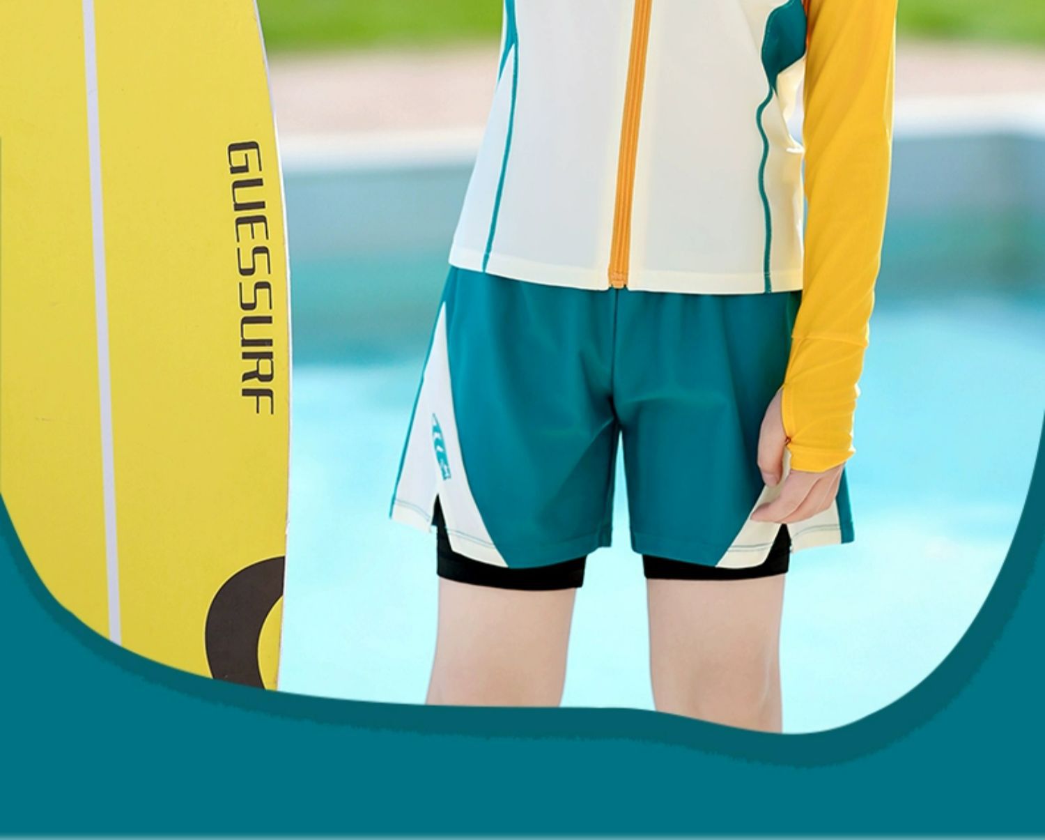 • 노란색 투피스 긴팔반바지 [부끄러움을 방지하기 위한 더블 레이어 하의]