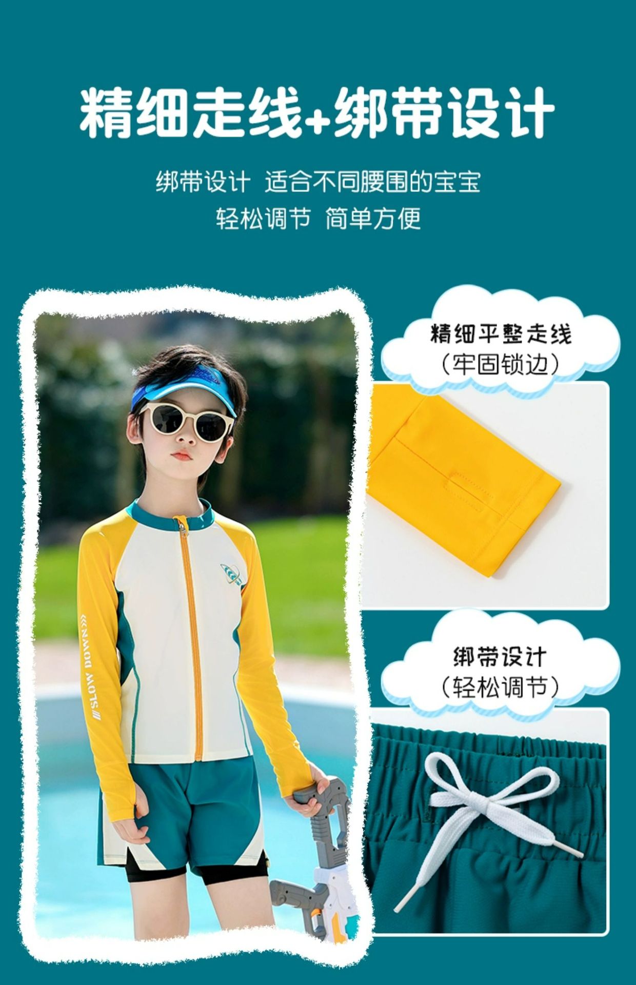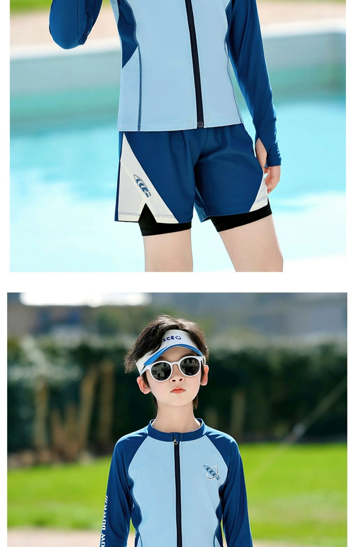 어린이 수영복 소년 분할 긴 소매 수영복 큰 어린이 청소년 수영 트렁크 태양 보호 세트 2024 년 새 여름