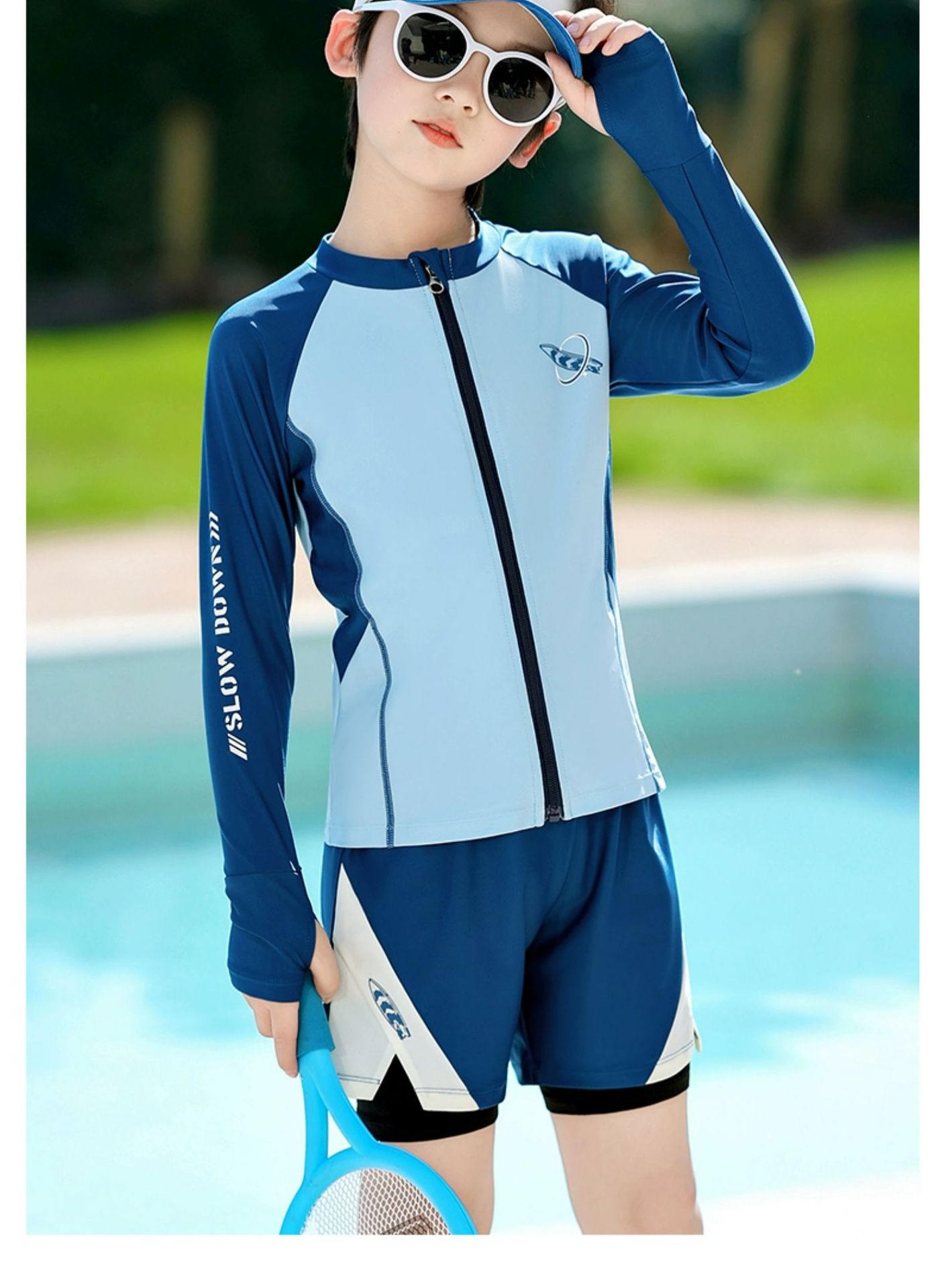 • 스플릿 블루 긴팔반바지 [긴소매 디자인, 변색되지 않음]