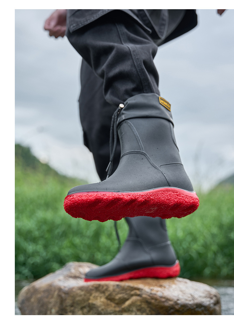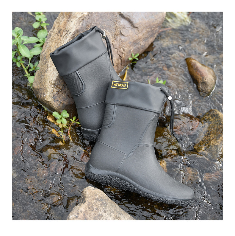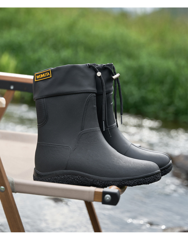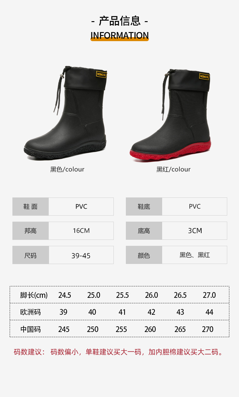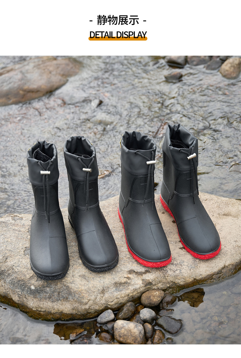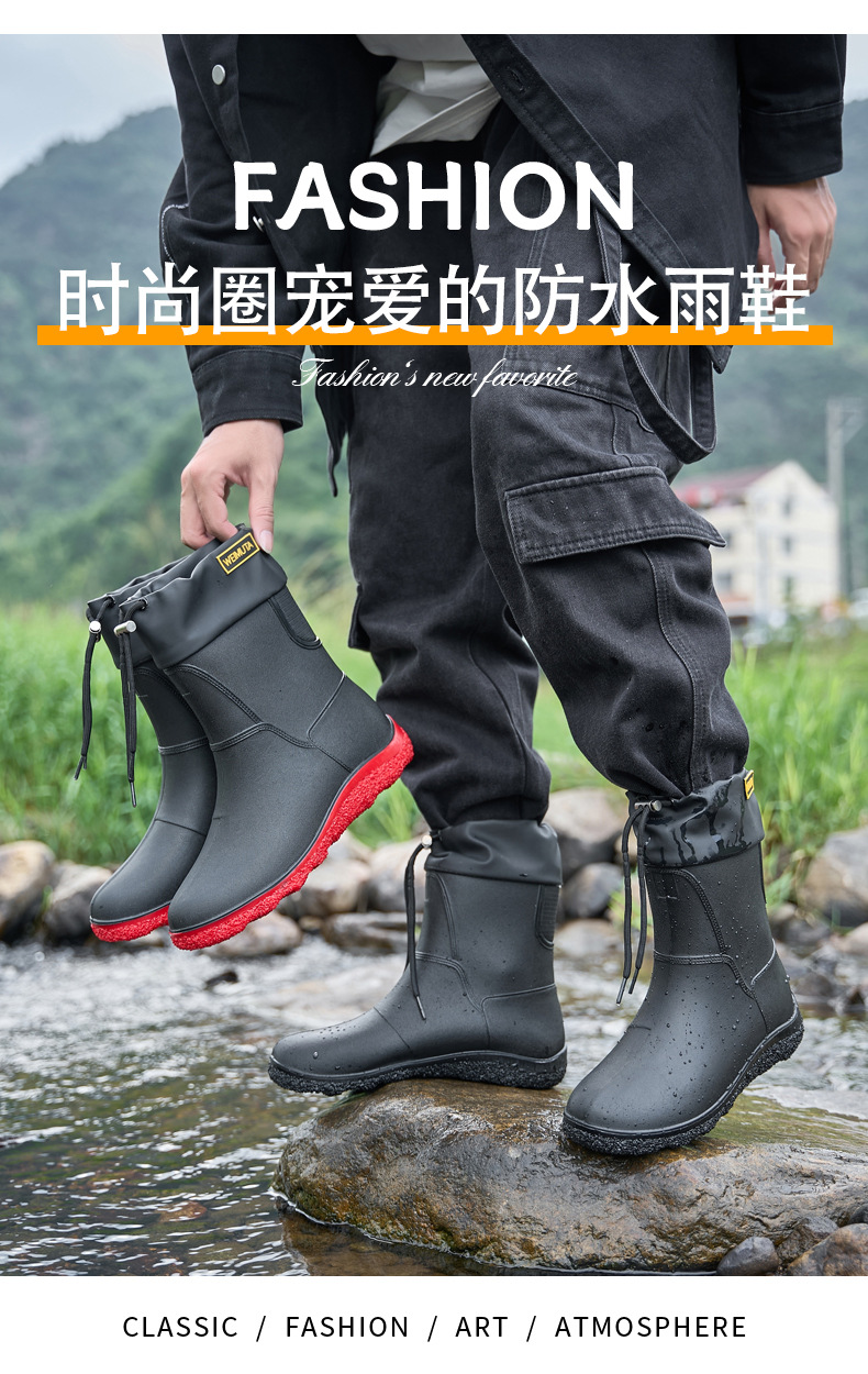 남성용 중간 배럴 유선 영국 레인 부츠 방수 캐주얼 레인 부츠 경량 주방 미끄럼 방지 고무 신발 두꺼운 밑창 워터 슈즈