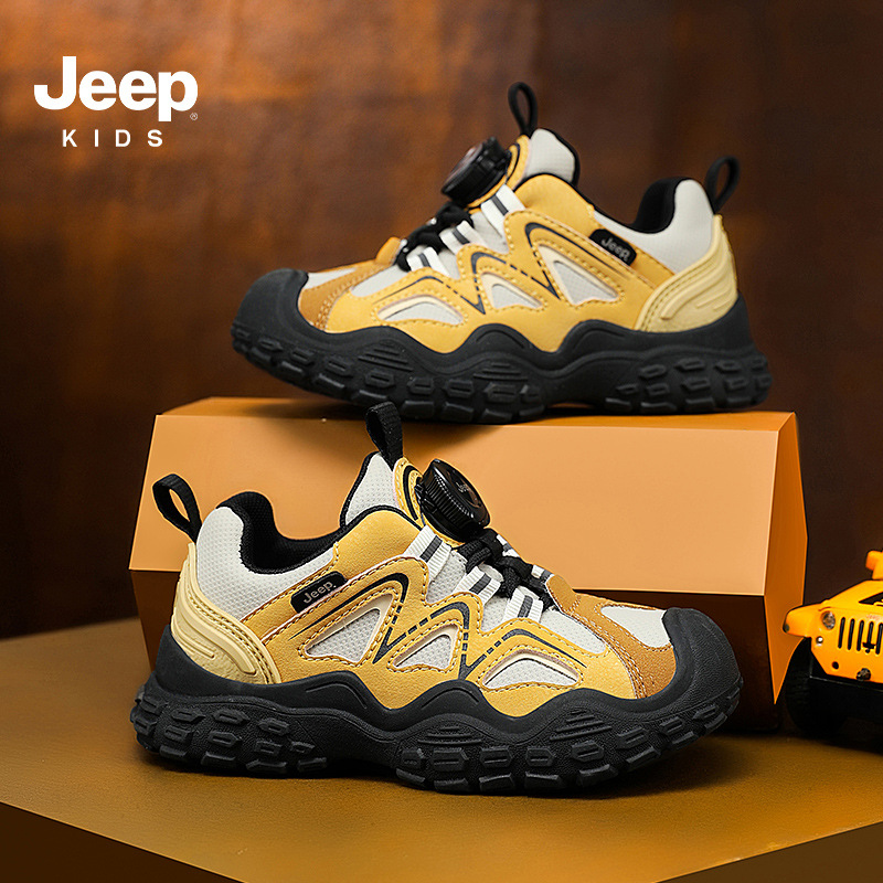 지프 어린이 신발 2024 가을 새로운 회전 버튼 등산 신발 편안한 미끄럼 방지 남성용 신발 트렌디 올매치 아동용 신발