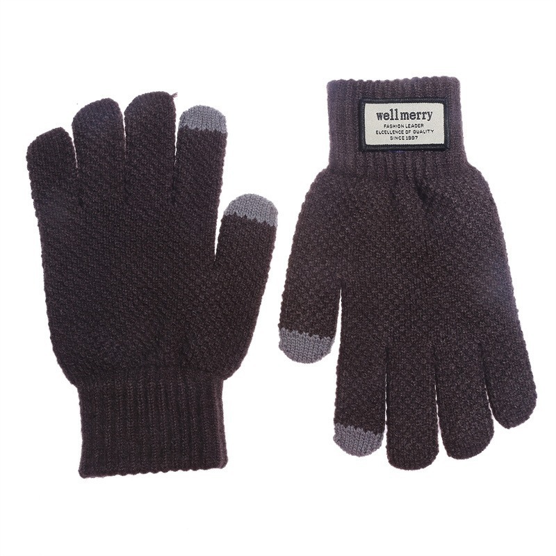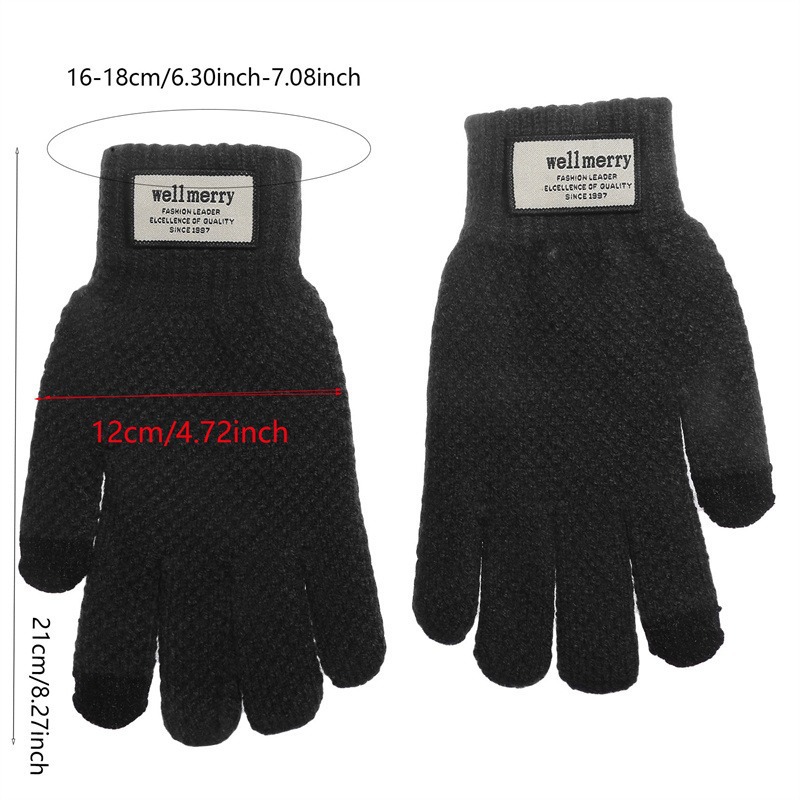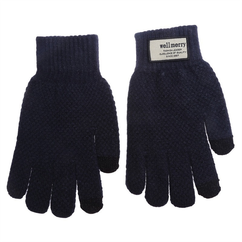자카드 신형 크로스보더 장갑, 대형 플러스 벨벳 남성용 장갑, 가을 겨울 방한 및 따뜻한 터치 스크린 니트 울 두꺼운스토어 가기
