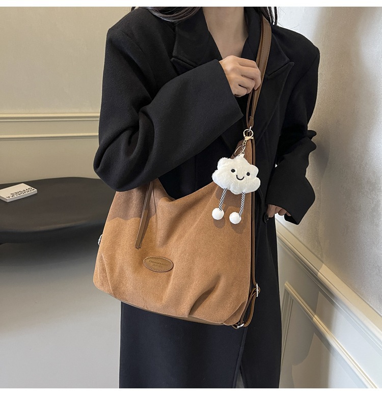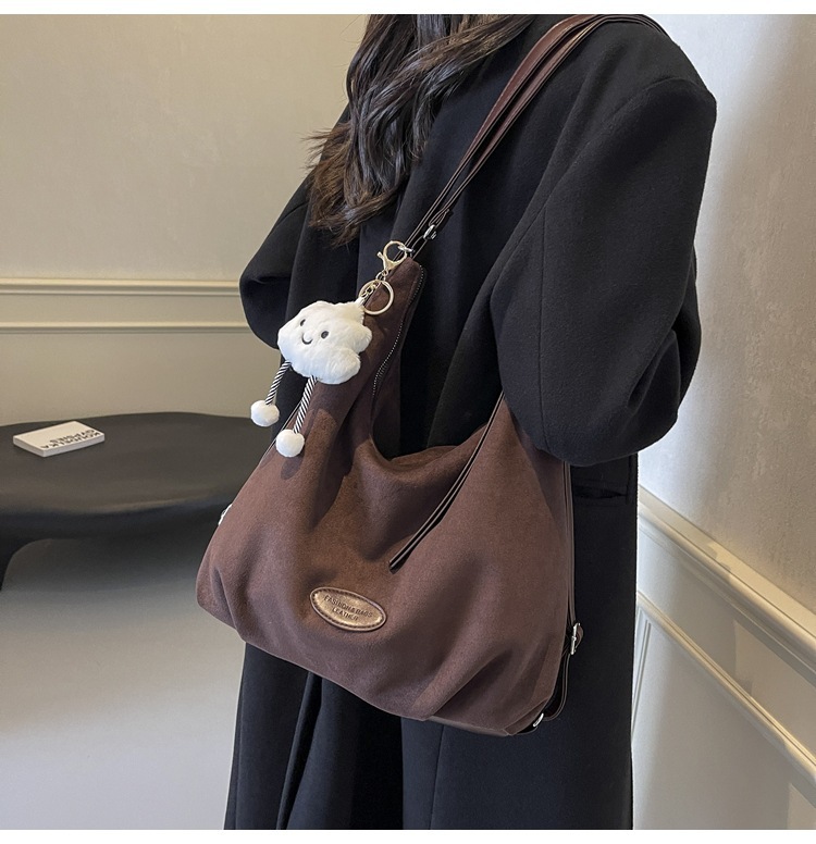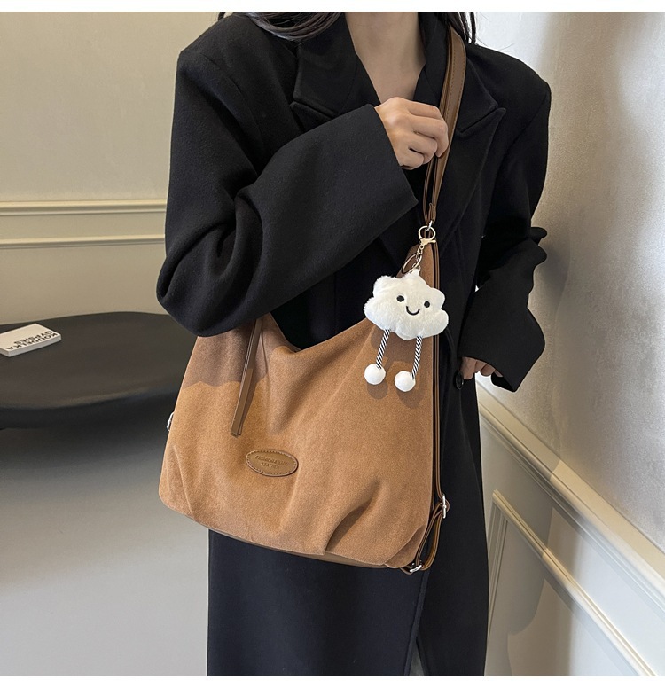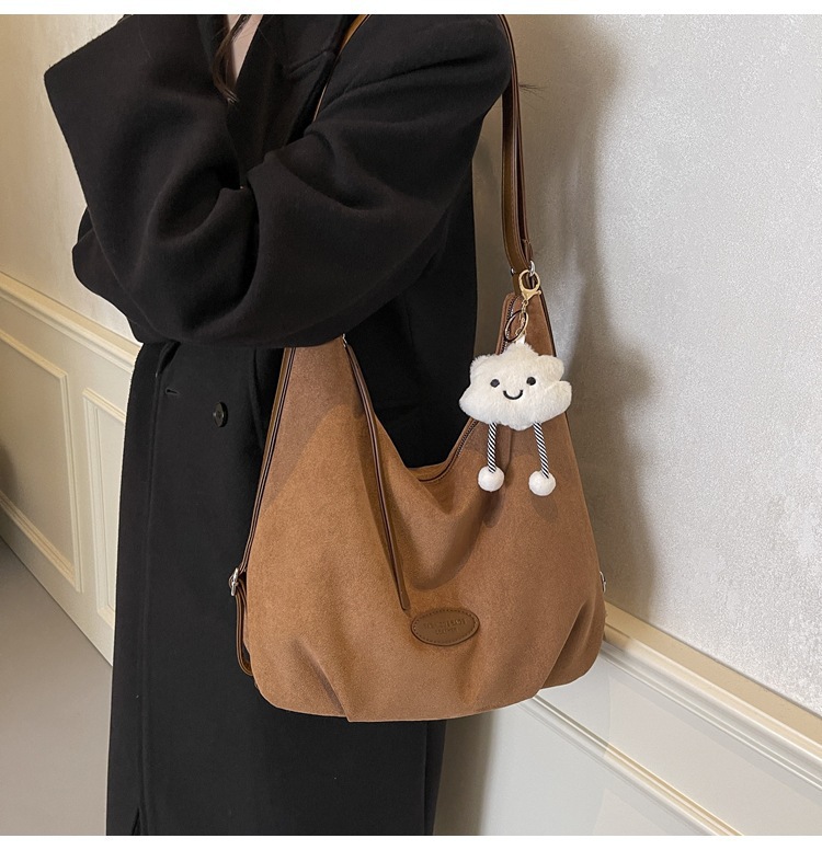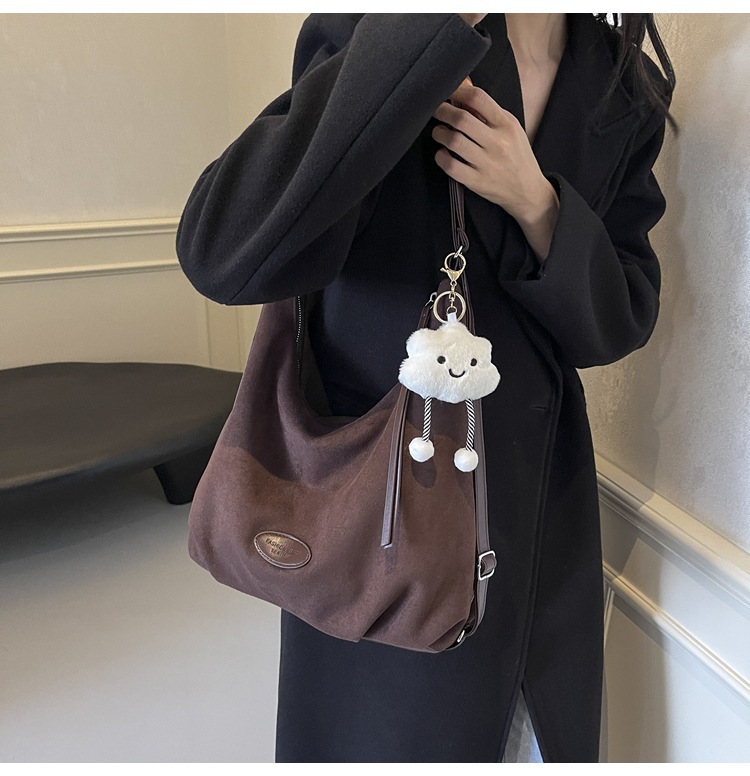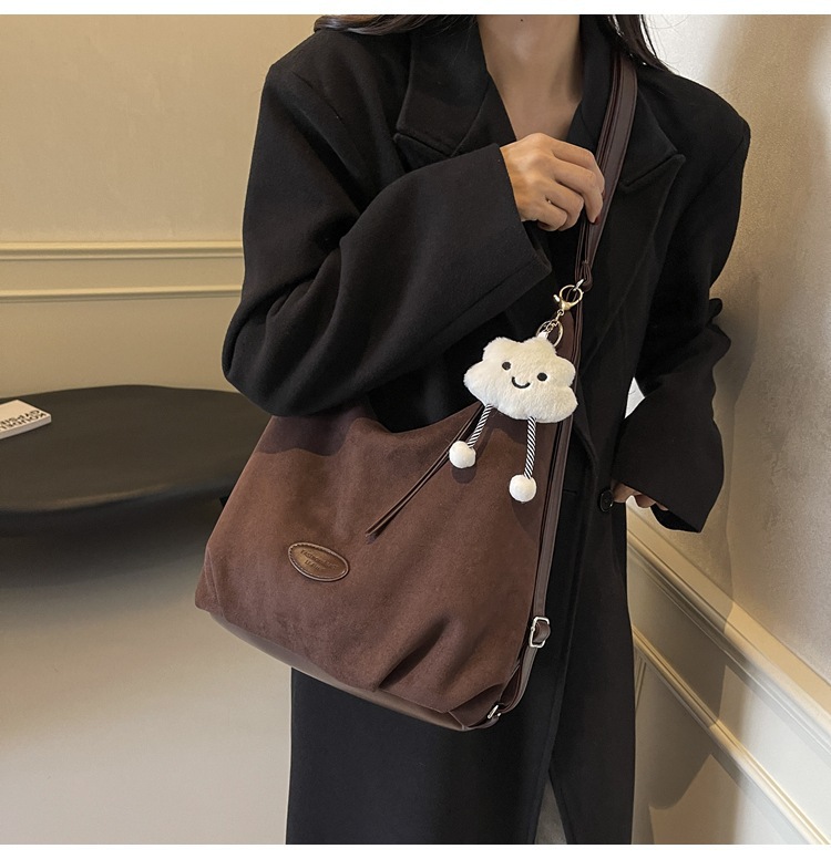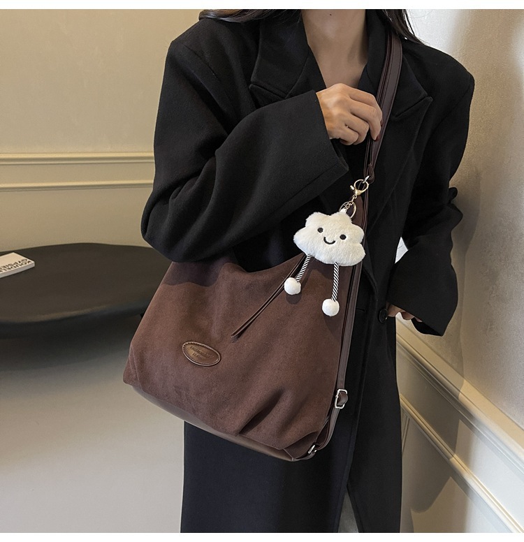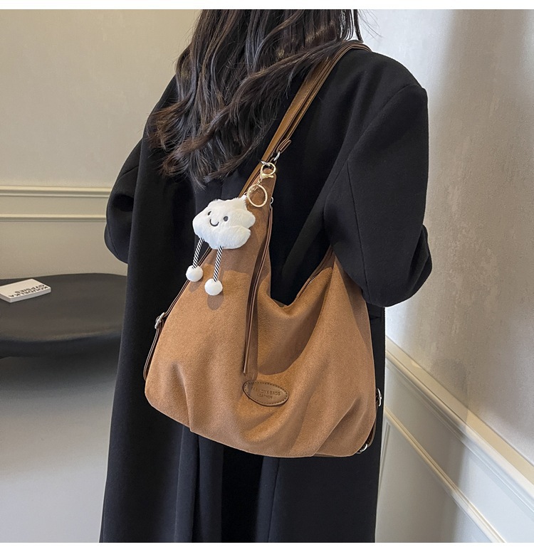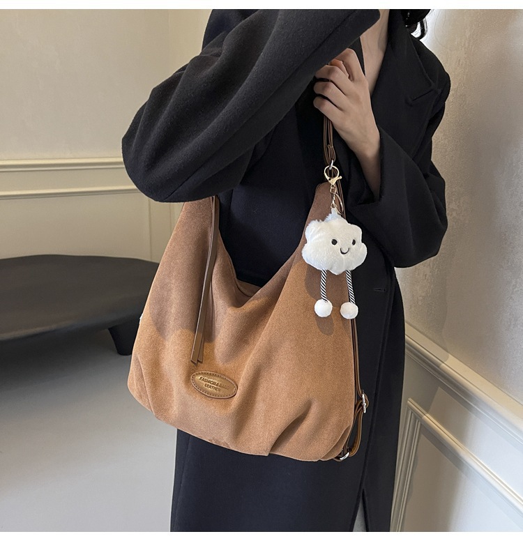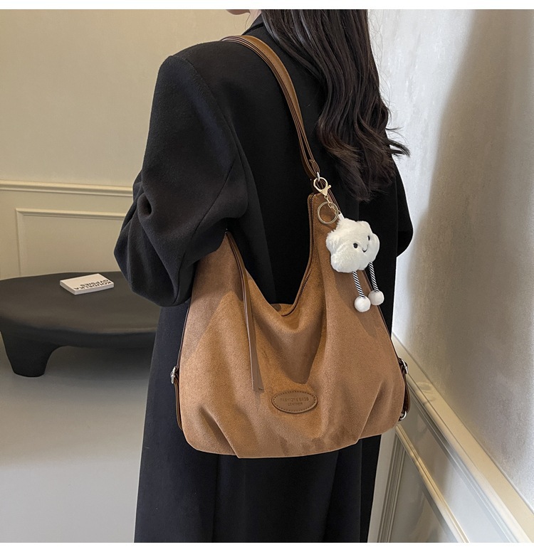 패션 접힌 가방 여성의 가을과 겨울 새로운 유행 대용량 어깨 가방 2024 질감 더블 어깨 스웨이드 유행 펜던트