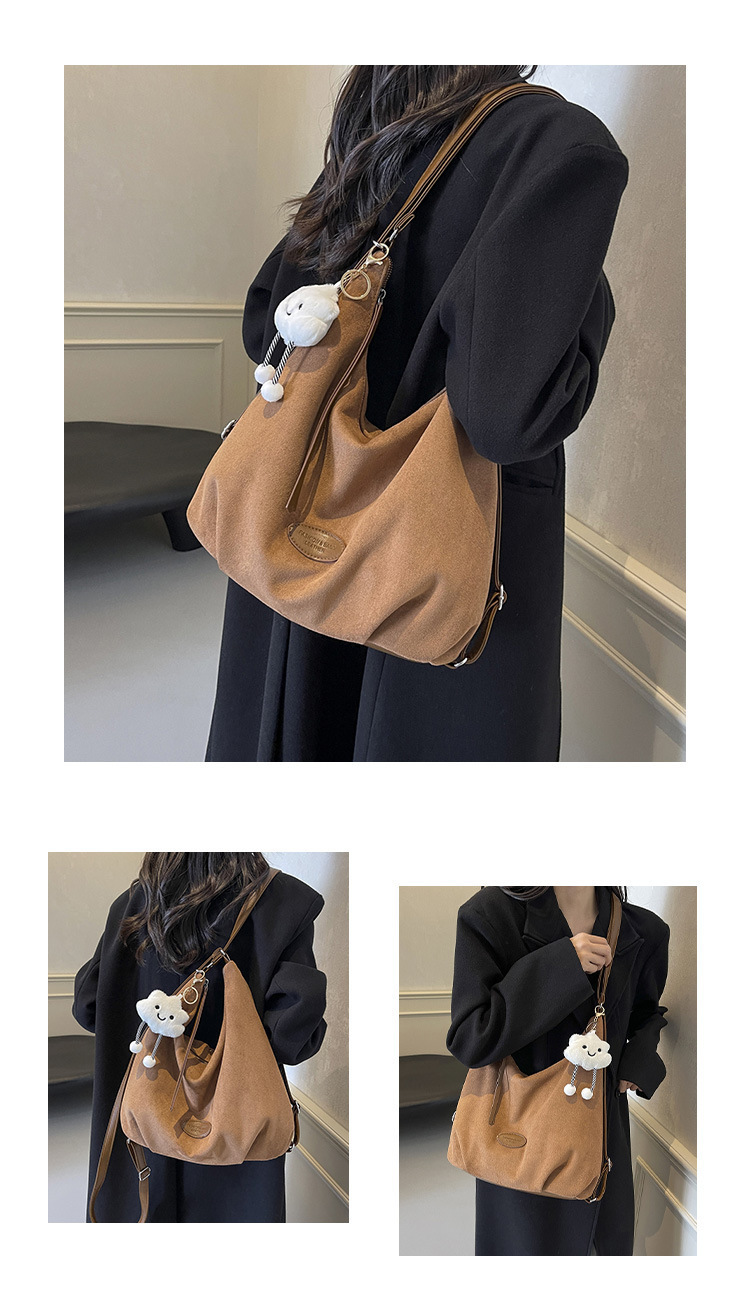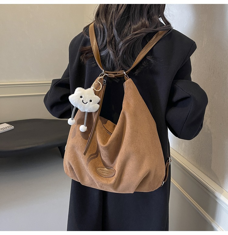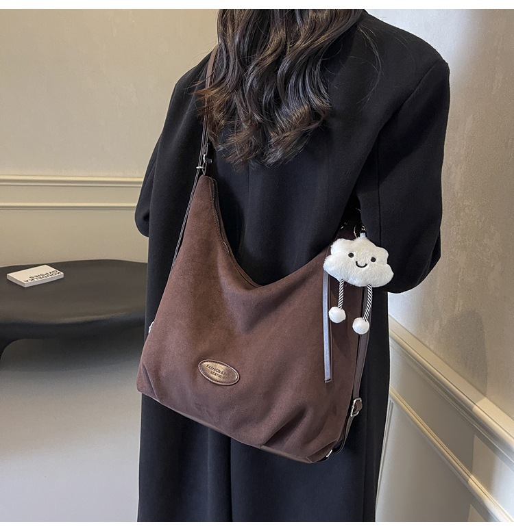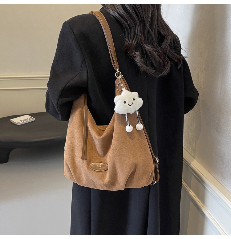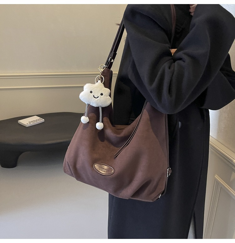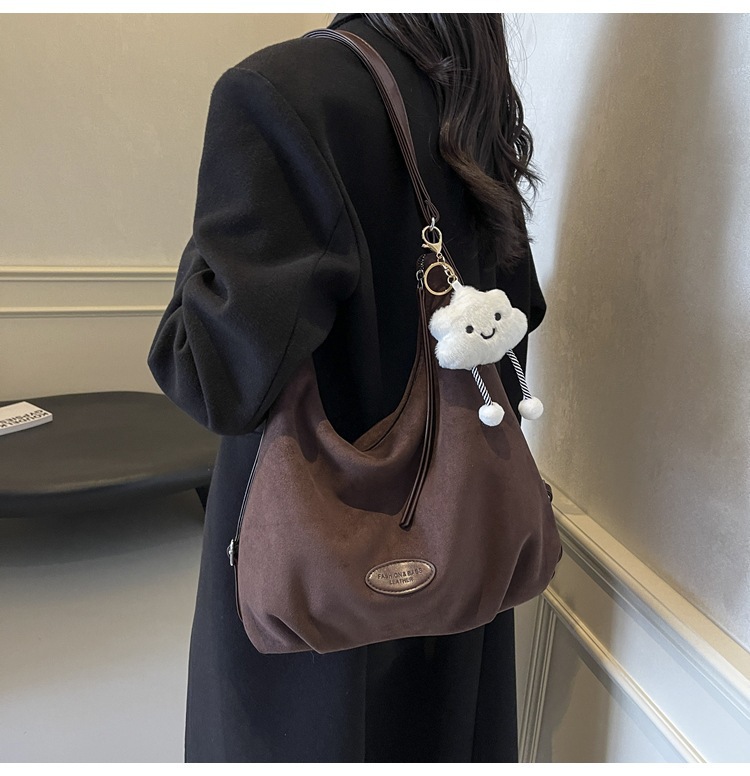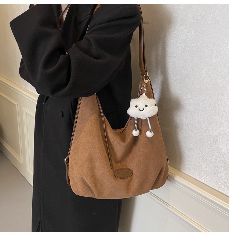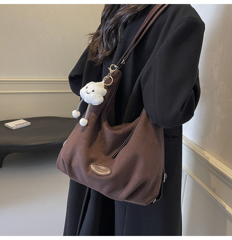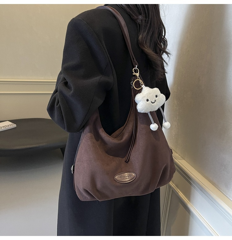 패션 접힌 가방 여성의 가을과 겨울 새로운 유행 대용량 어깨 가방 2024 질감 더블 어깨 스웨이드 유행 펜던트
