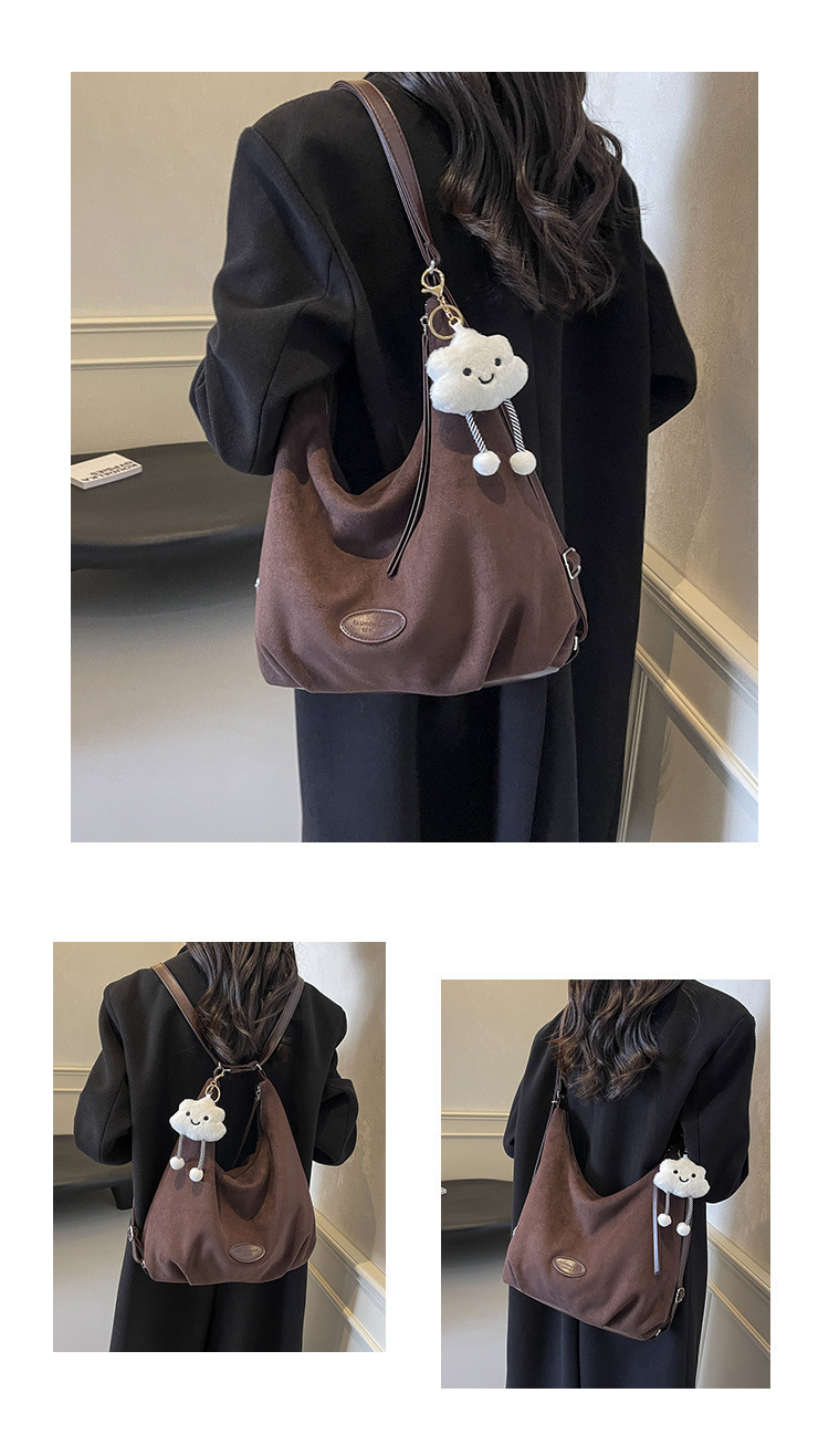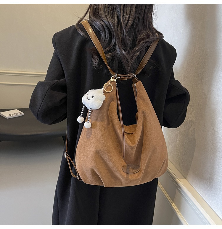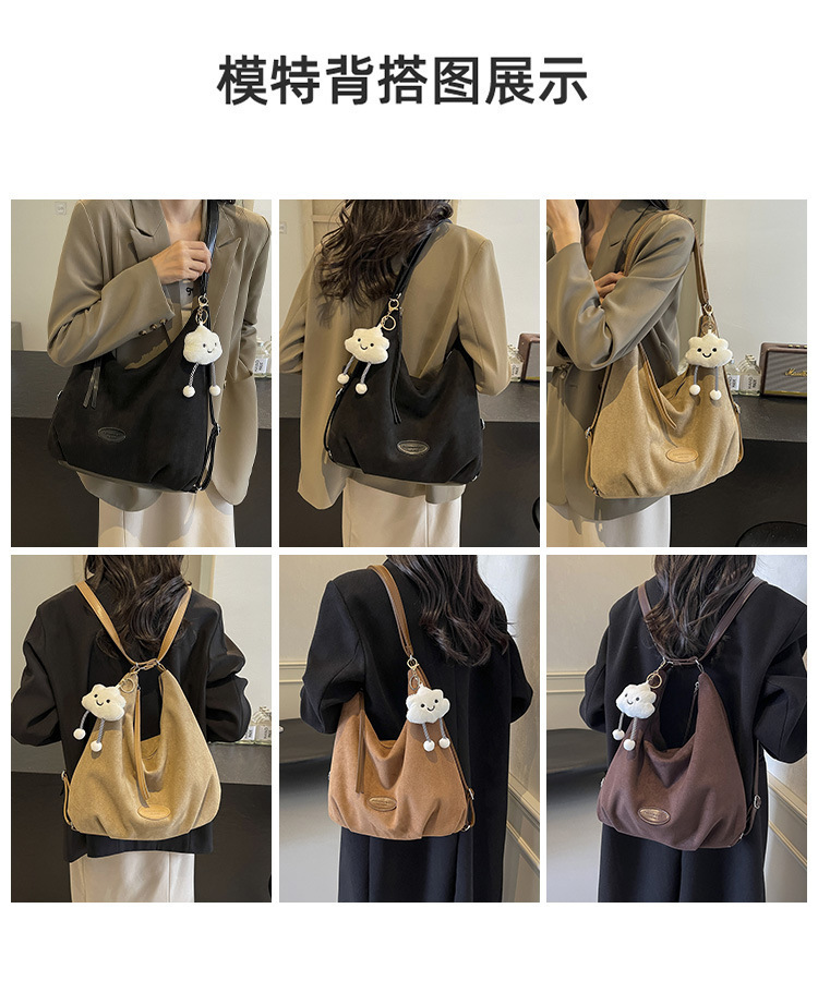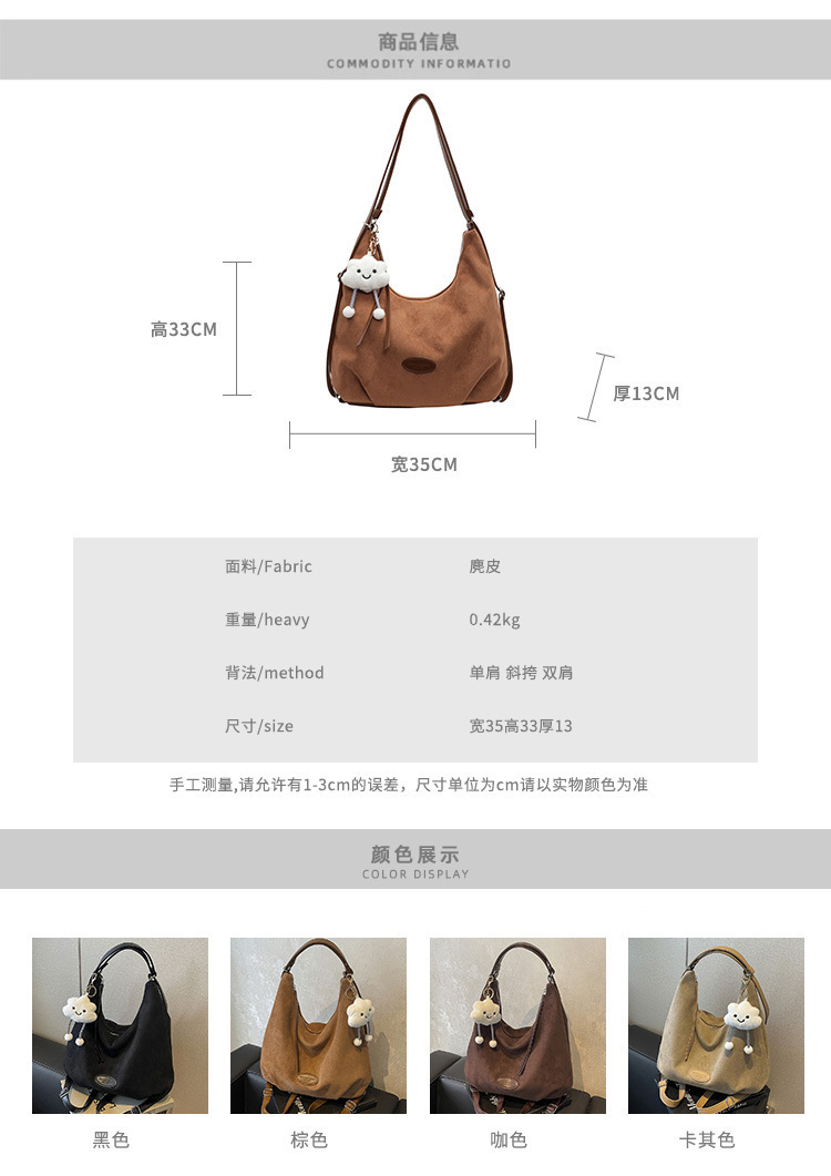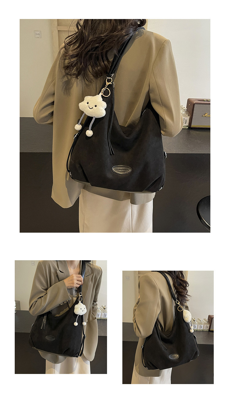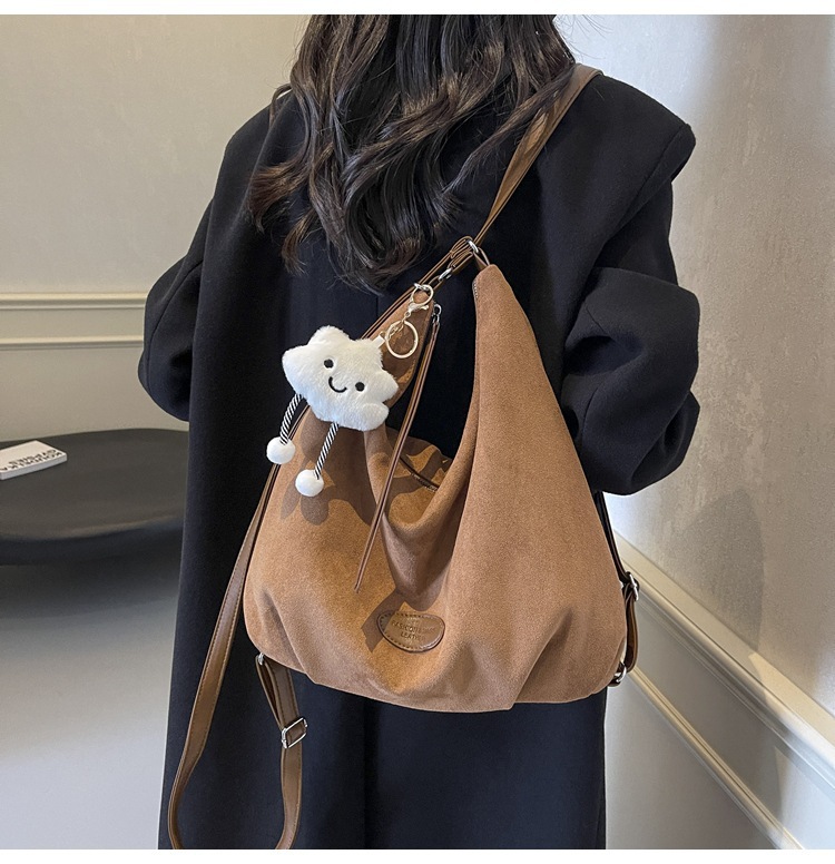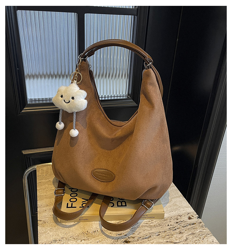 패션 접힌 가방 여성의 가을과 겨울 새로운 유행 대용량 어깨 가방 2024 질감 더블 어깨 스웨이드 유행 펜던트
