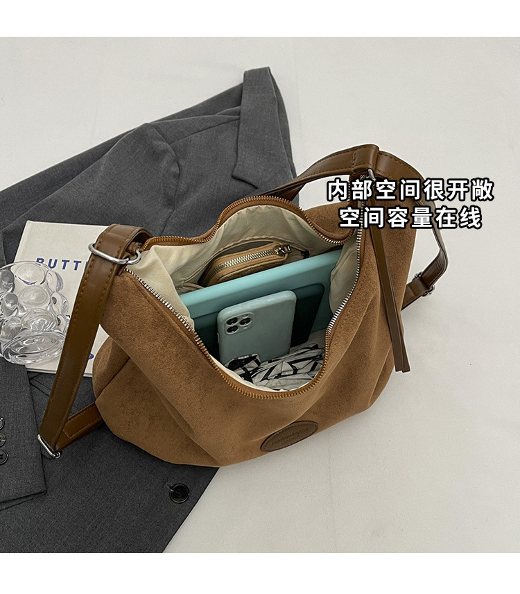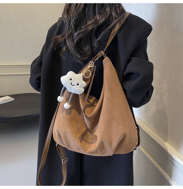 패션 접힌 가방 여성의 가을과 겨울 새로운 유행 대용량 어깨 가방 2024 질감 더블 어깨 스웨이드 유행 펜던트스토어 가기