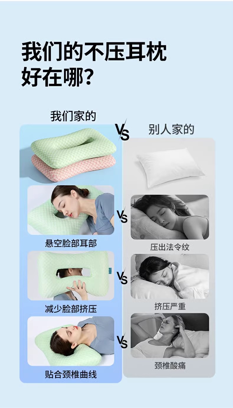 뷰티 베개는 귀를 누르지 않습니다 깊은 수면 불면증 성인 특별 반 측면 수면 베개 반 법률 라인은 얼굴을 누르지 않습니다스토어 가기
