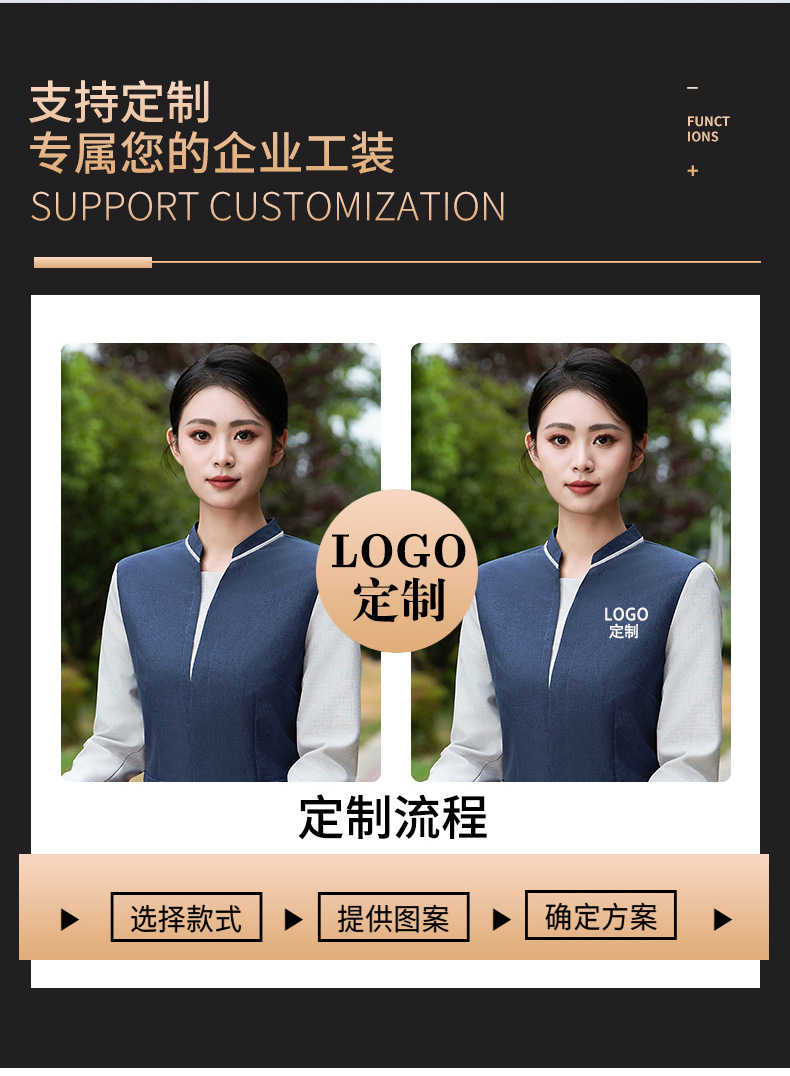 餐厅服务员工作服长袖马甲酒店饭店餐饮烘焙蛋糕奶茶店秋冬茶楼女