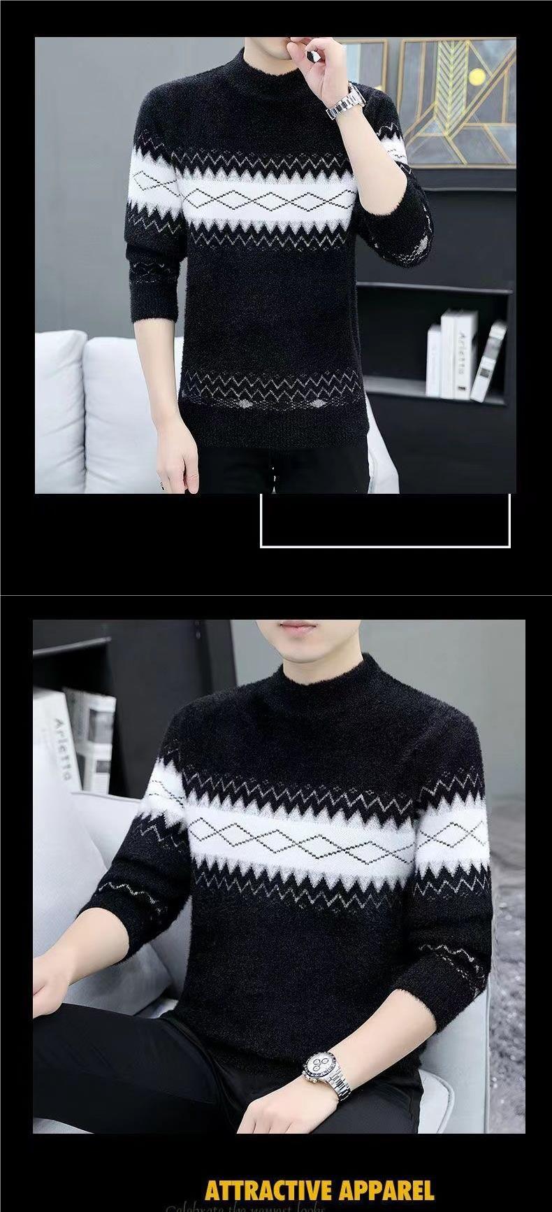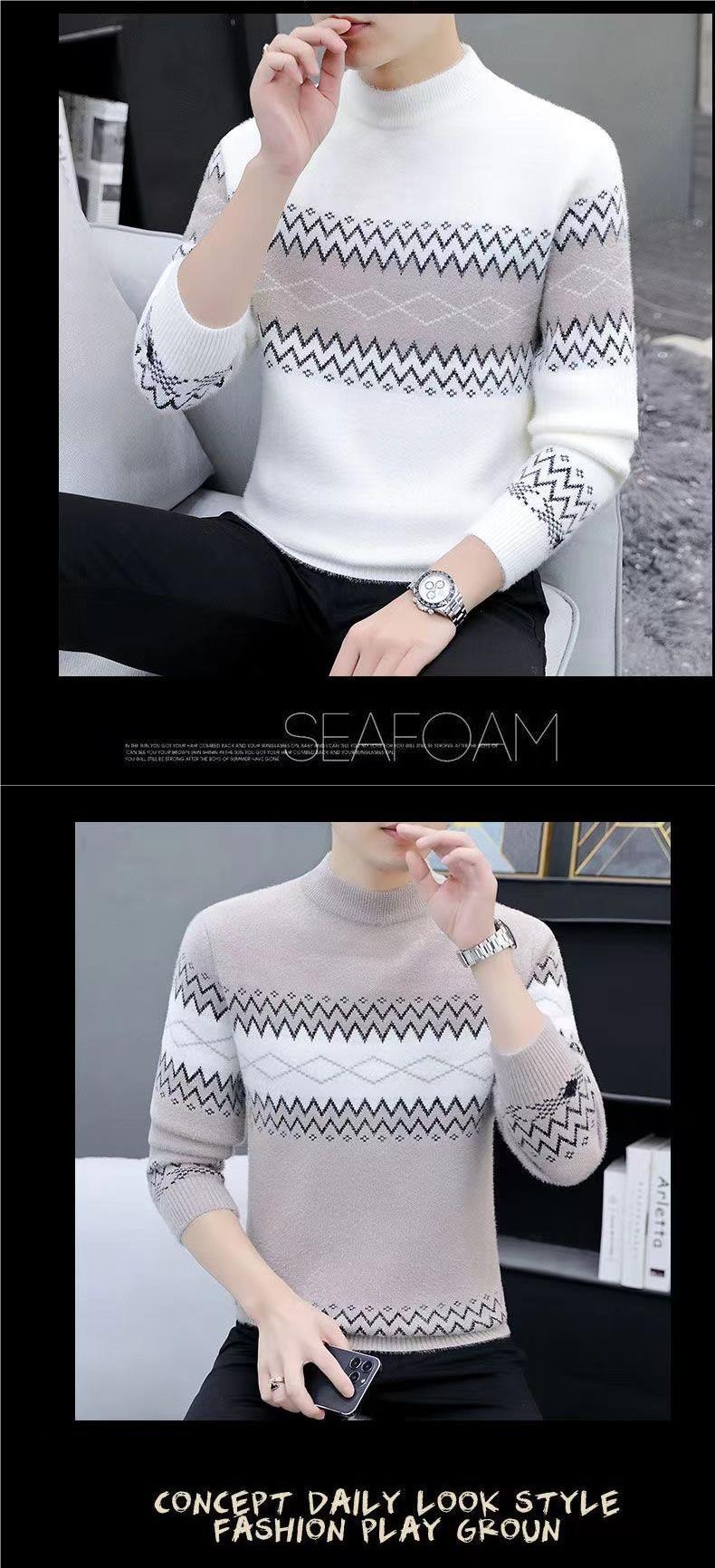 대조 컬러 스트라이프 스웨터 남성 가을과 겨울 2024 새로운 라운드 넥 스웨터 남성베이스 셔츠 두꺼운 따뜻한 스웨터스토어 가기