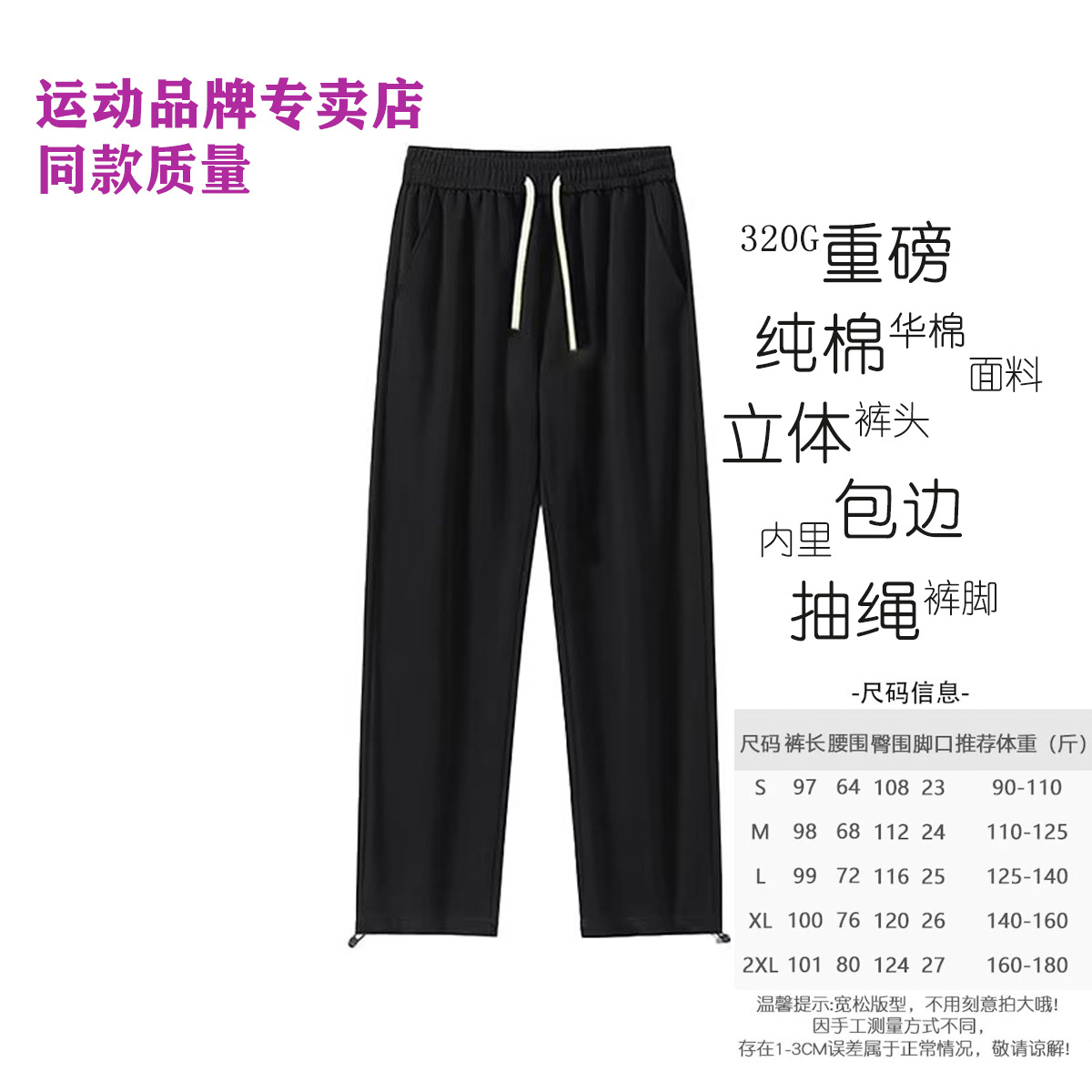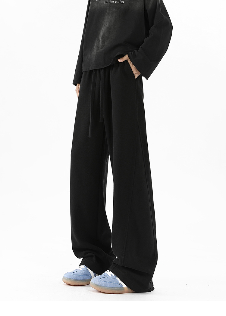 • 검정색 두꺼운 헤비웨이트 순면 화면 와이드 트레이닝 팬츠