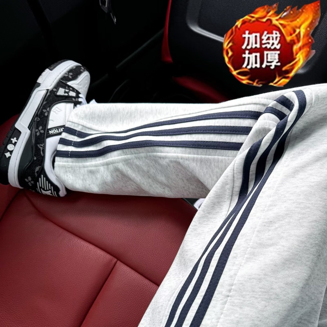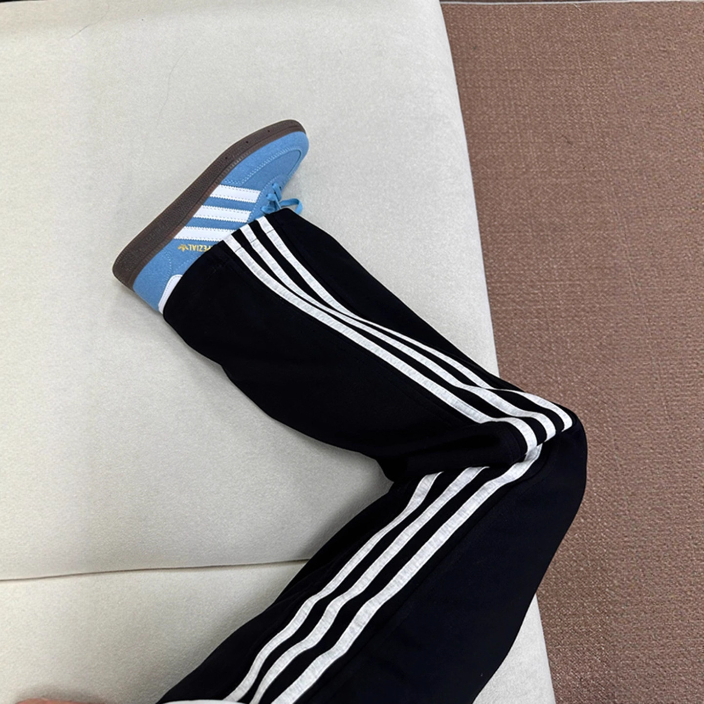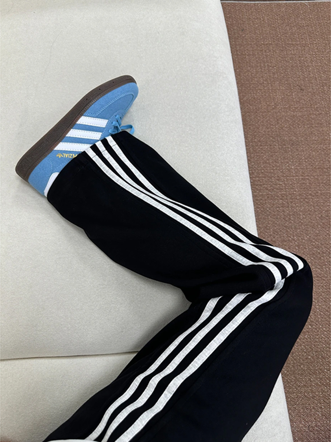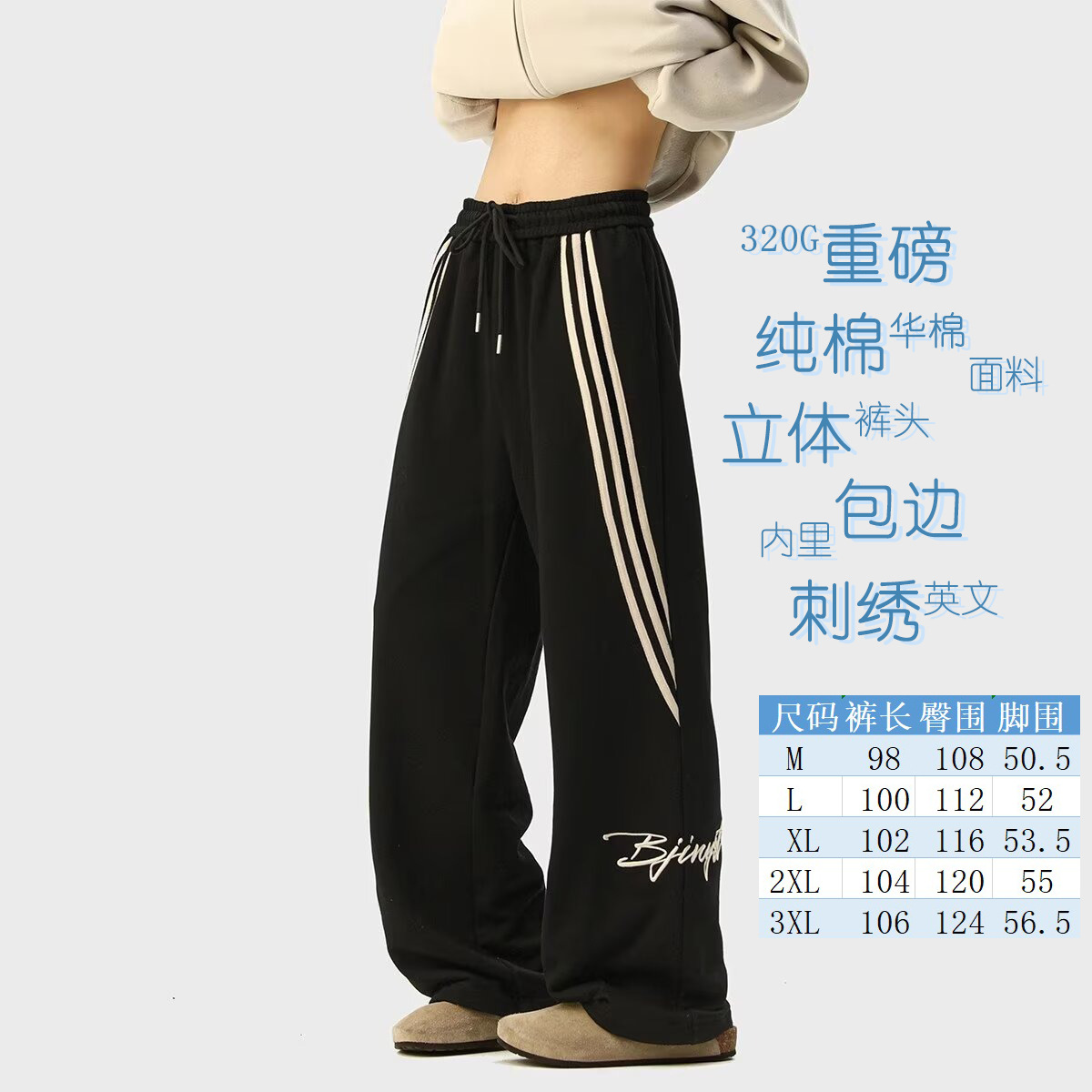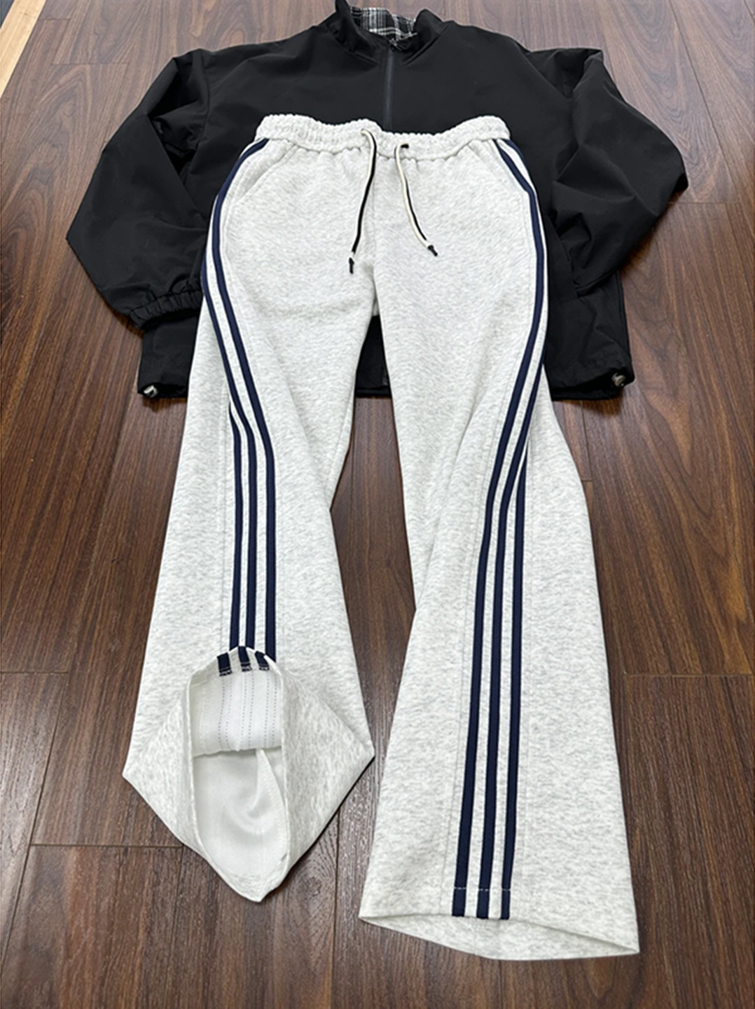• 검정색 두꺼운 헤비웨이트 순면 자수 사선 스트라이프 트레이닝 팬츠