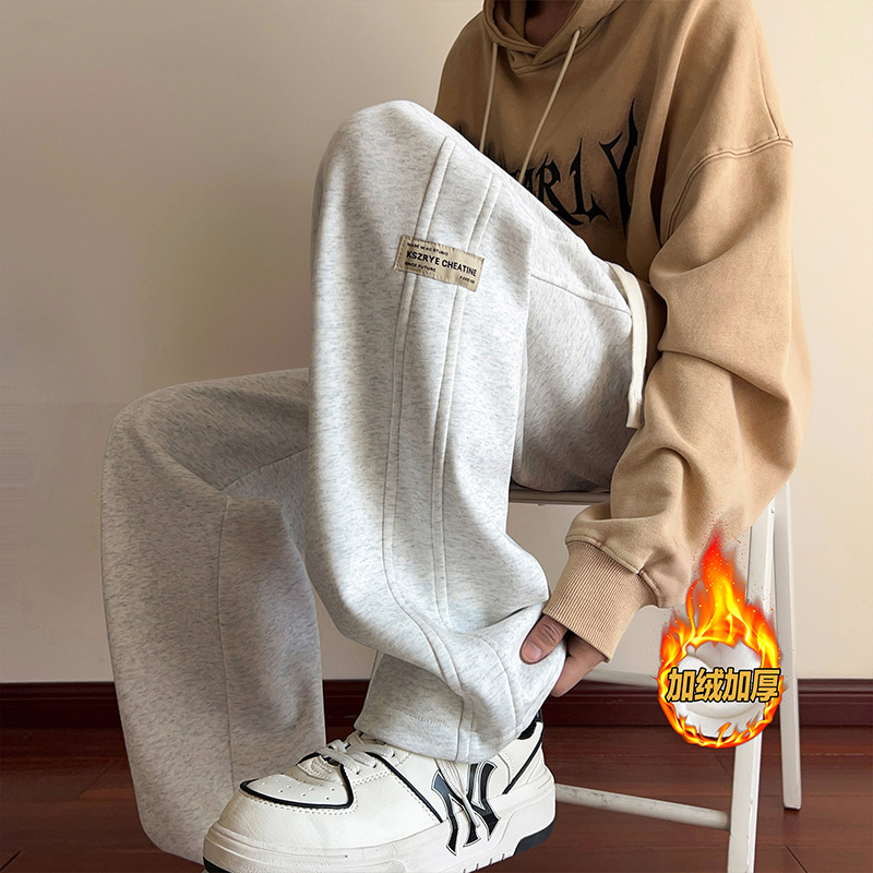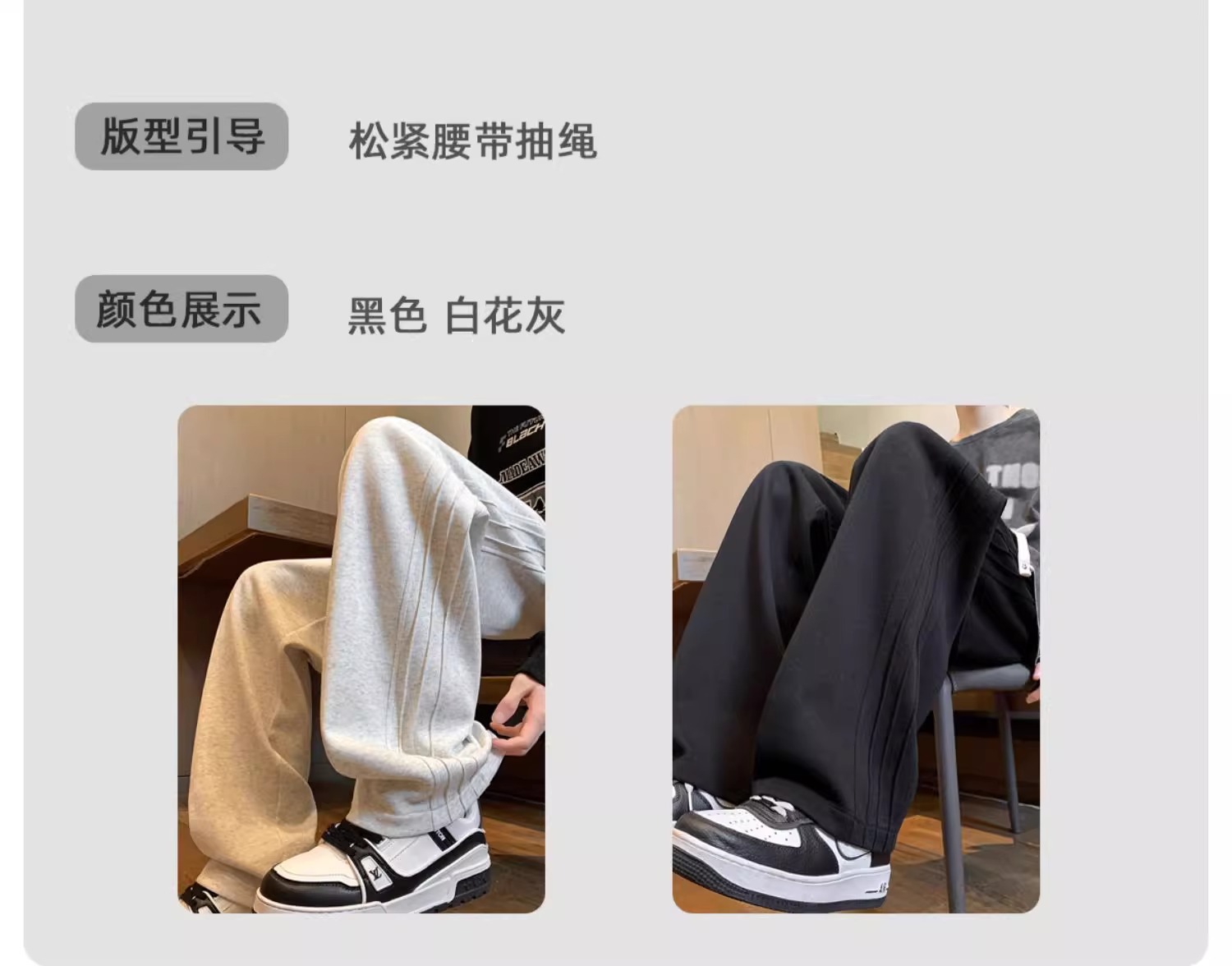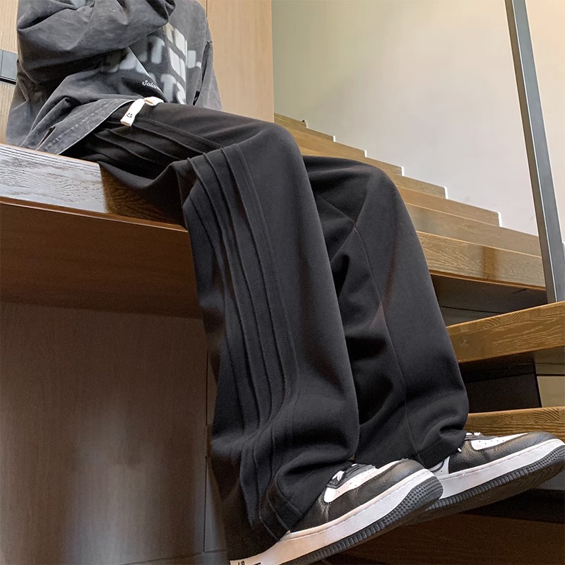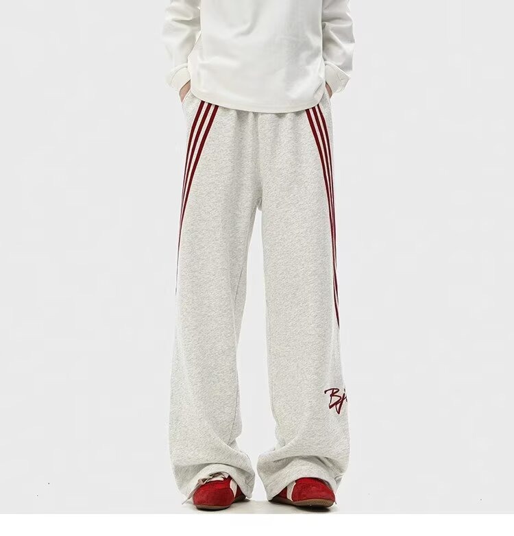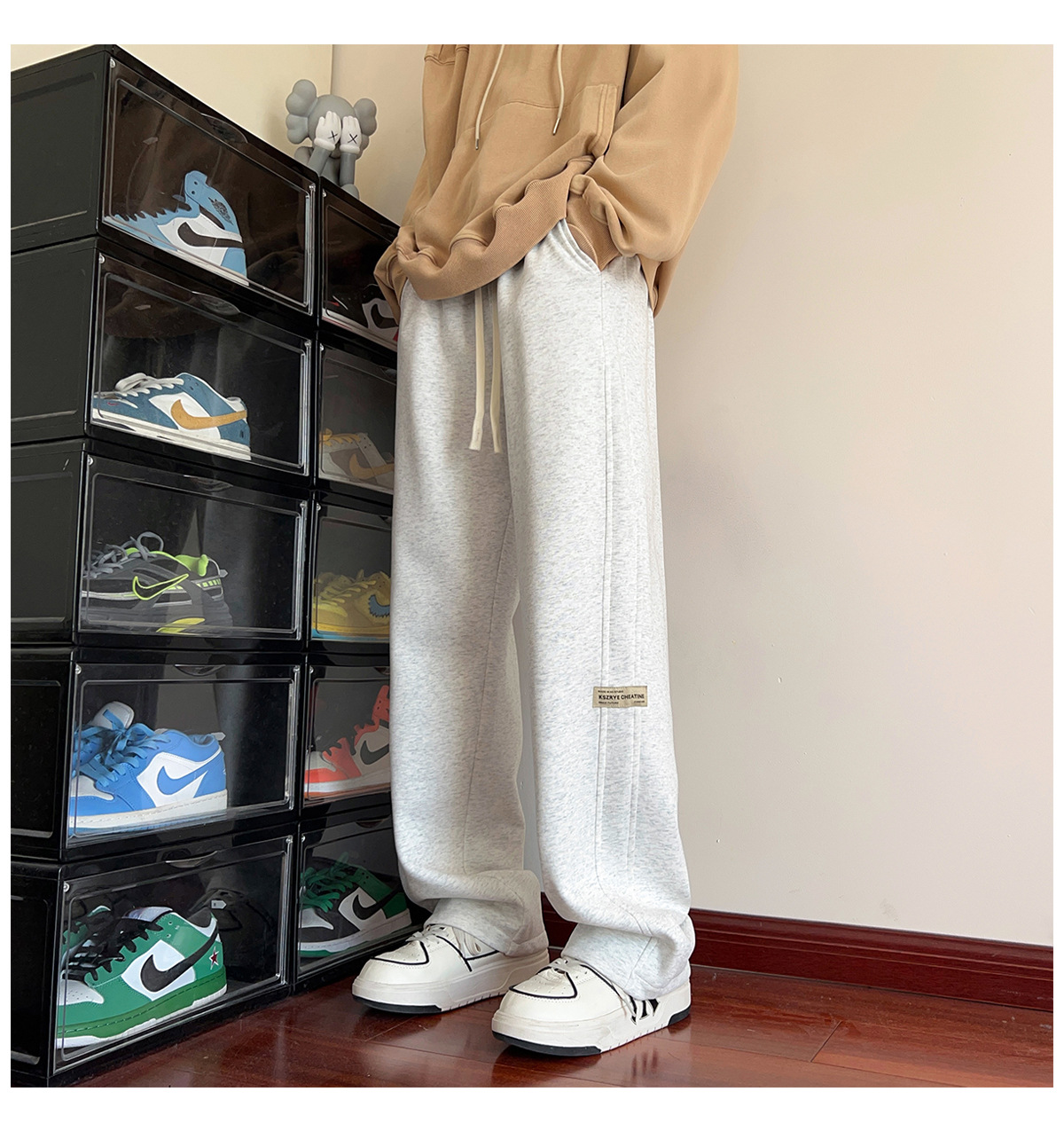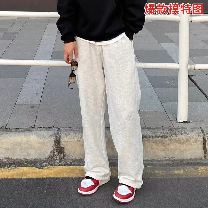봄철 남성용 헤비웨이트 루즈한 스포츠 팬츠, 아메리칸 레트로 그레이 와이드 팬츠, 청소년 드레이피 캐주얼 팬츠, 트렌디스토어 가기