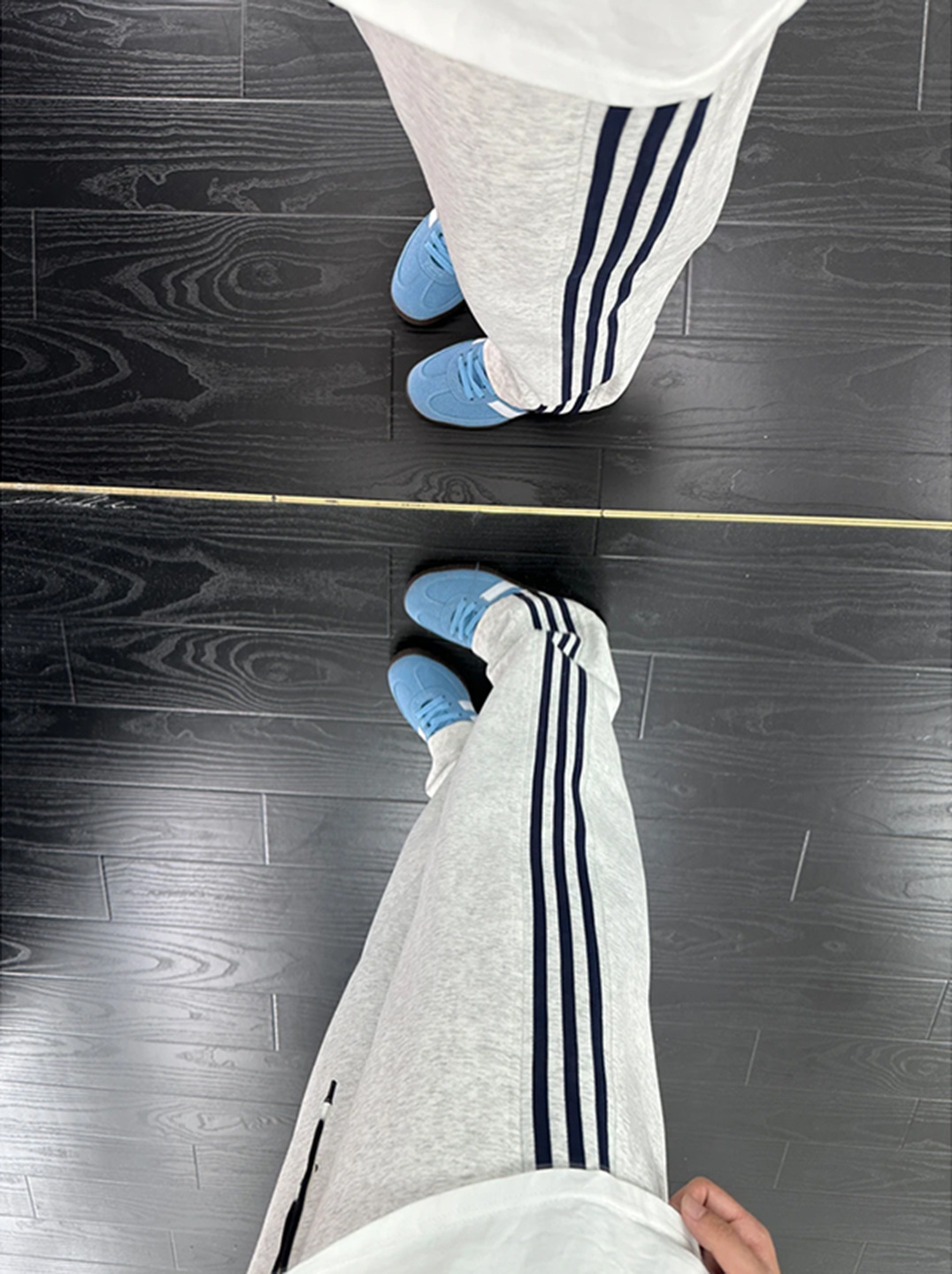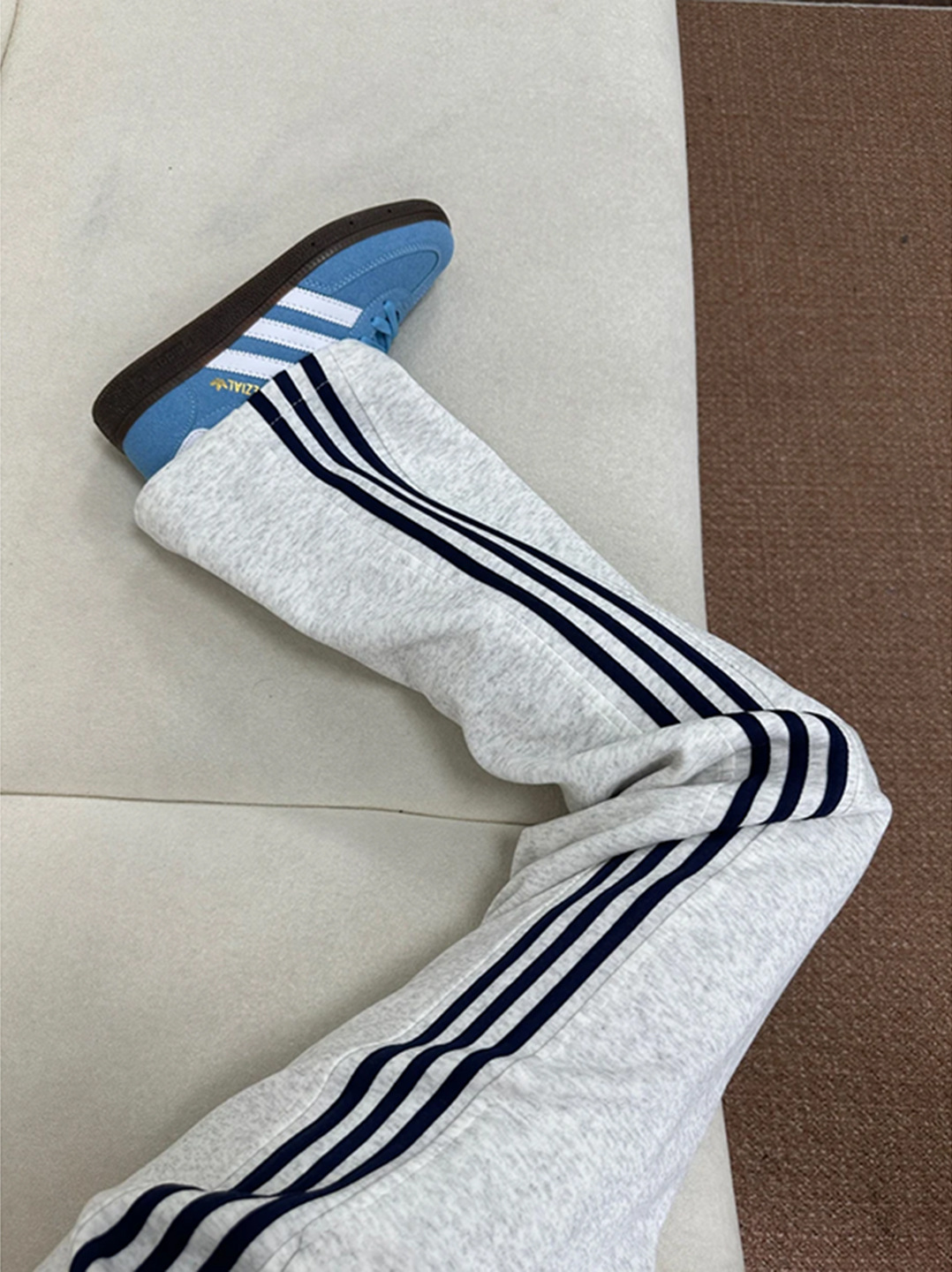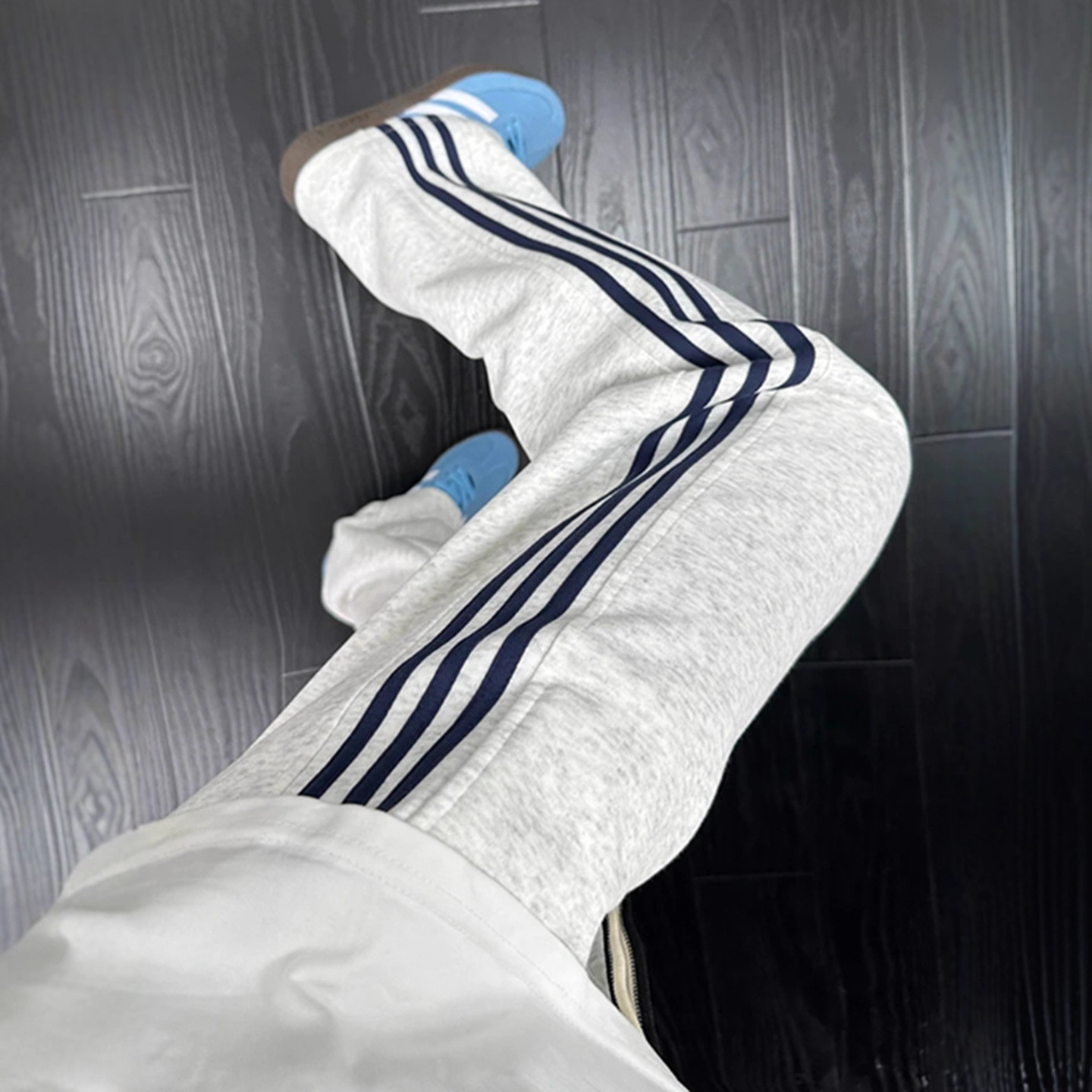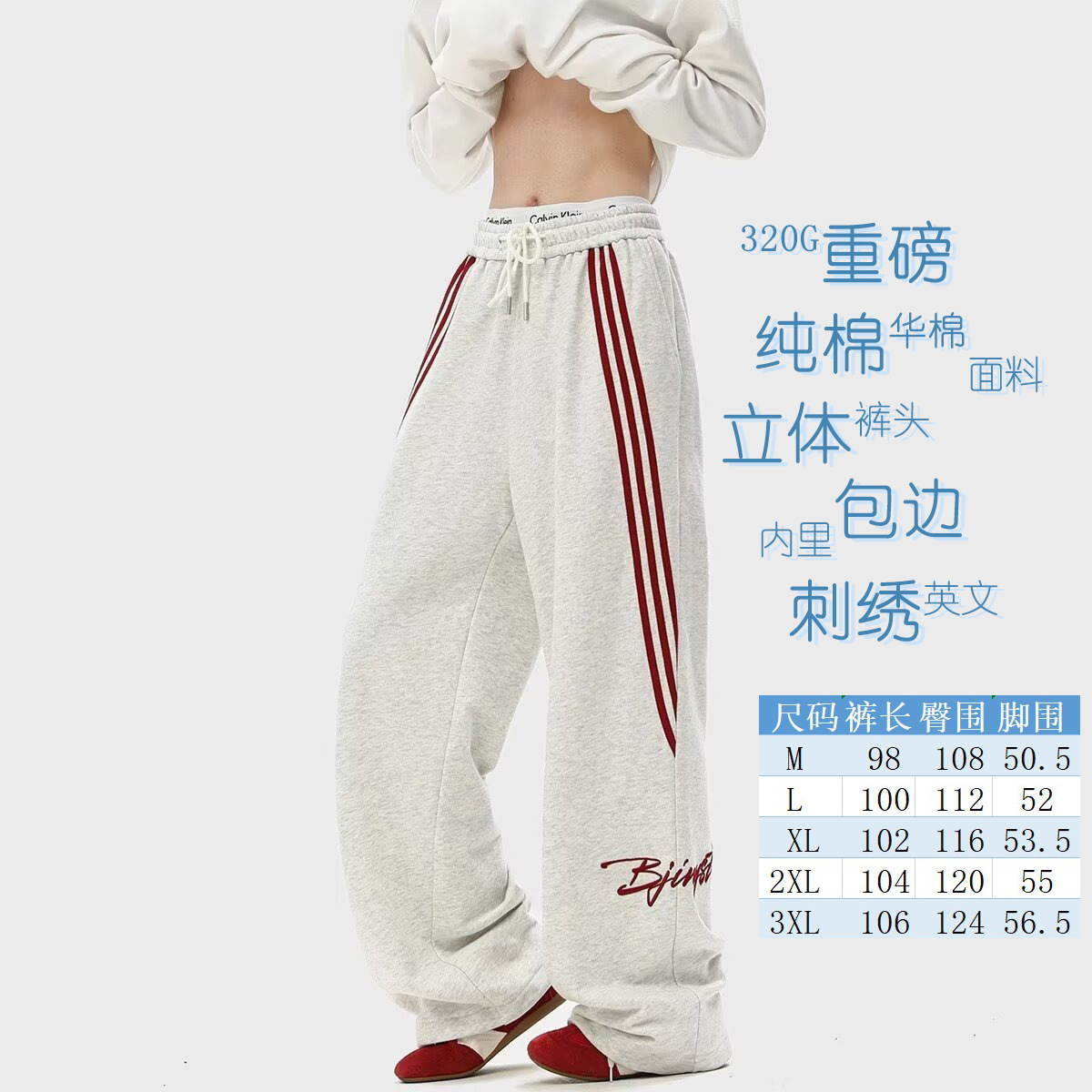 • 화이트 플라워 그레이 두꺼운 헤비웨이트 순면 중국면 자수 대각선 스트라이프 스웨트팬츠