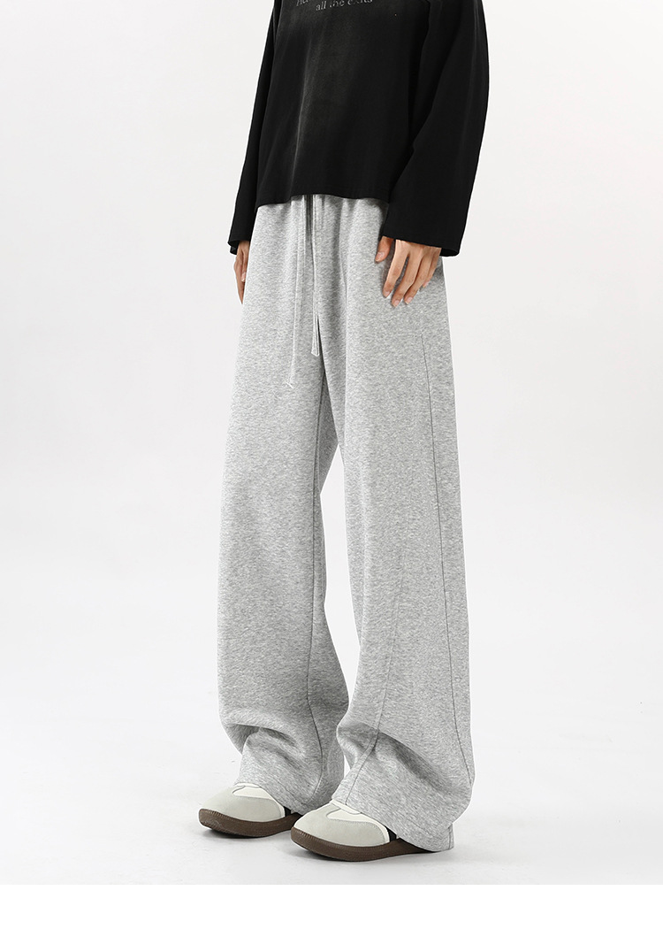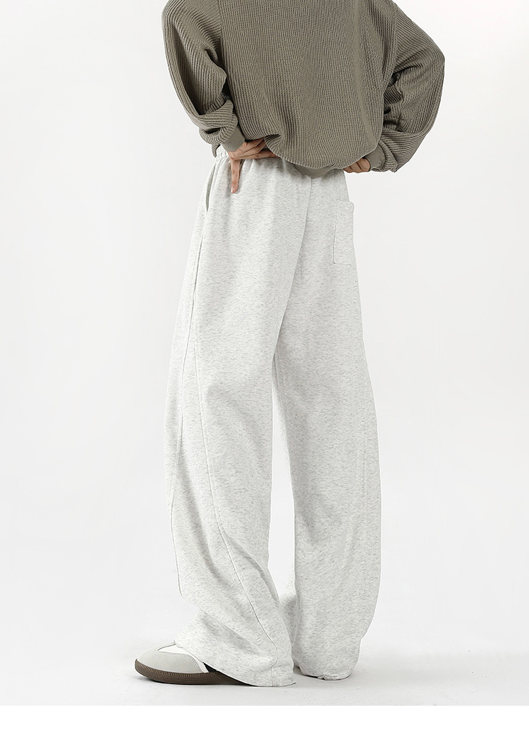 • 흰색 꽃 회색 두꺼운 무거운 순면 중국 면 와이드 튜브 스웨트팬츠