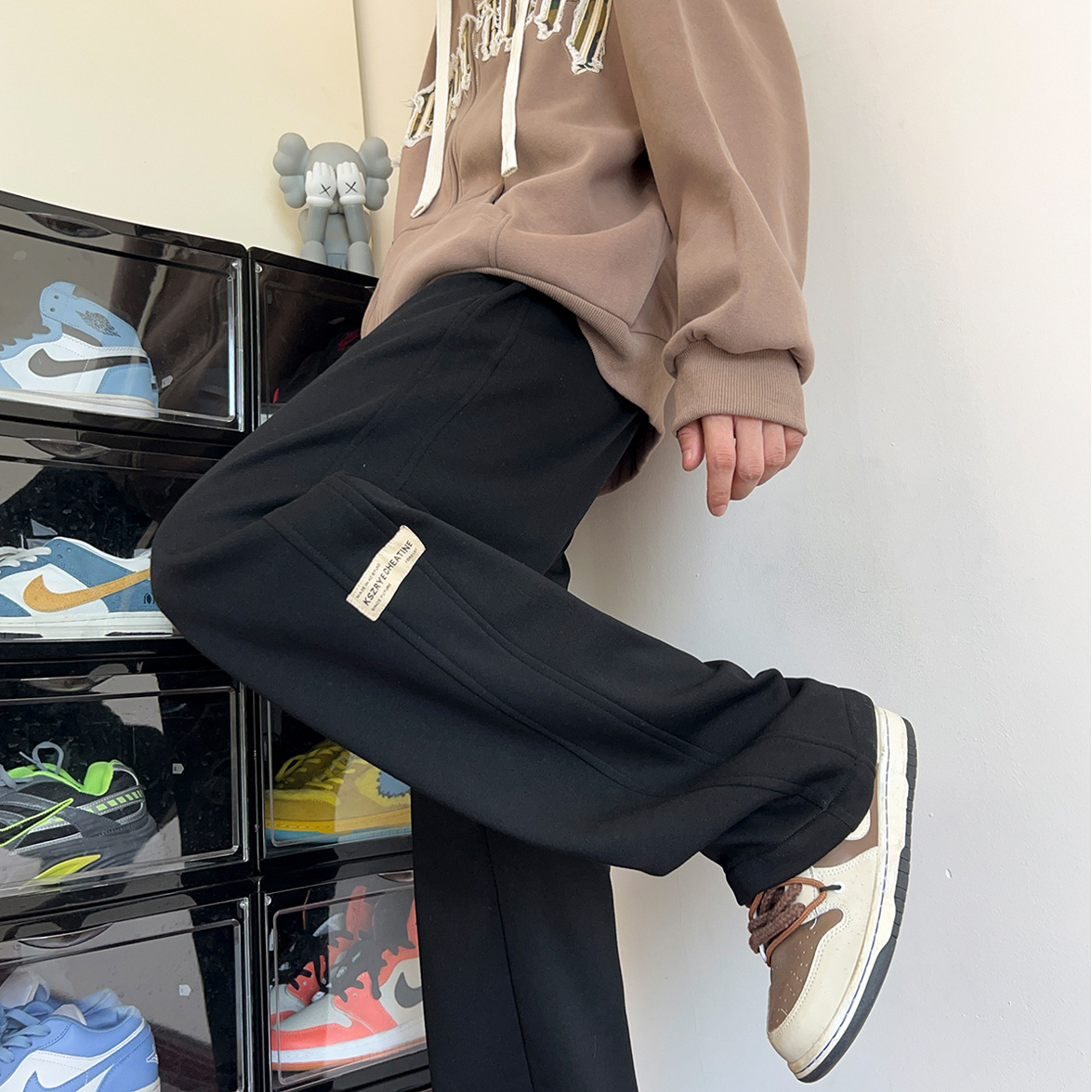 • 블랙 플러스 벨벳-Huamian 라벨 스트레이트 스웨트팬츠