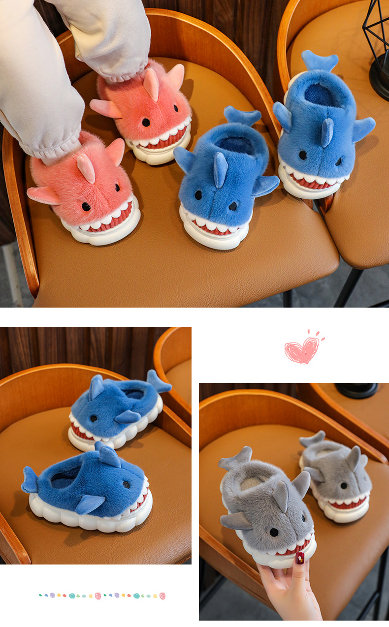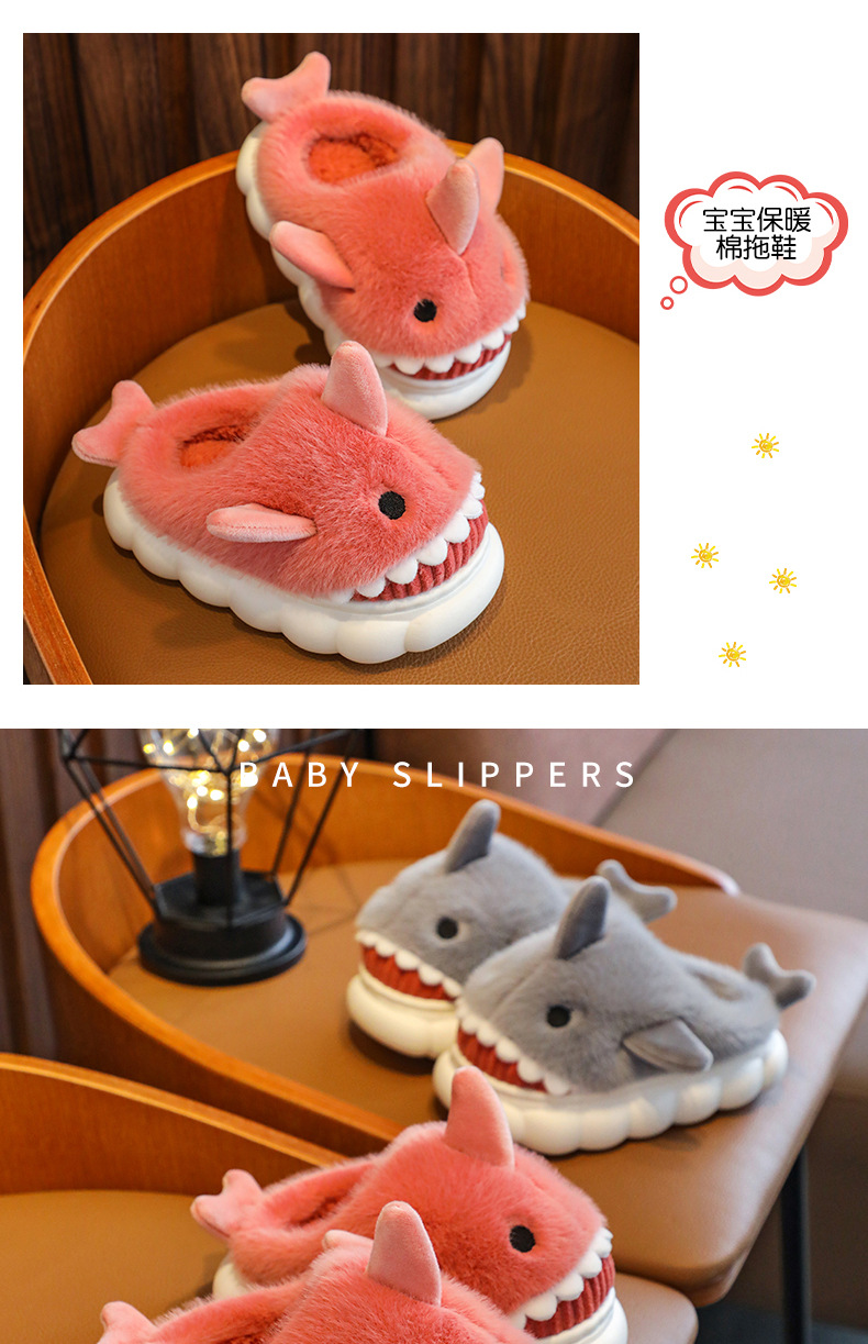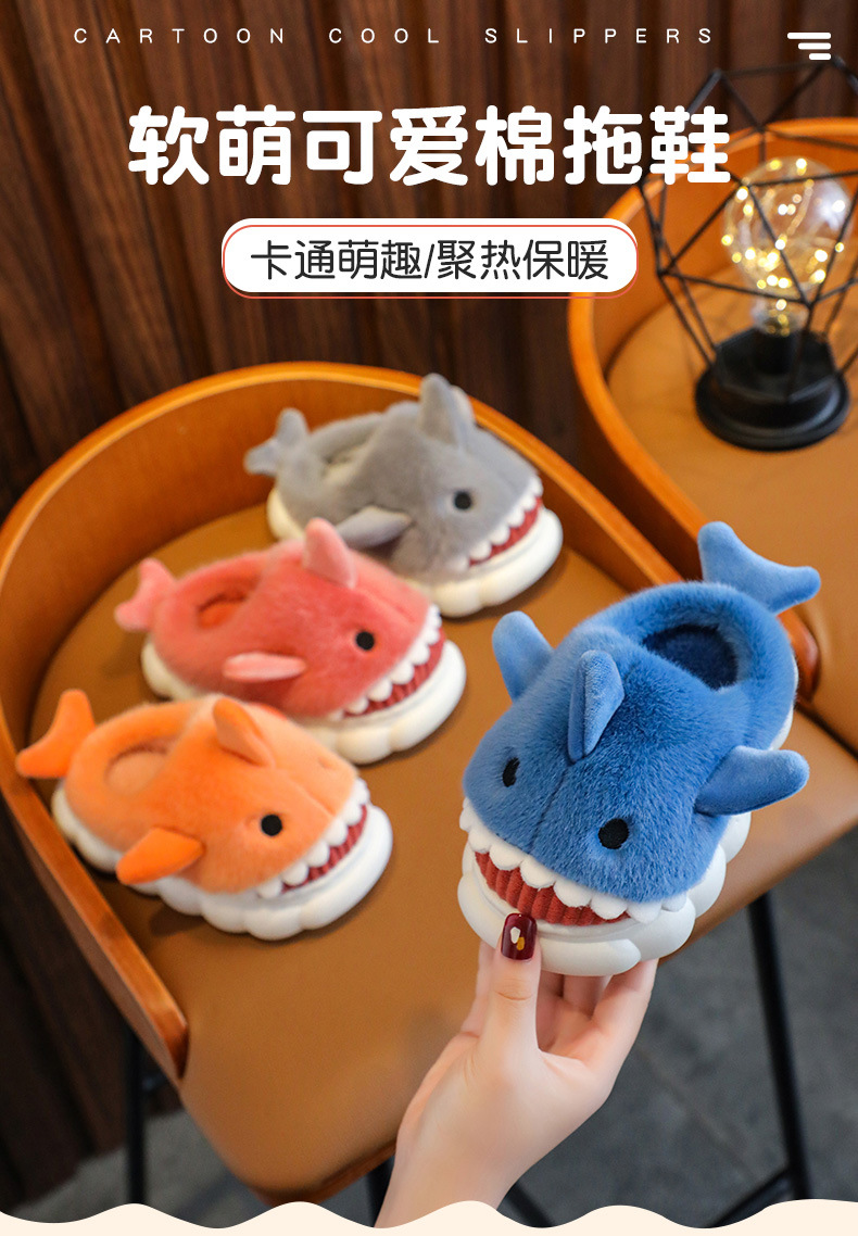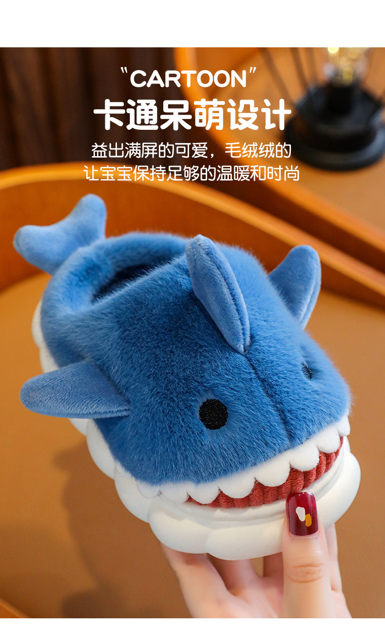 어린이 면 슬리퍼 가을과 겨울 따뜻한 집 실내 미끄럼 방지 소년 귀여운 상어 아기 어린이 기모 면 슬리퍼스토어 가기