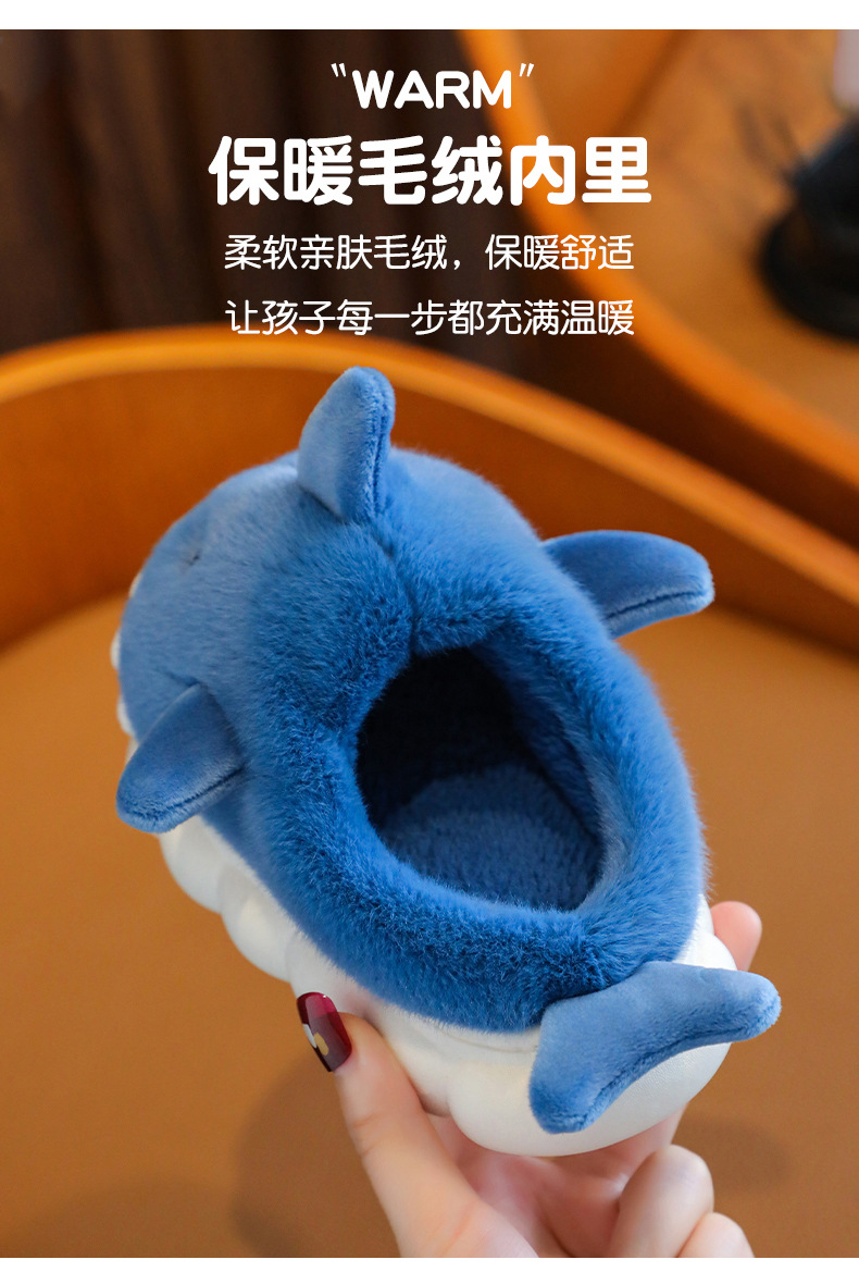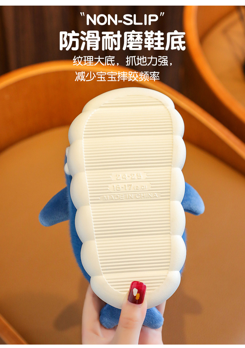 어린이 면 슬리퍼 가을과 겨울 따뜻한 집 실내 미끄럼 방지 소년 귀여운 상어 아기 어린이 기모 면 슬리퍼