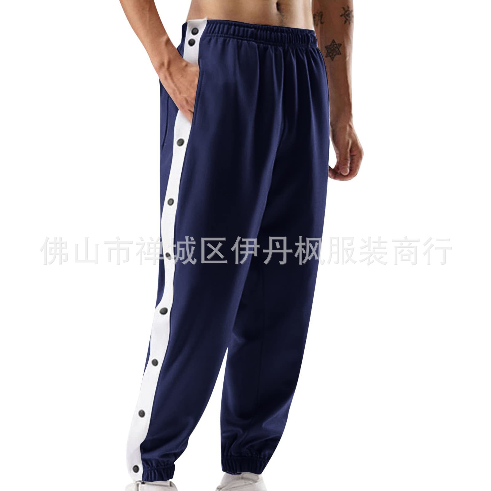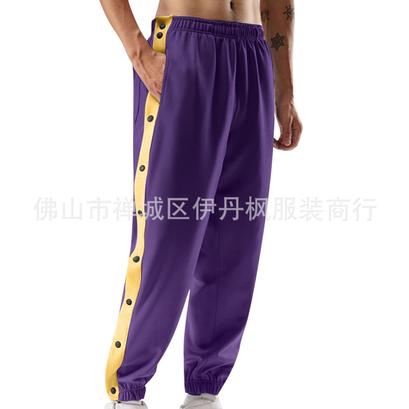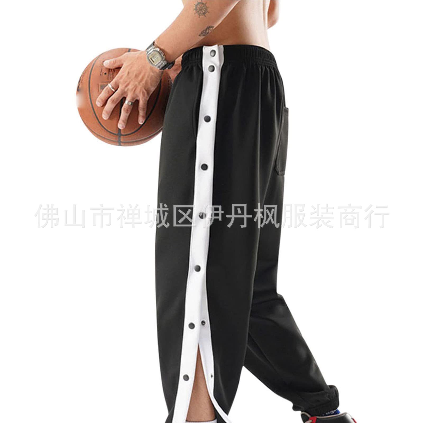 24 가을/겨울 국경 스포츠 바지 남자 농구 훈련 풀 브레스트 바지 느슨한 플러스 사이즈 바지 사이드 버튼 바지