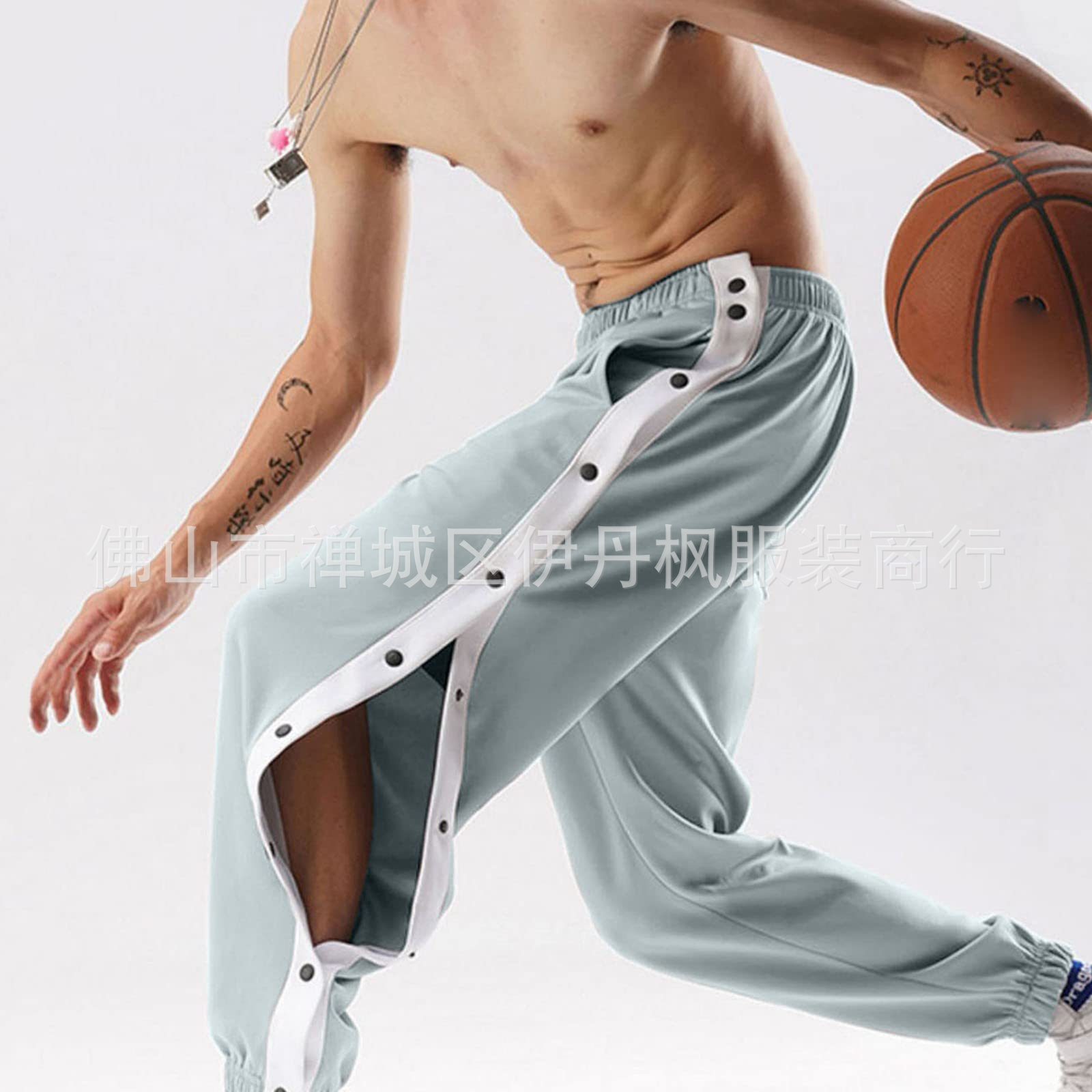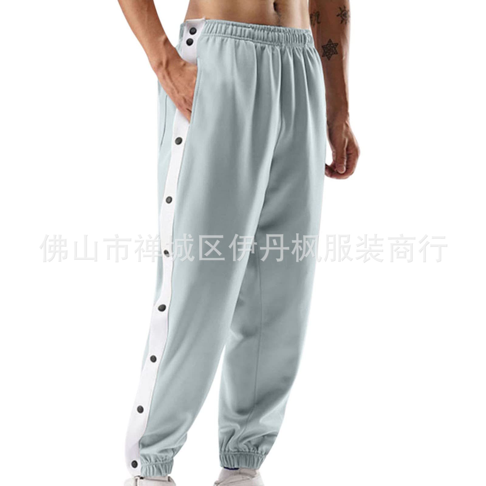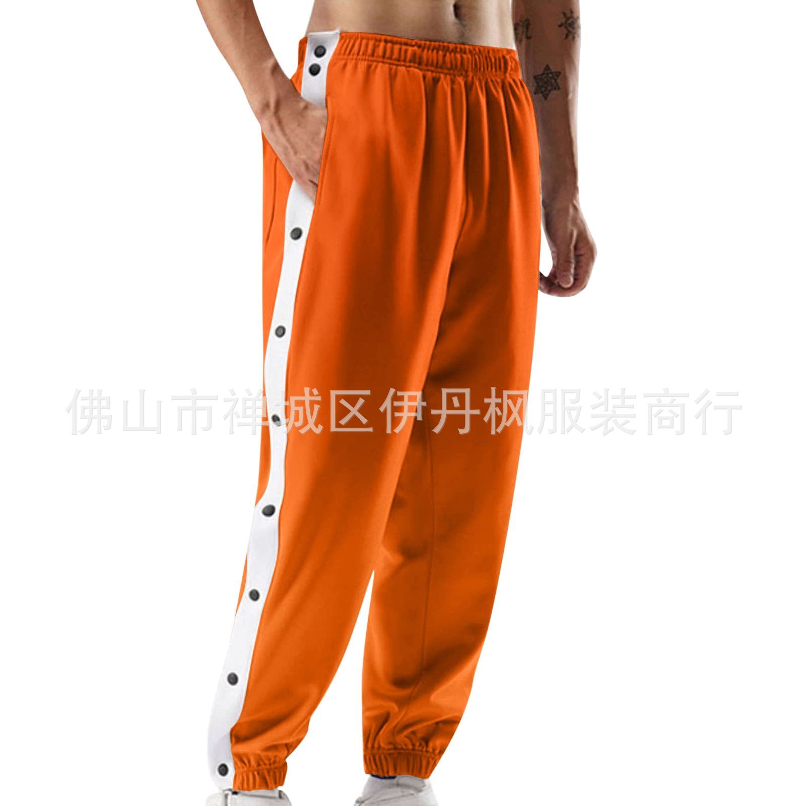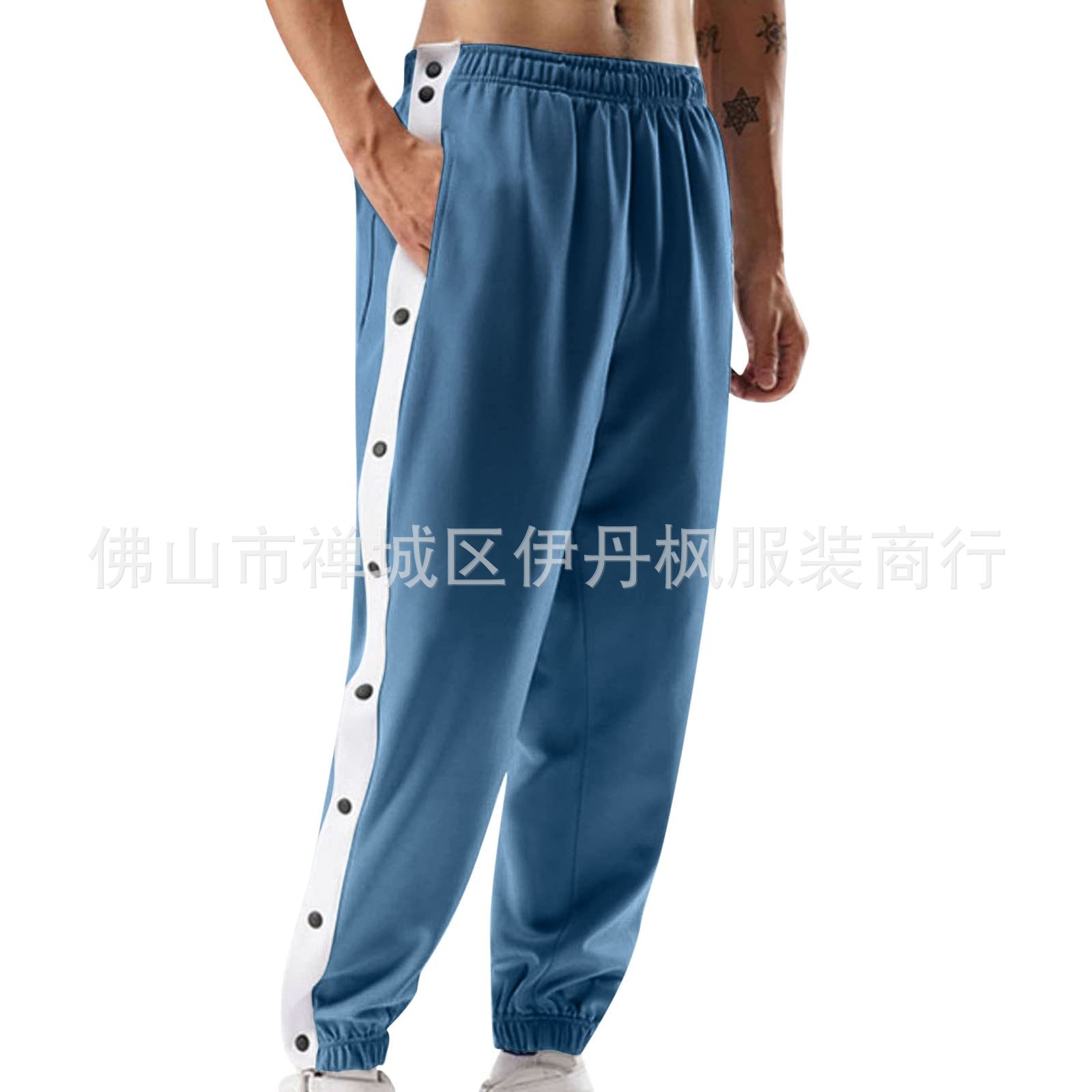 24 가을/겨울 국경 스포츠 바지 남자 농구 훈련 풀 브레스트 바지 느슨한 플러스 사이즈 바지 사이드 버튼 바지