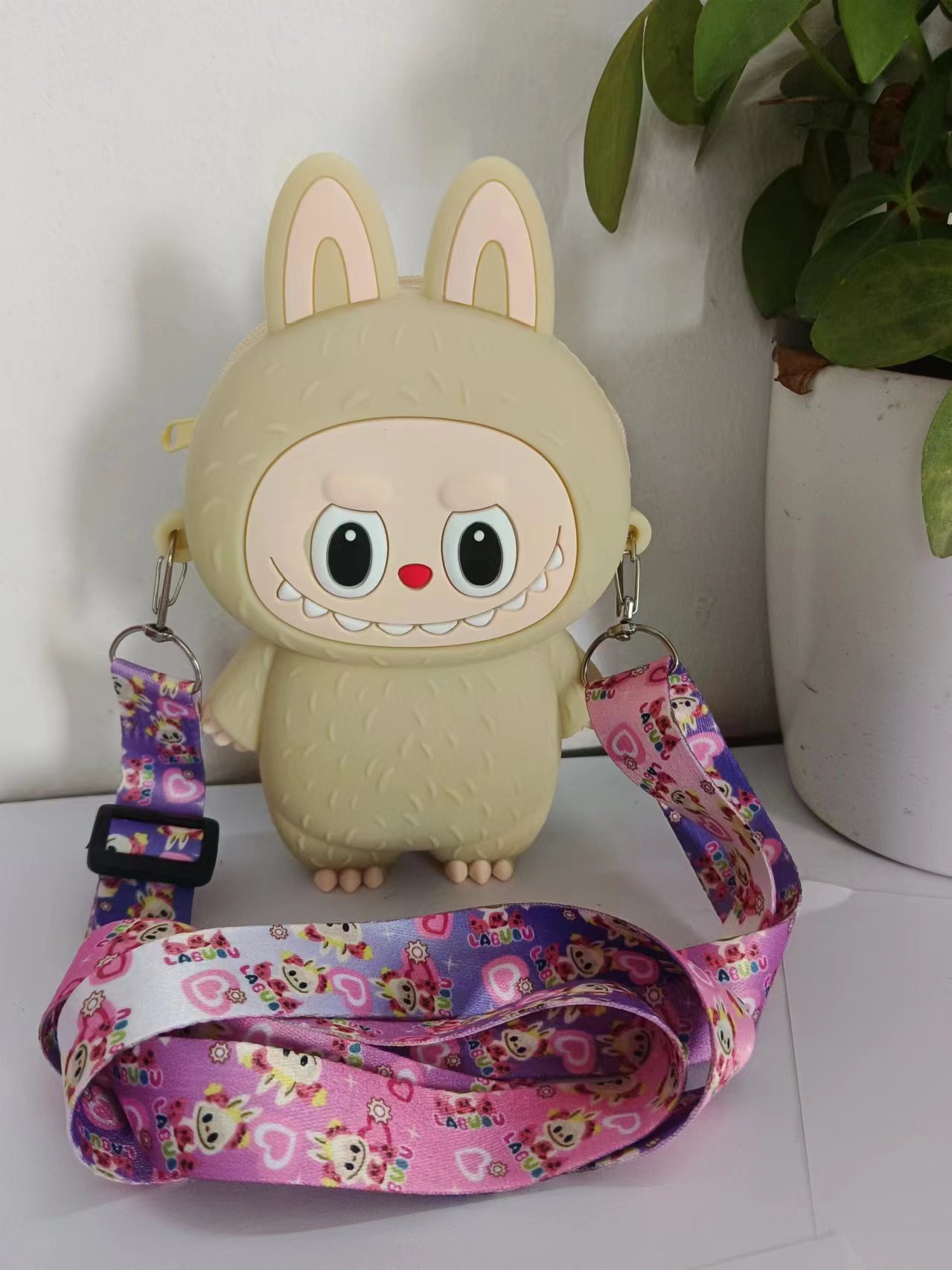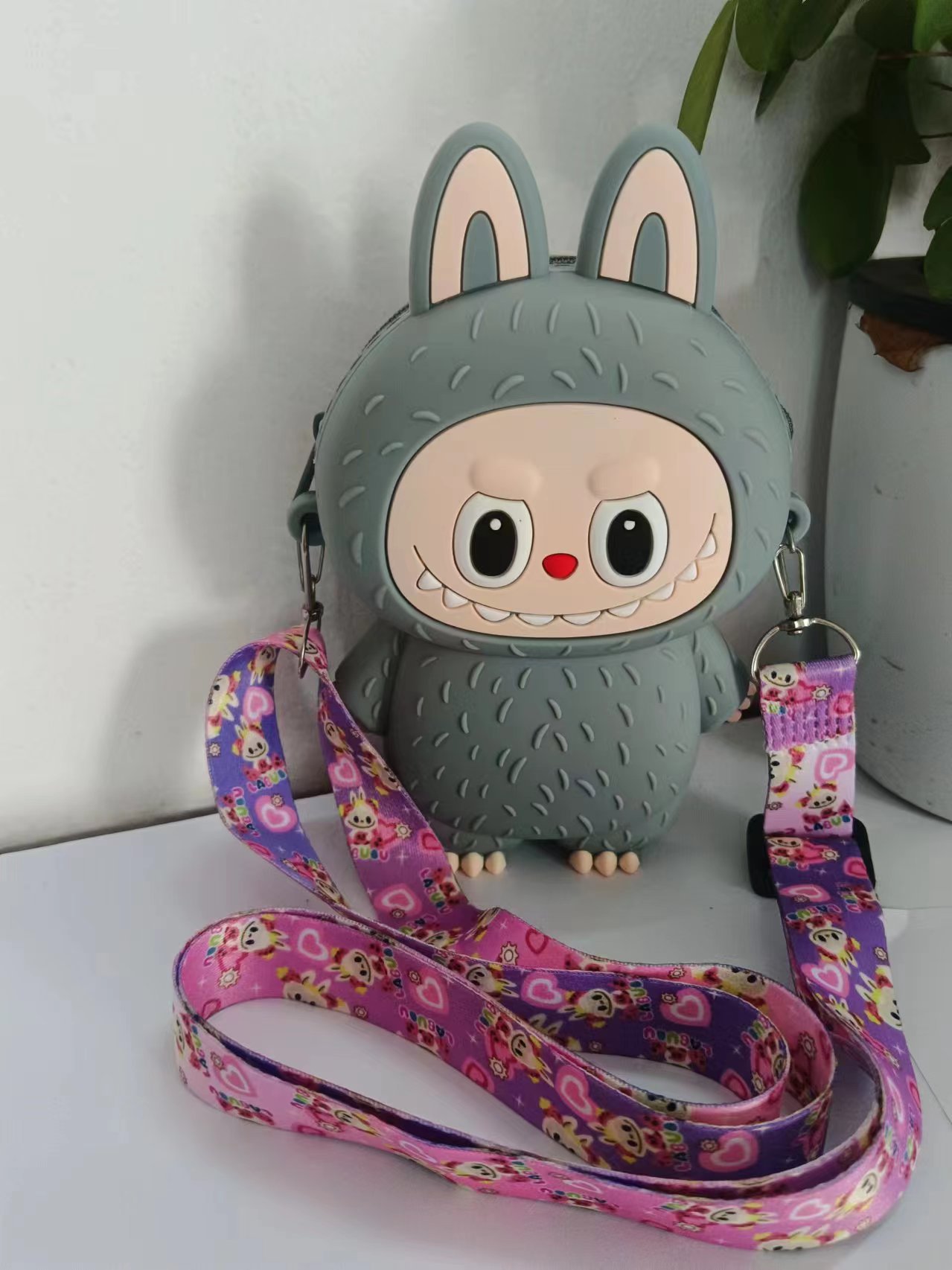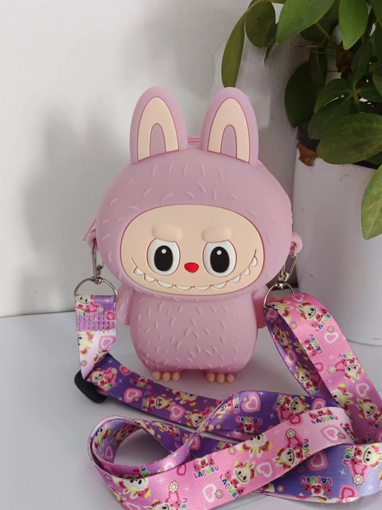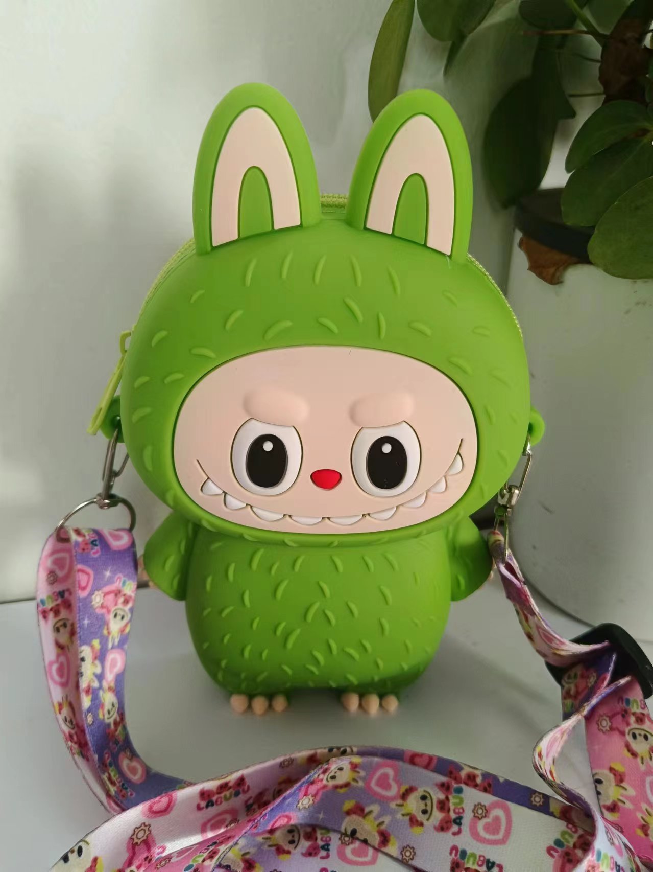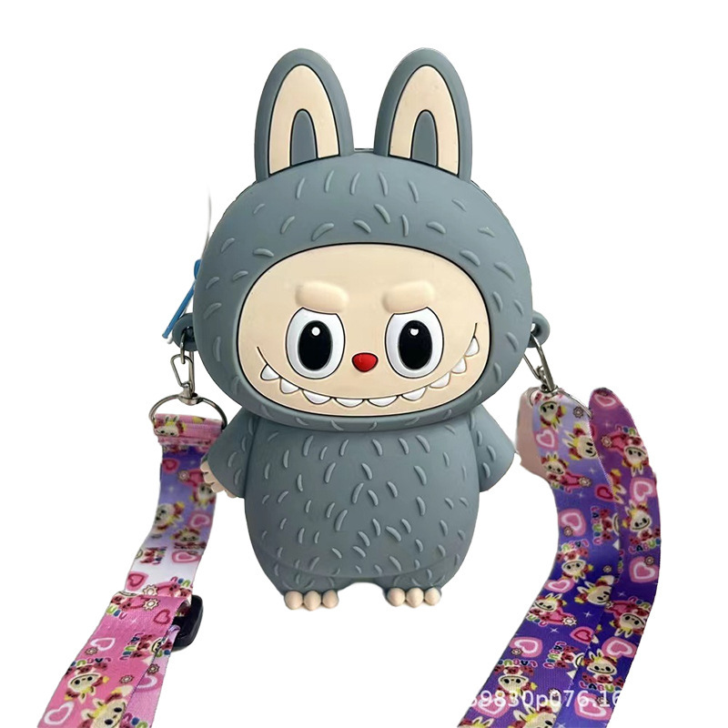 공장 직접 판매 광동 배송 비 웨이저우 품질 라부 루비 실리콘 동전 지갑 어린이 만화 야외 크로스 바디 백스토어 가기