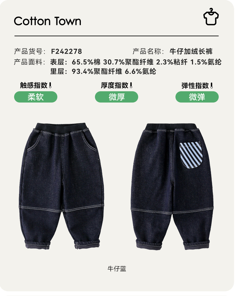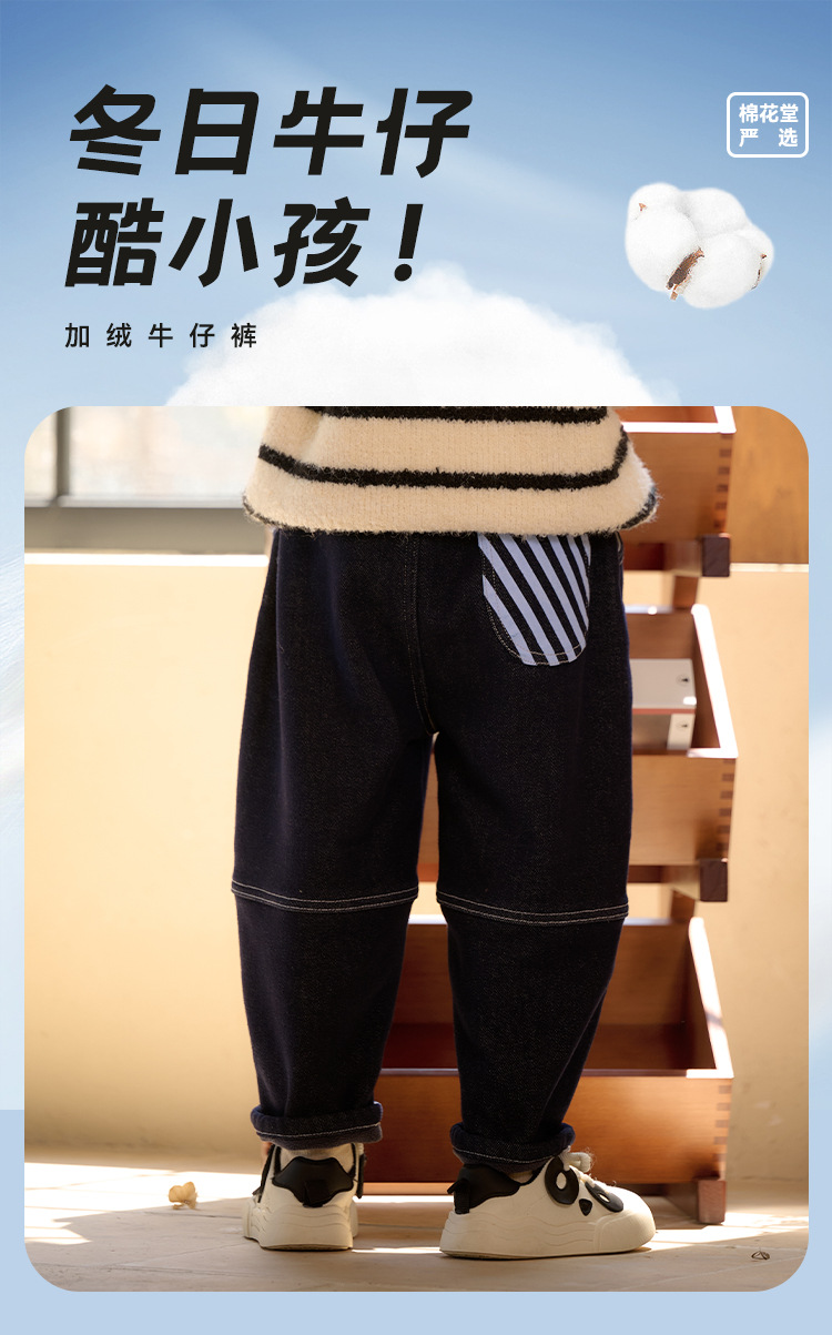 Mianhuatang 아동복 어린이 데님 바지 2024 가을과 겨울 새로운 아기 따뜻한 튜브 바지 어린이 캐시미어 바지스토어 가기