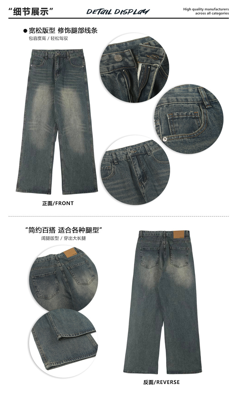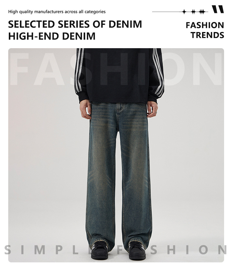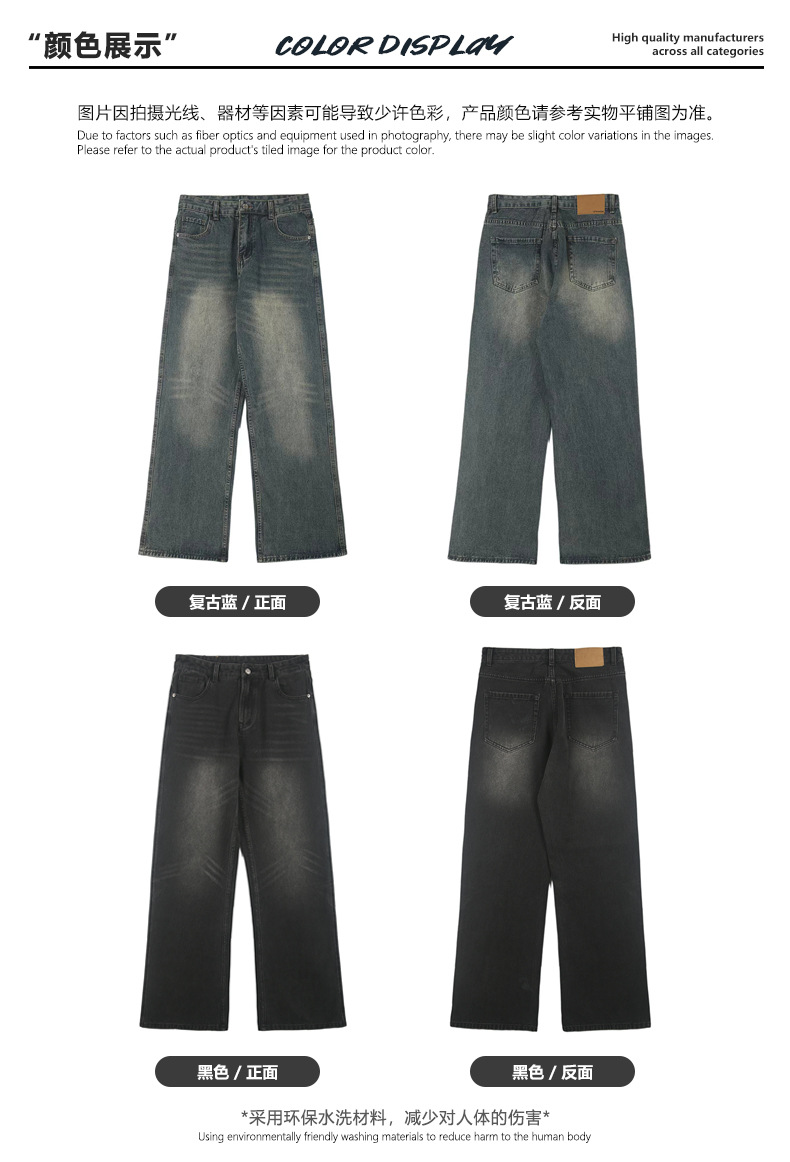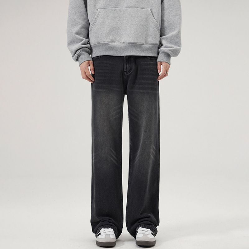 LKTM 남성복 가을 겨울 아메리칸 레트로 워싱 스트레이트 데님 팬츠 남성용 플러스 벨벳 두꺼운 루즈핏 따뜻한 긴바지스토어 가기