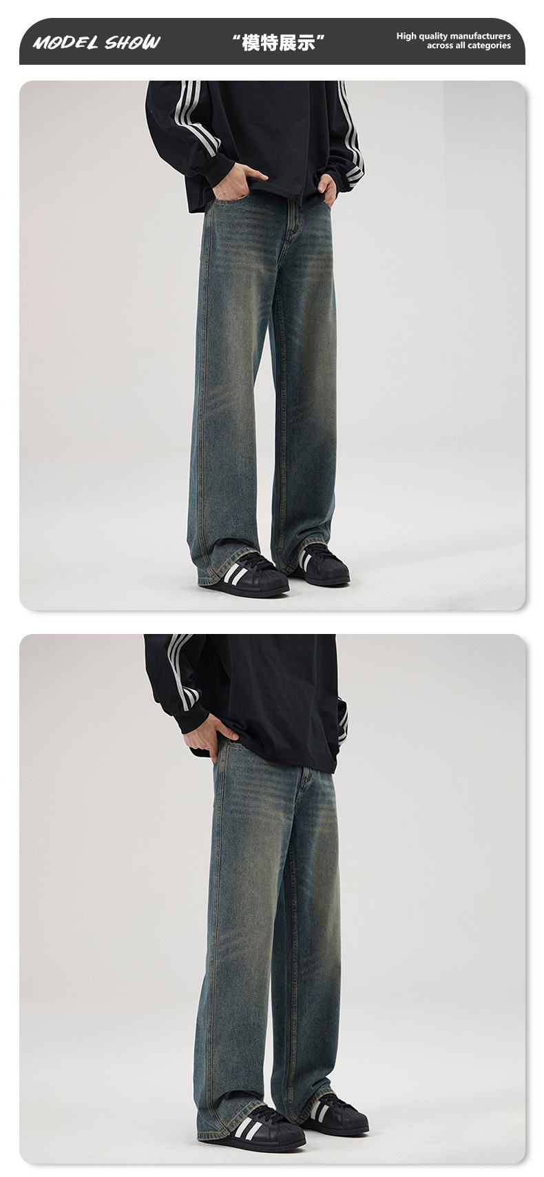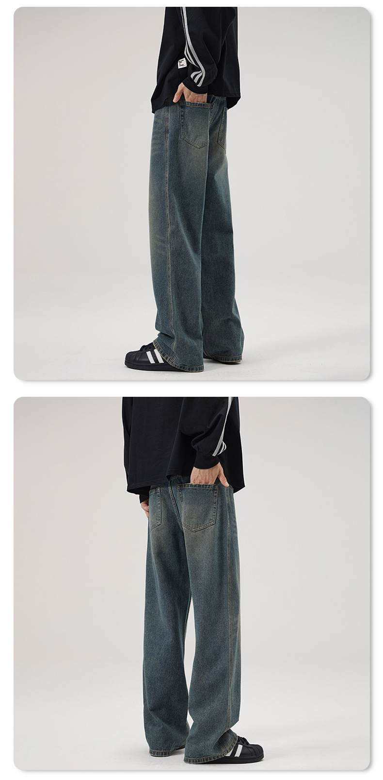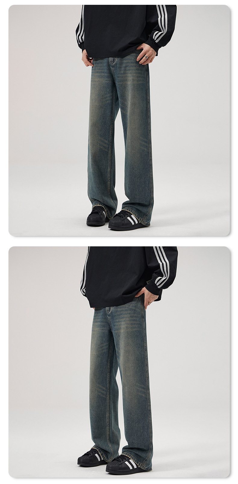 LKTM 남성복 가을 겨울 아메리칸 레트로 워싱 스트레이트 데님 팬츠 남성용 플러스 벨벳 두꺼운 루즈핏 따뜻한 긴바지스토어 가기