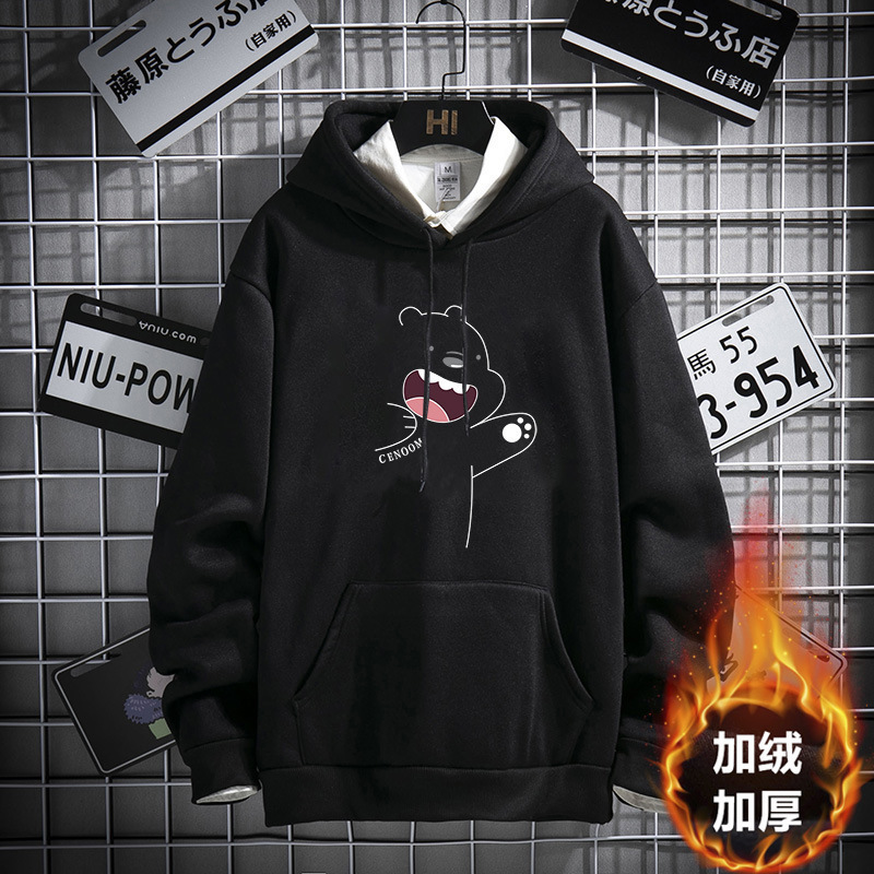 헤비 캐주얼 스웨터 가을과 겨울 2024 새로운 미국 패션 브랜드 후드 애호가 코트 소년 기모 코트