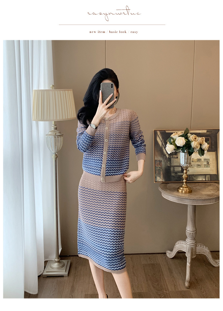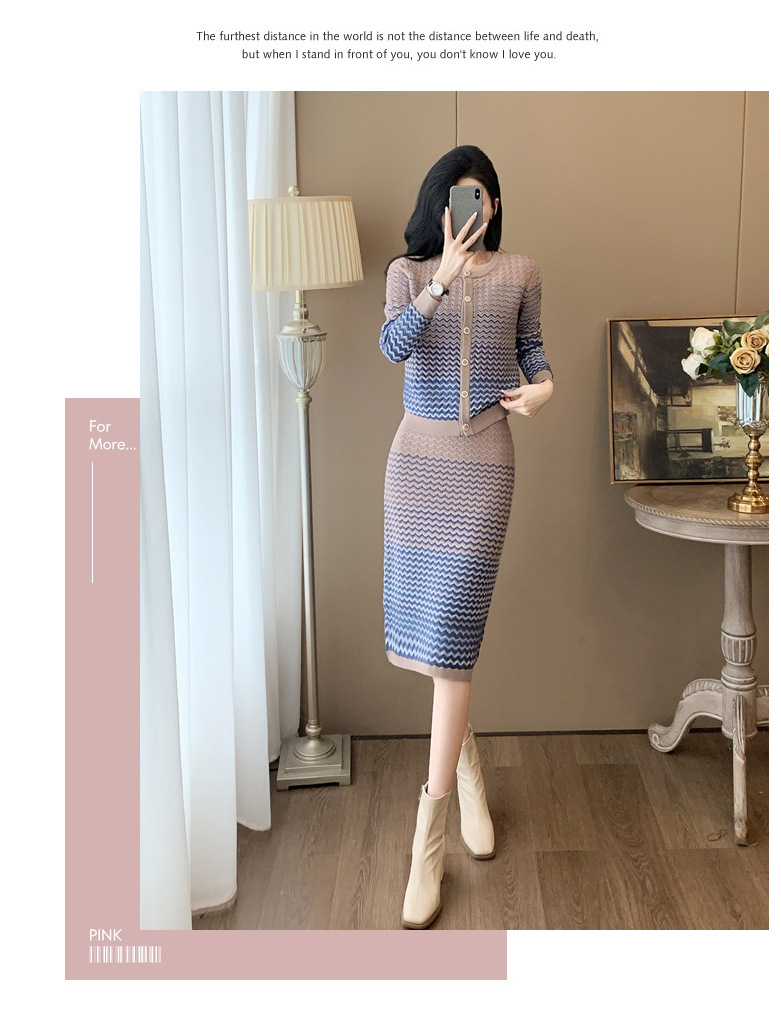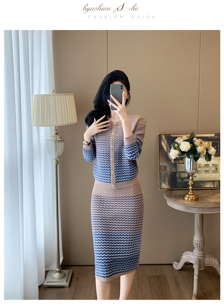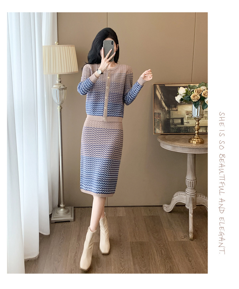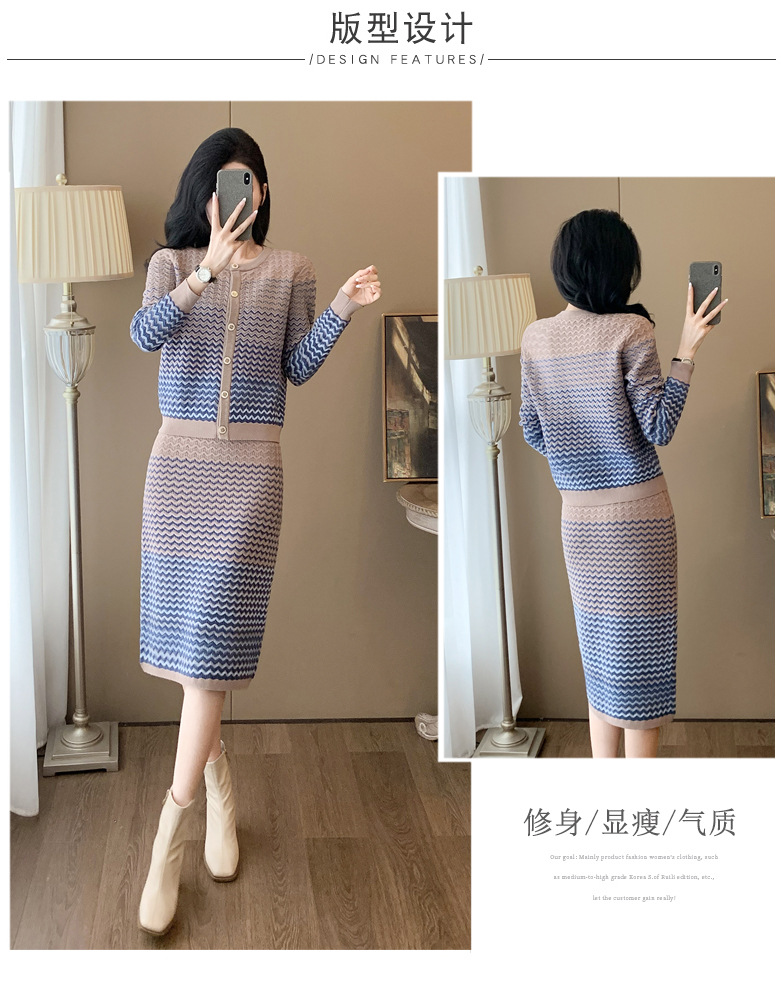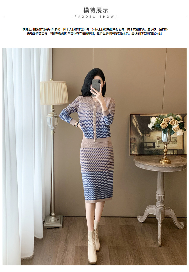 Xiaoxiangfeng 니트 투피스 원피스 여성용 우아한 고급 카디건 무릎 위 엉덩이 원피스 패션 캐주얼 원피스스토어 가기