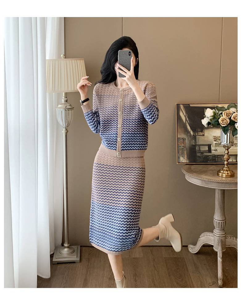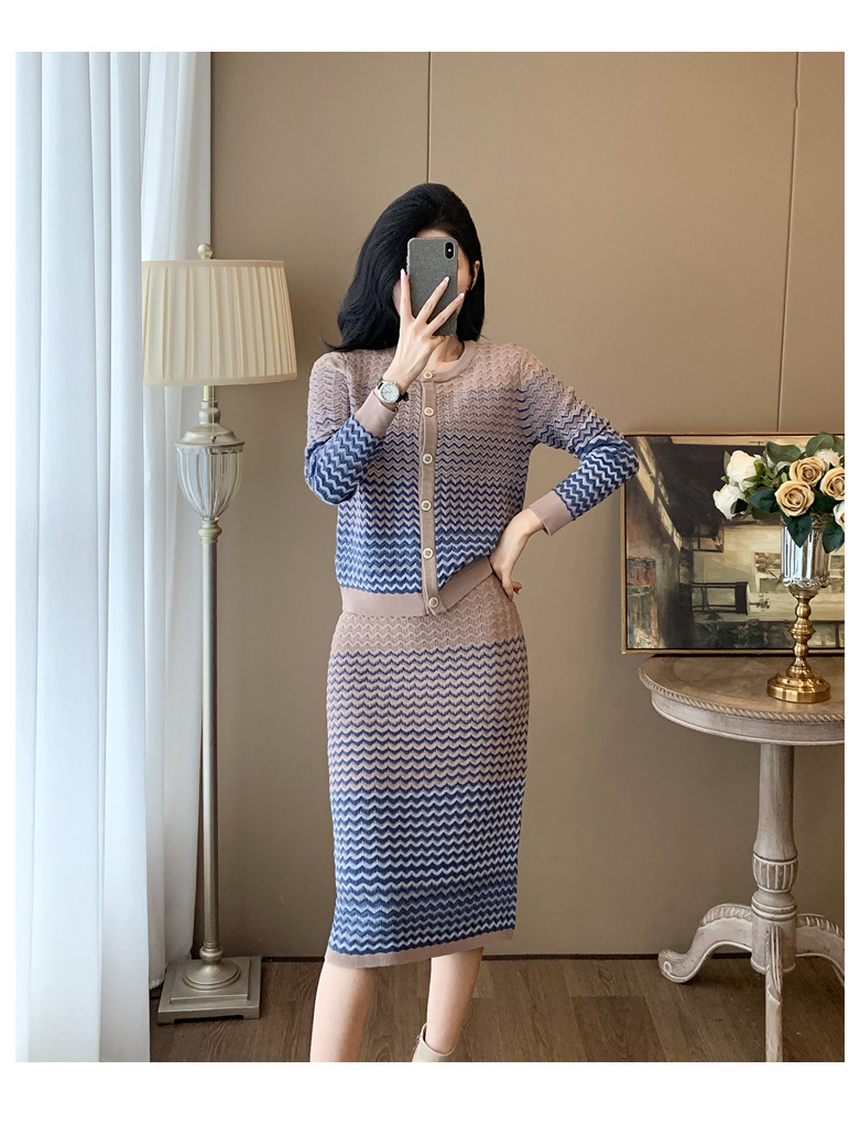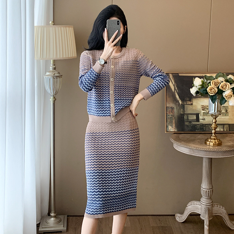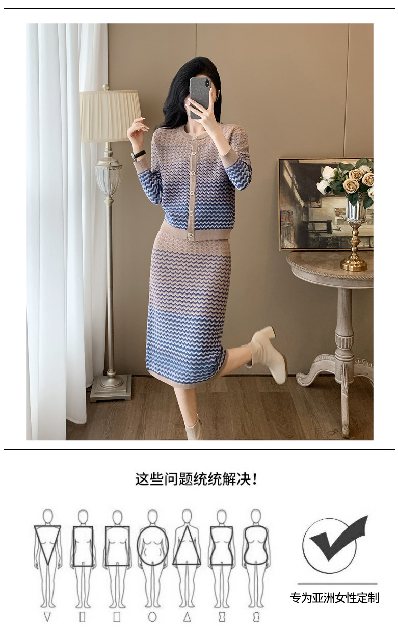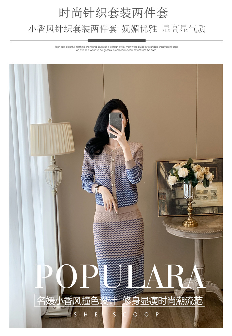 Xiaoxiangfeng 니트 투피스 원피스 여성용 우아한 고급 카디건 무릎 위 엉덩이 원피스 패션 캐주얼 원피스스토어 가기